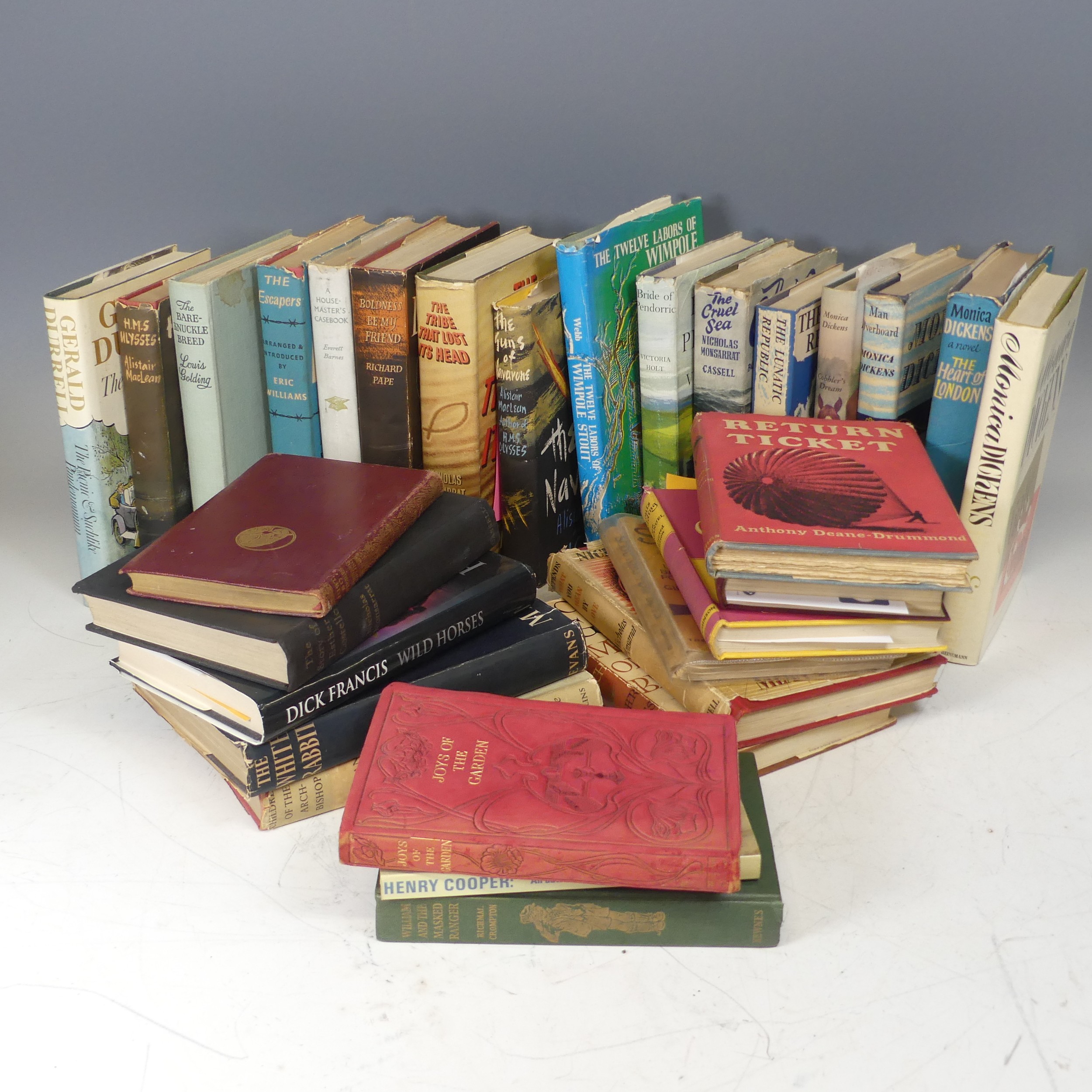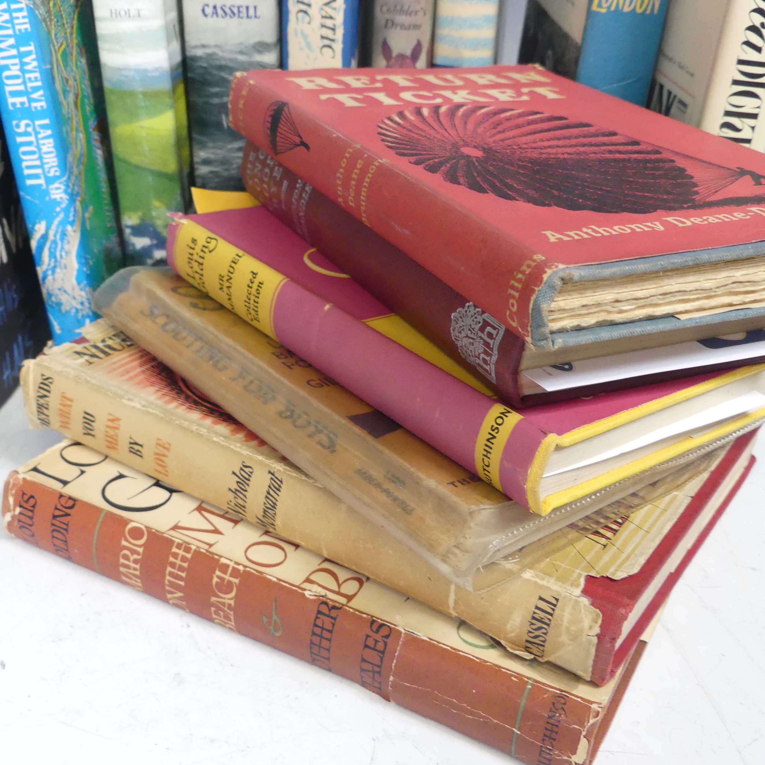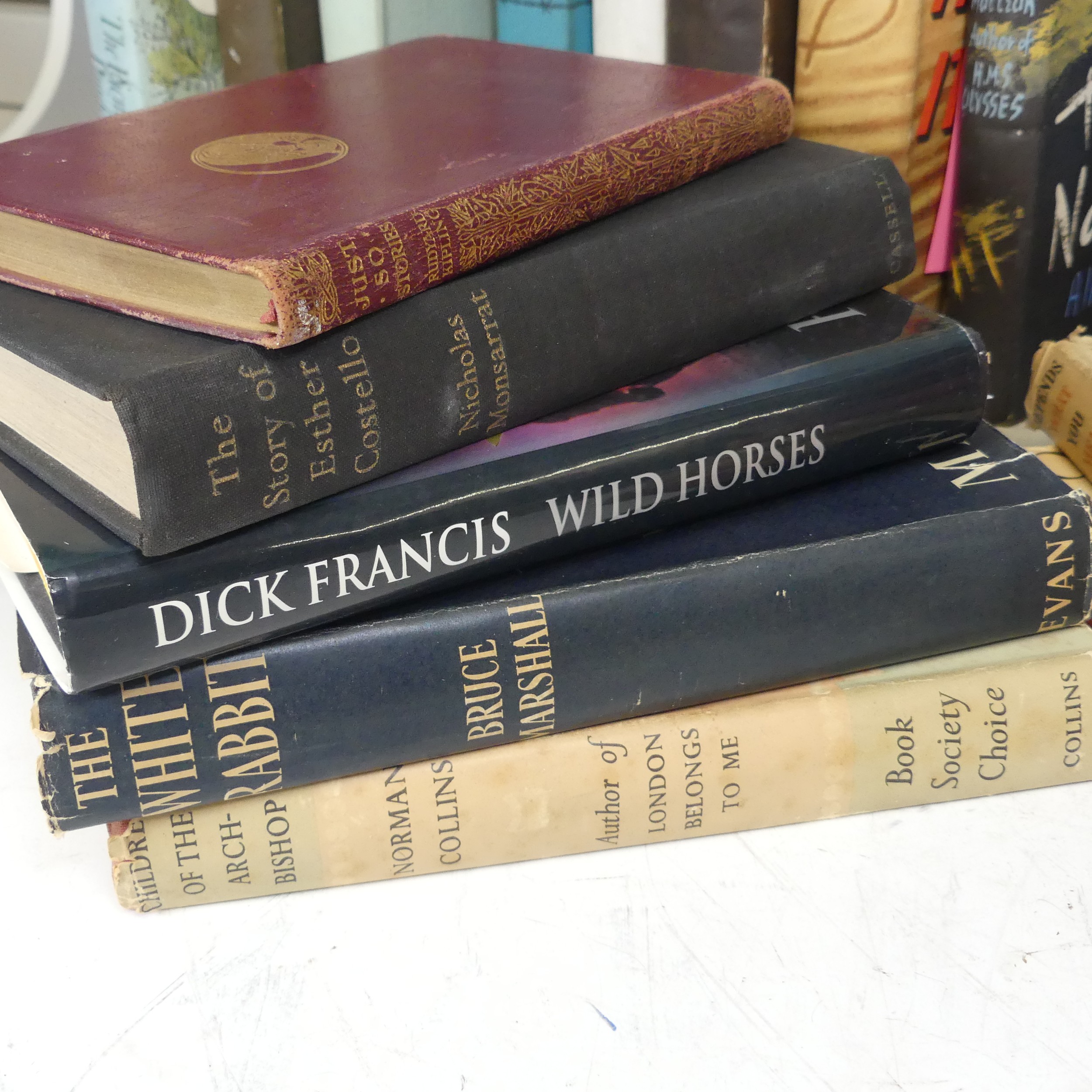 Monsarrat (Nicholas); 'The Cruel Sea', London, Cassell & Company Ltd, 1953 tenth edition, signed by the author and dated 1953, original blue cloth lettered in silver to spine, with dust wrapper, not price clipped, together with other Monsarrat titles and other by Louis Golding, Monica Dickens, Alistair Maclean, a Punch 'Library of Humour', 24 volume set on a vintage wooden book trough etc. (approx. 50)