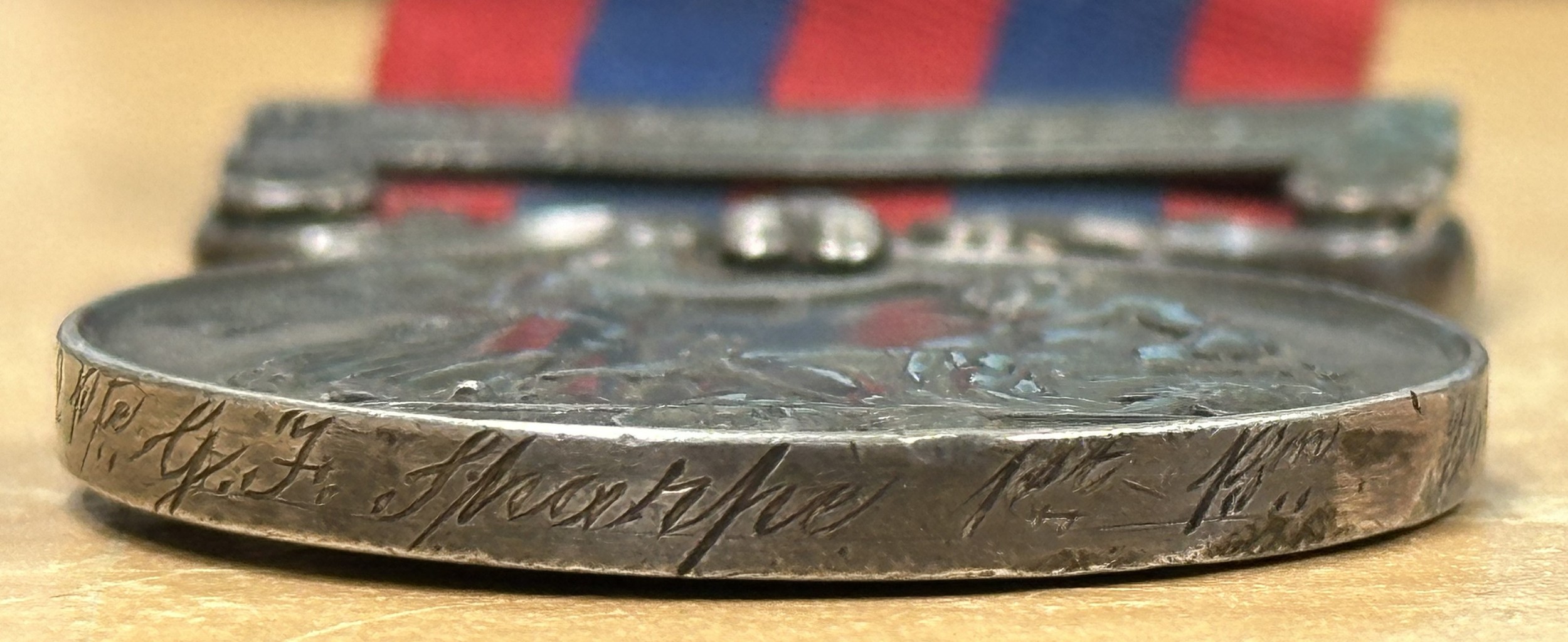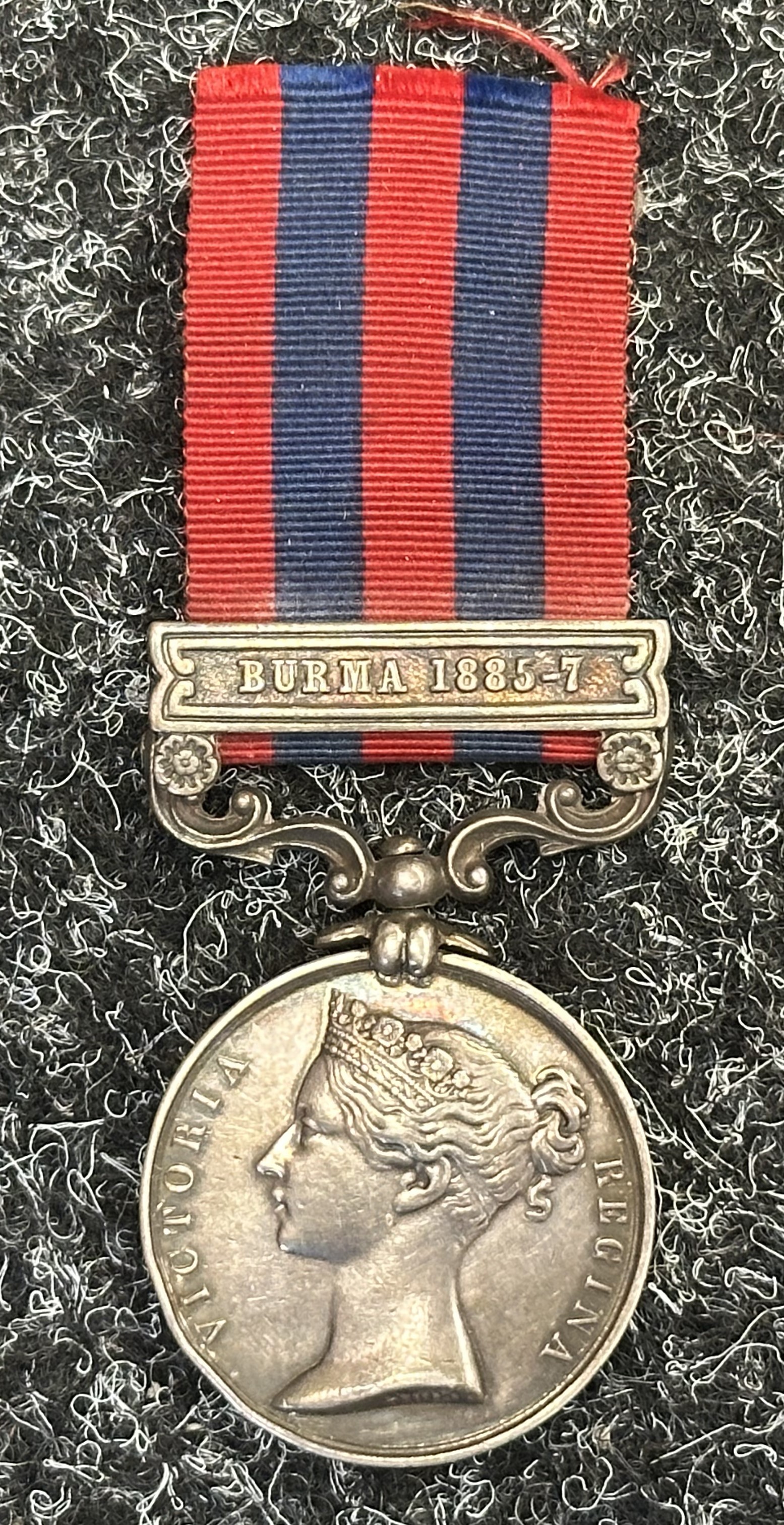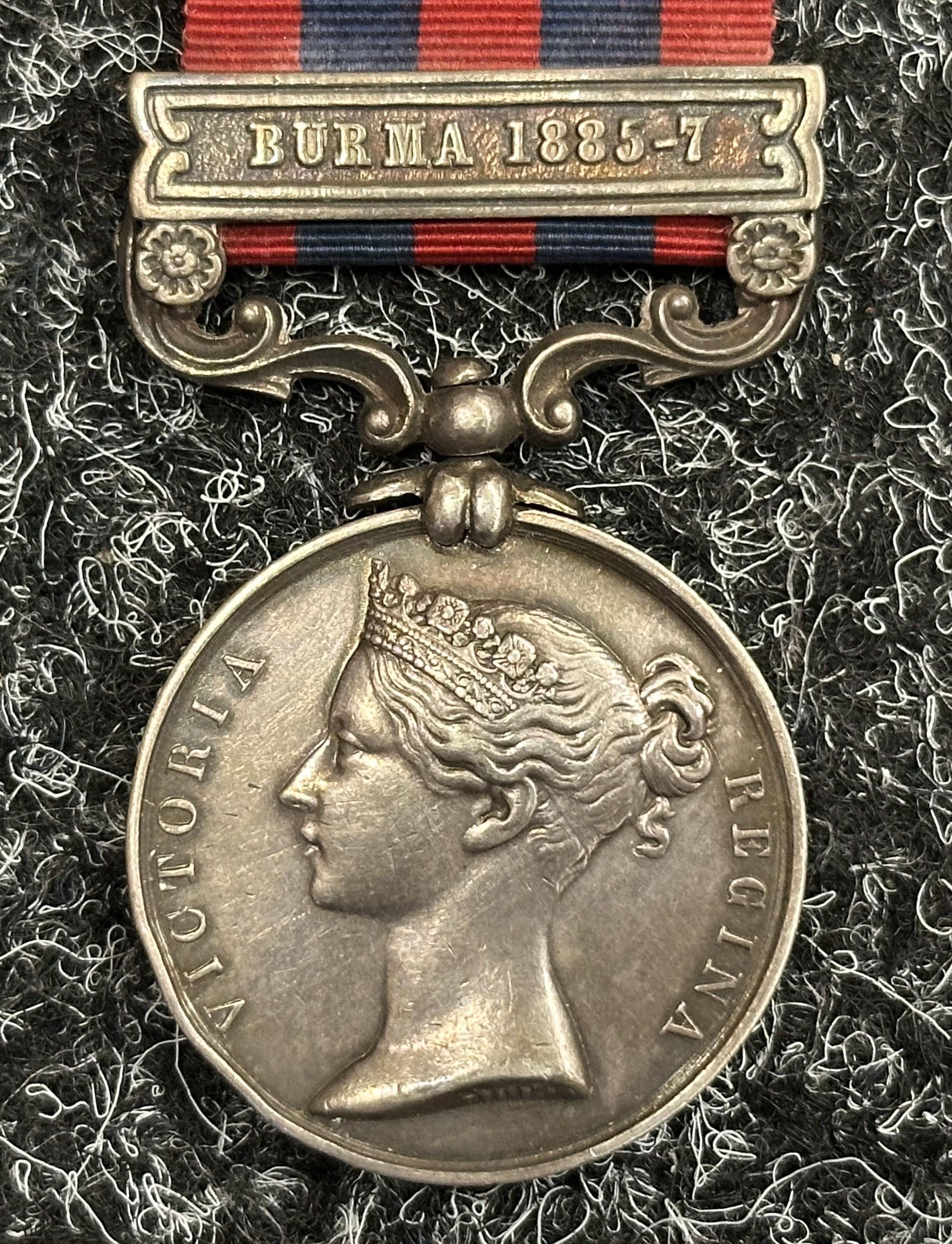 Victorian India General Service Medal with Burma 1885-87 Clasp to 2462 Pte GJ Sharpe, 1st Bn, York Light Infantry. Complete with original ribbon.