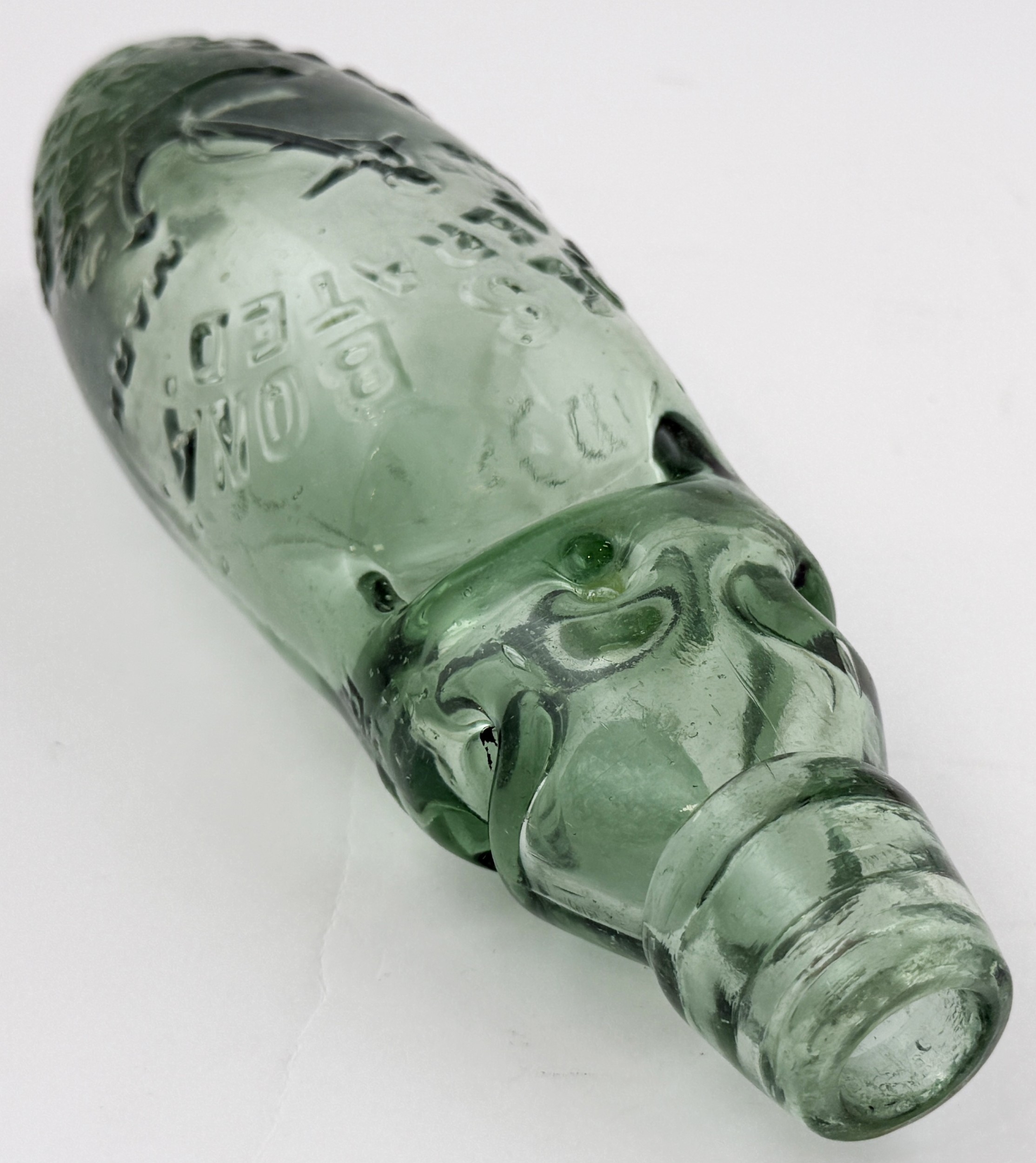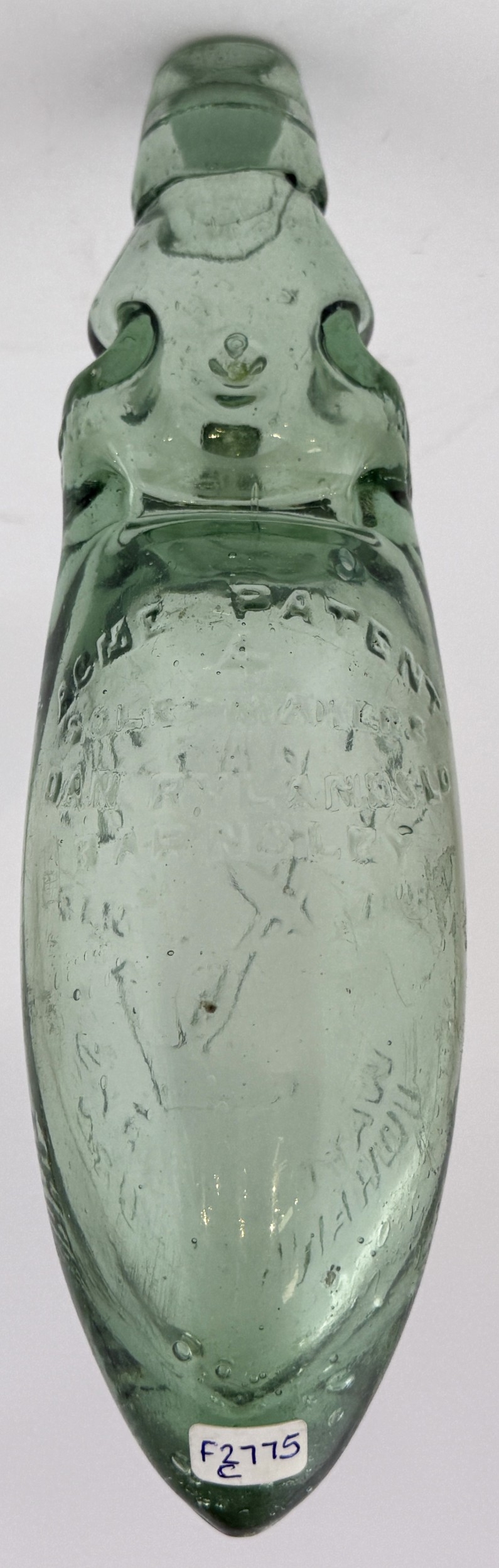 SOUTH AFRICAN HYBRID BOTTLE. 9.75ins. 10oz Acme Reliance patent hybrid embossed SPES BONA/ AERATED/ WATER WORKS/ JOHANNESBURG around a fouled anchor pictorial t.m. Dan Rylands Acme patent 4 makers to rear. An extremely impressive, heavily embossed, hybrid
