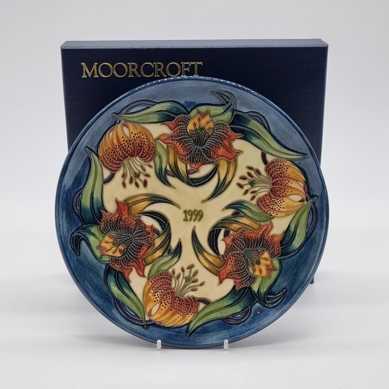 A Moorcroft '1999 Anna Lily' pattern plate, No.276/750, 22cm diameter, boxed.