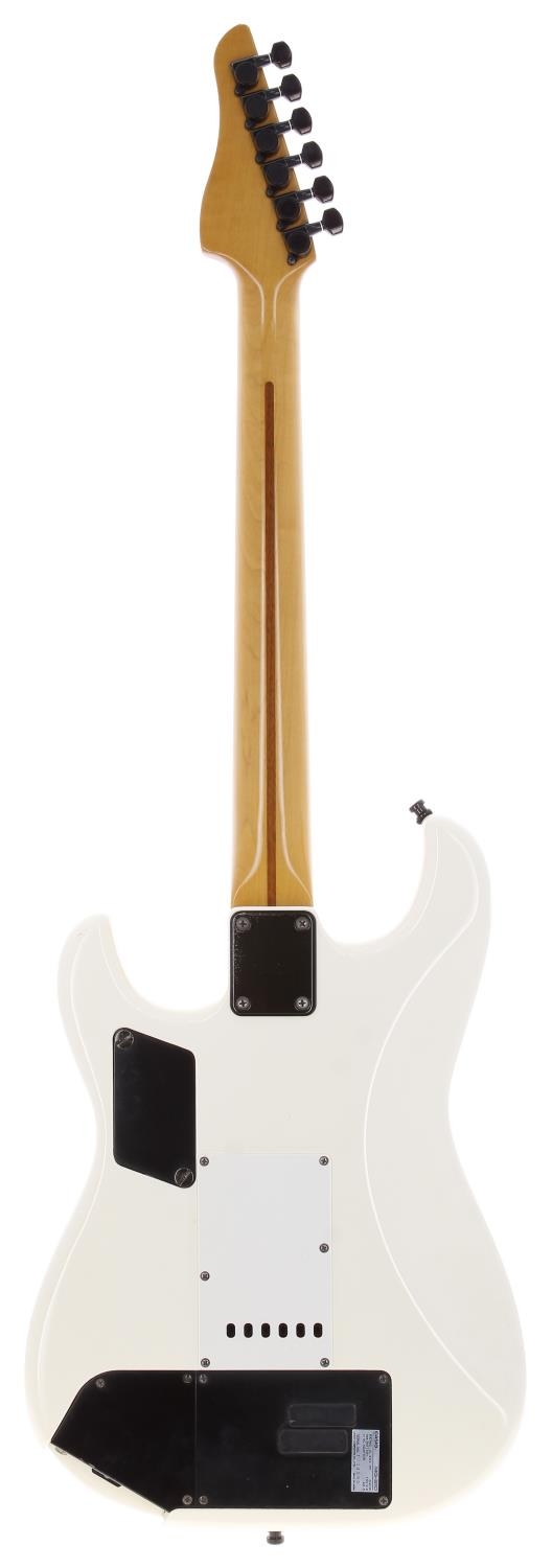 Casio MG-510 midi guitar, made in Japan, circa 1990; Body: white finish, mild discolouration, a few very light dings but generally very good for age; Neck: maple; Fretboard: rosewood; Frets: light wear; Electrics: working including midi; Hardware: light tarnishing to some parts; Weight: 3.92kg; Overall condition: good