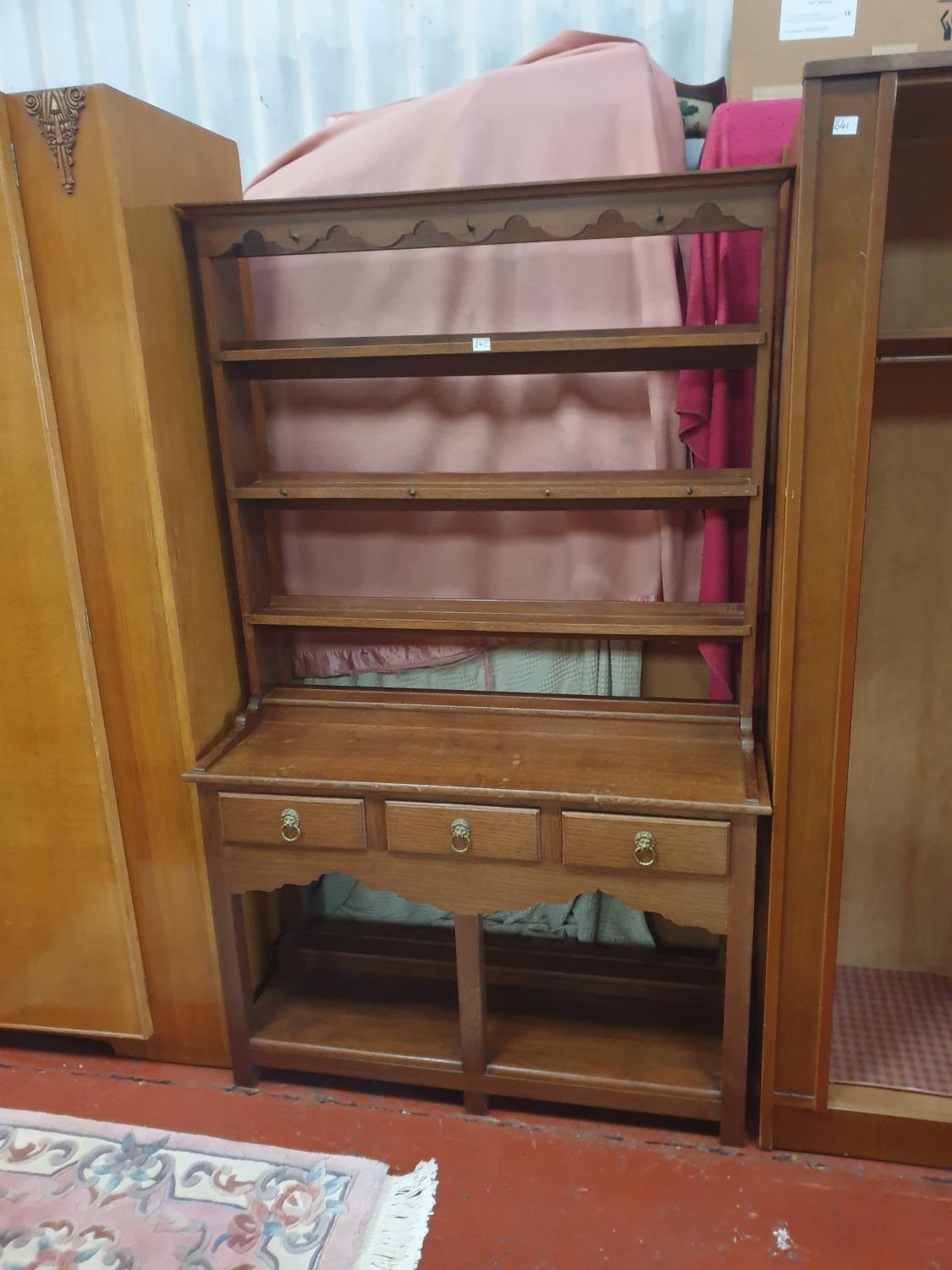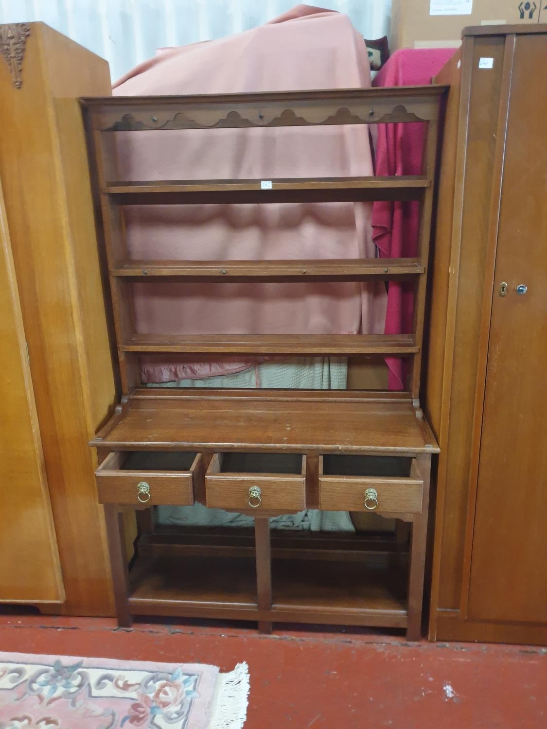 Hand Crafted Oak Open Back, Three Drawer, Three Shelf Welsh Style Dresser - 66" tall x 41" wide x 15" deep.