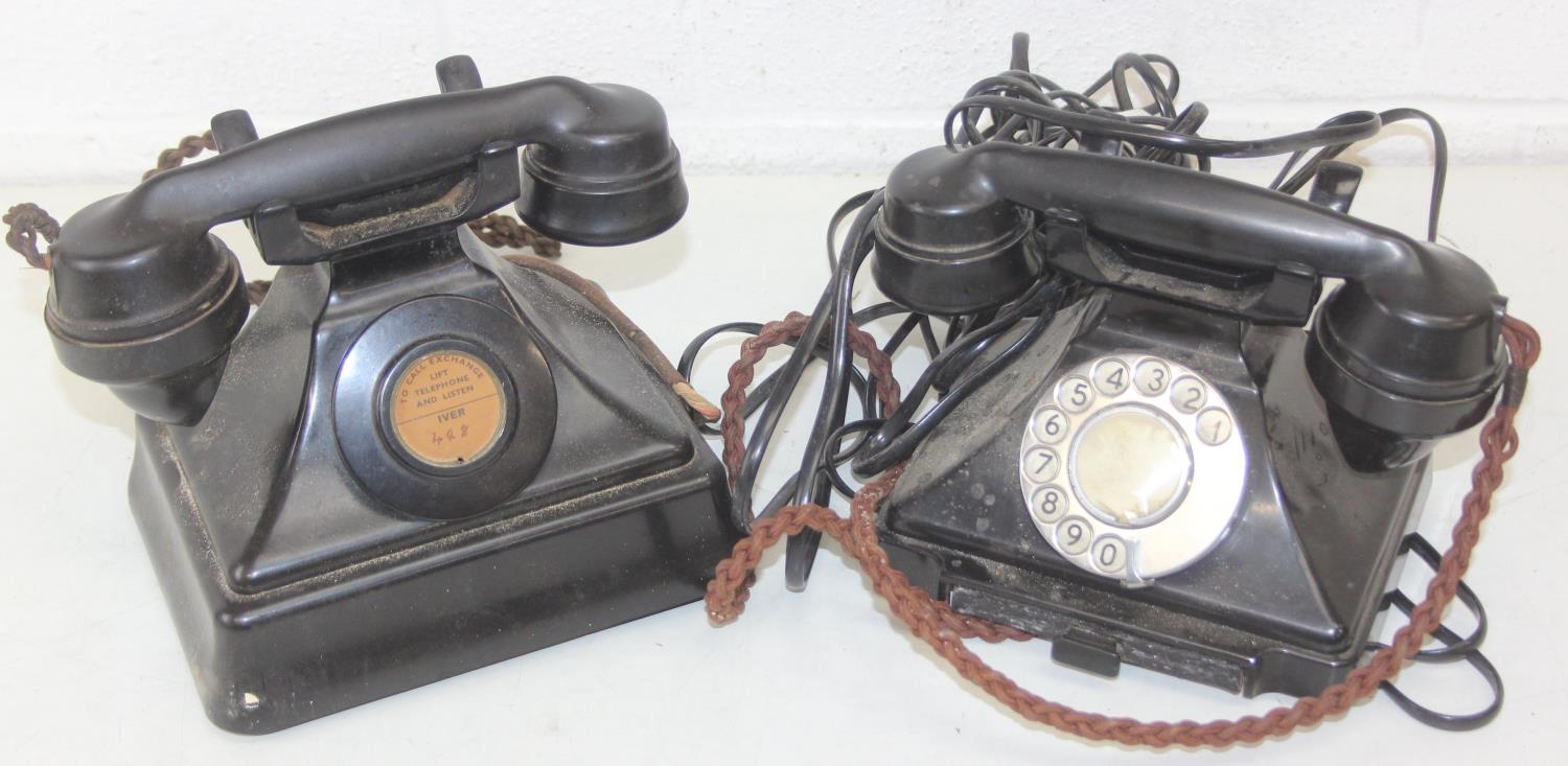 Telephones - two vintage brown/black Bakelite "Pyramid" telephones, one with rotary dial [2]