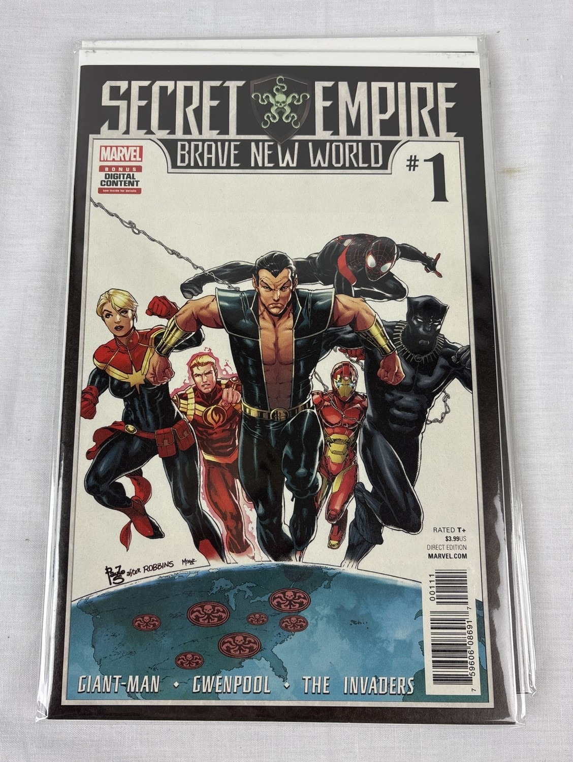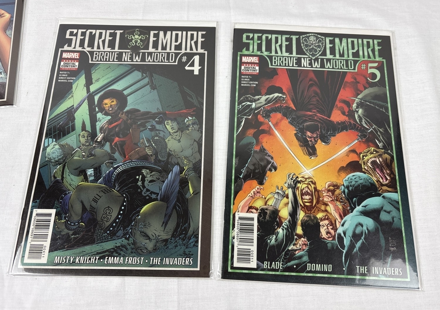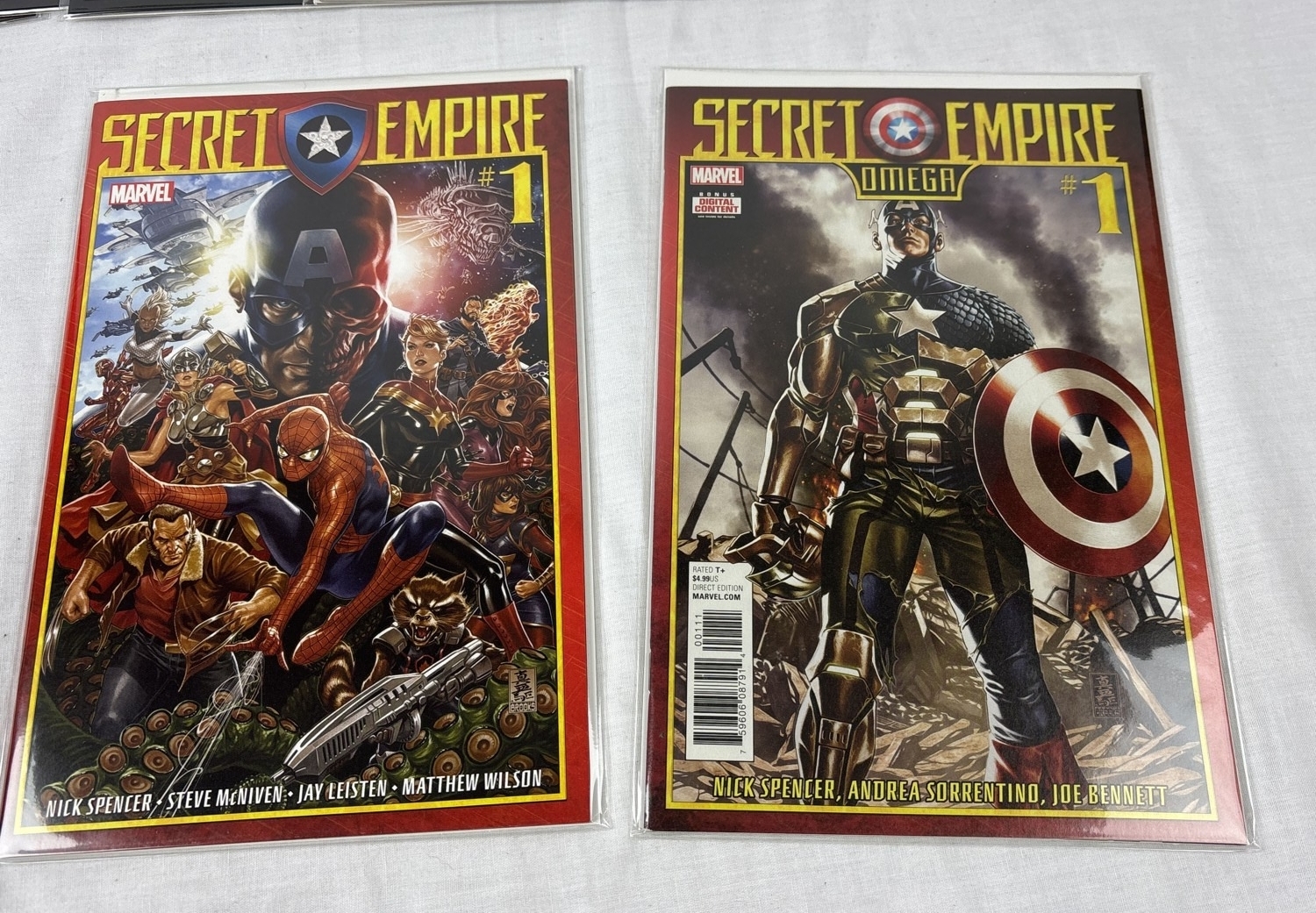 Complete set of Secret Empire comic books (issues #0-10 plus comic book day issue), together with Secret Empire Omega #1, Secret Empire: Uprising, Secret Empire: Underground, Secret Emprire: United, and Secret Empire: Brave New World #1-5. By Marvel Comics, 2017. All in bag and with board.
