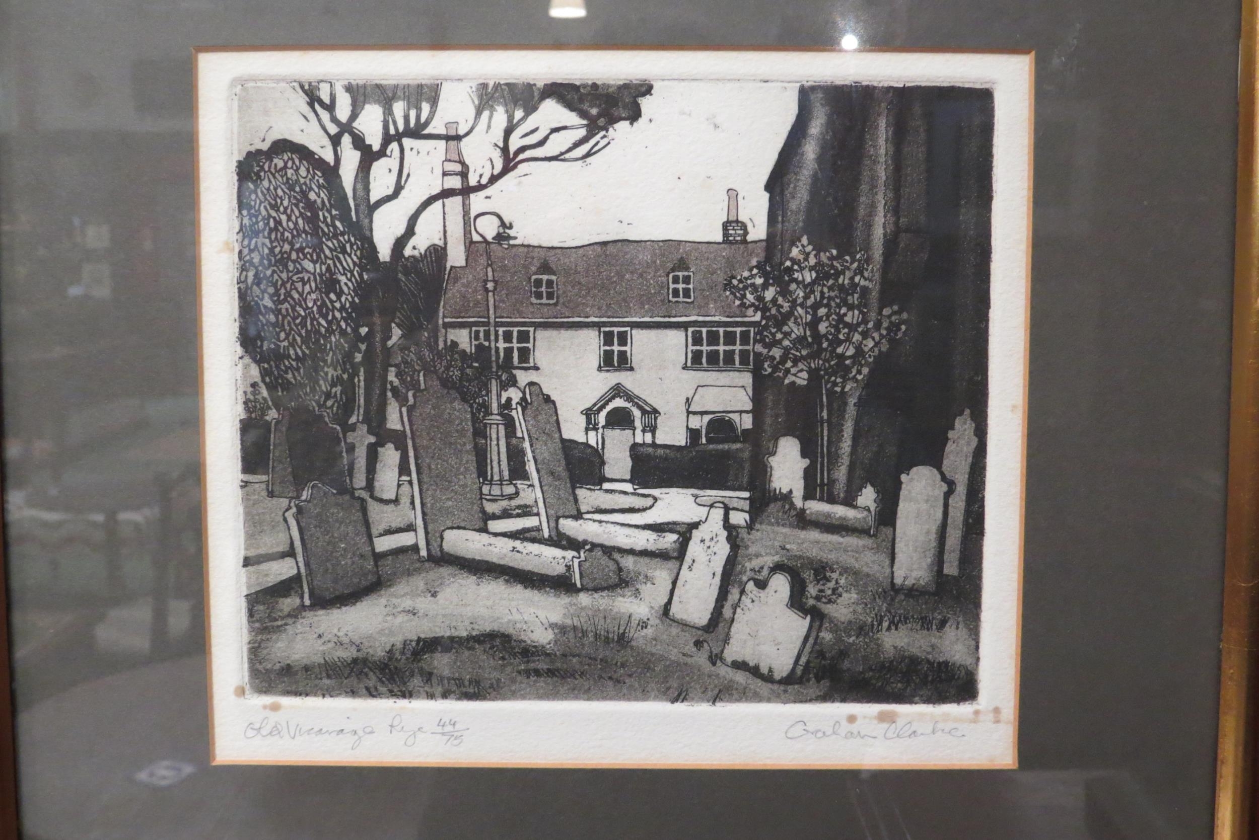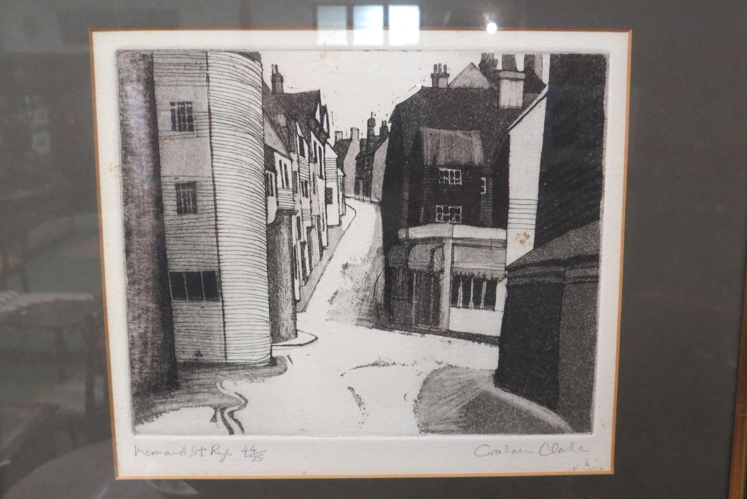Two Graham Clarke limited edition prints "Mermaid St. Rye", No. 44/75, and "Old Vicarage Rye," No. 44/75, both framed and glazed, both 17cm x 20cm image sizes (E) £40-60