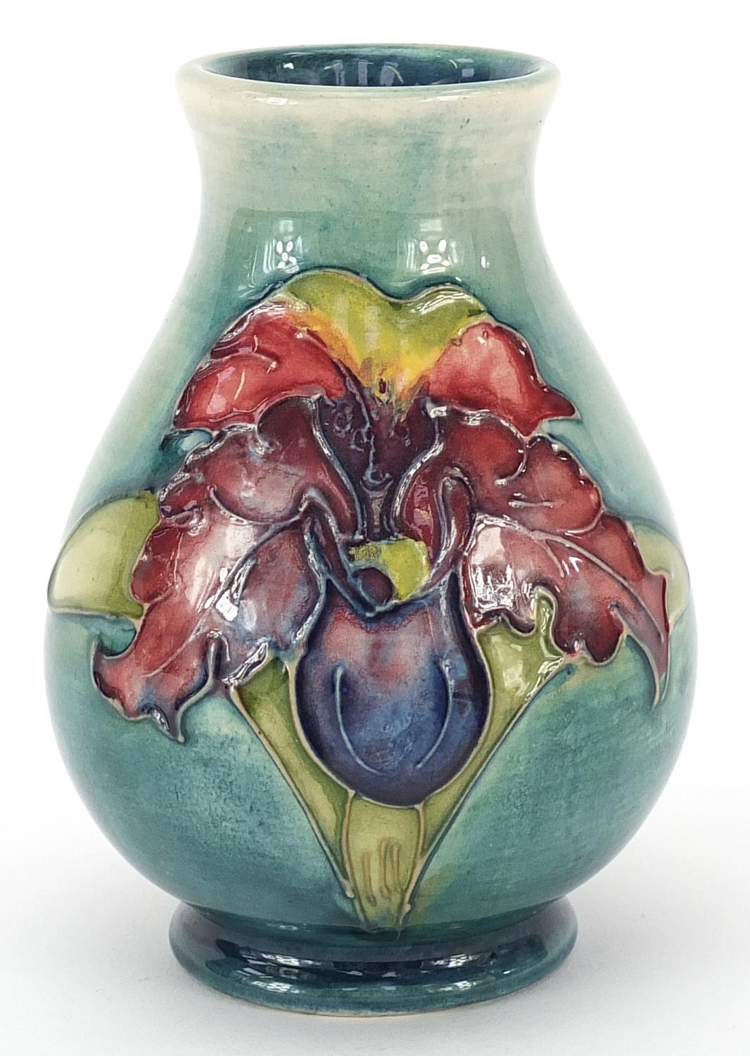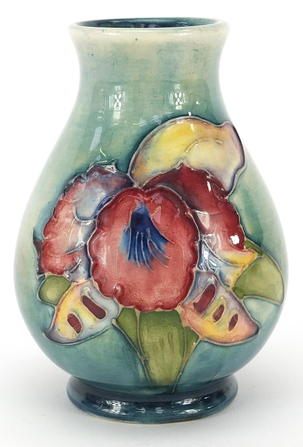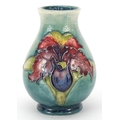 Moorcroft Pottery baluster vase hand painted with two flowers, paper label to the base, 10cm high