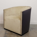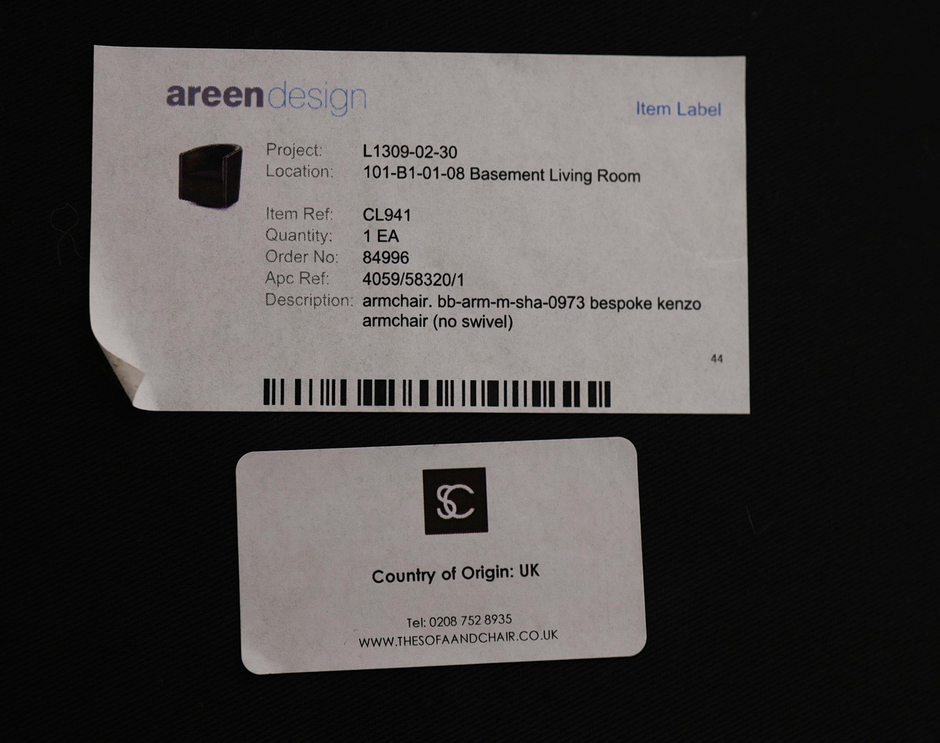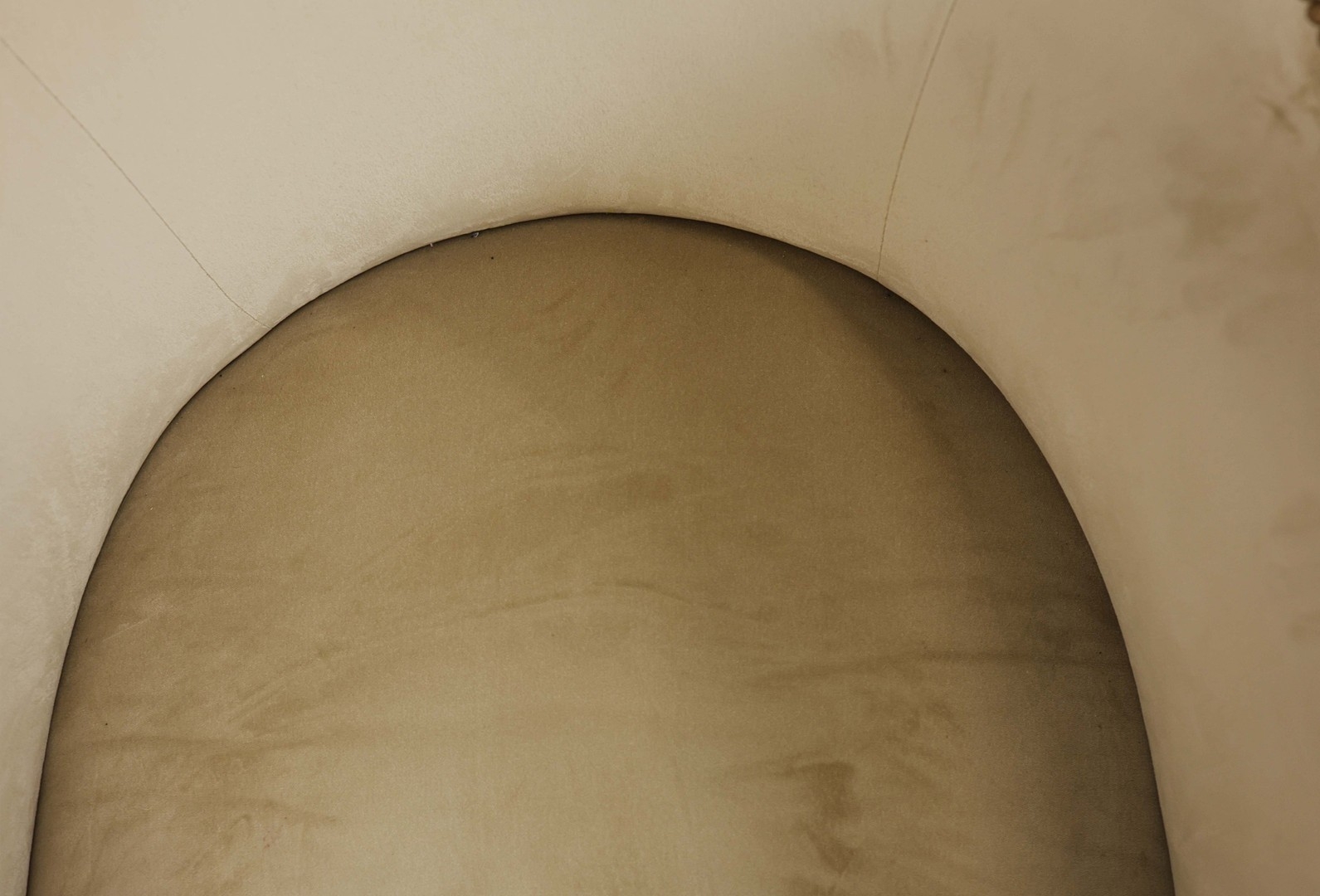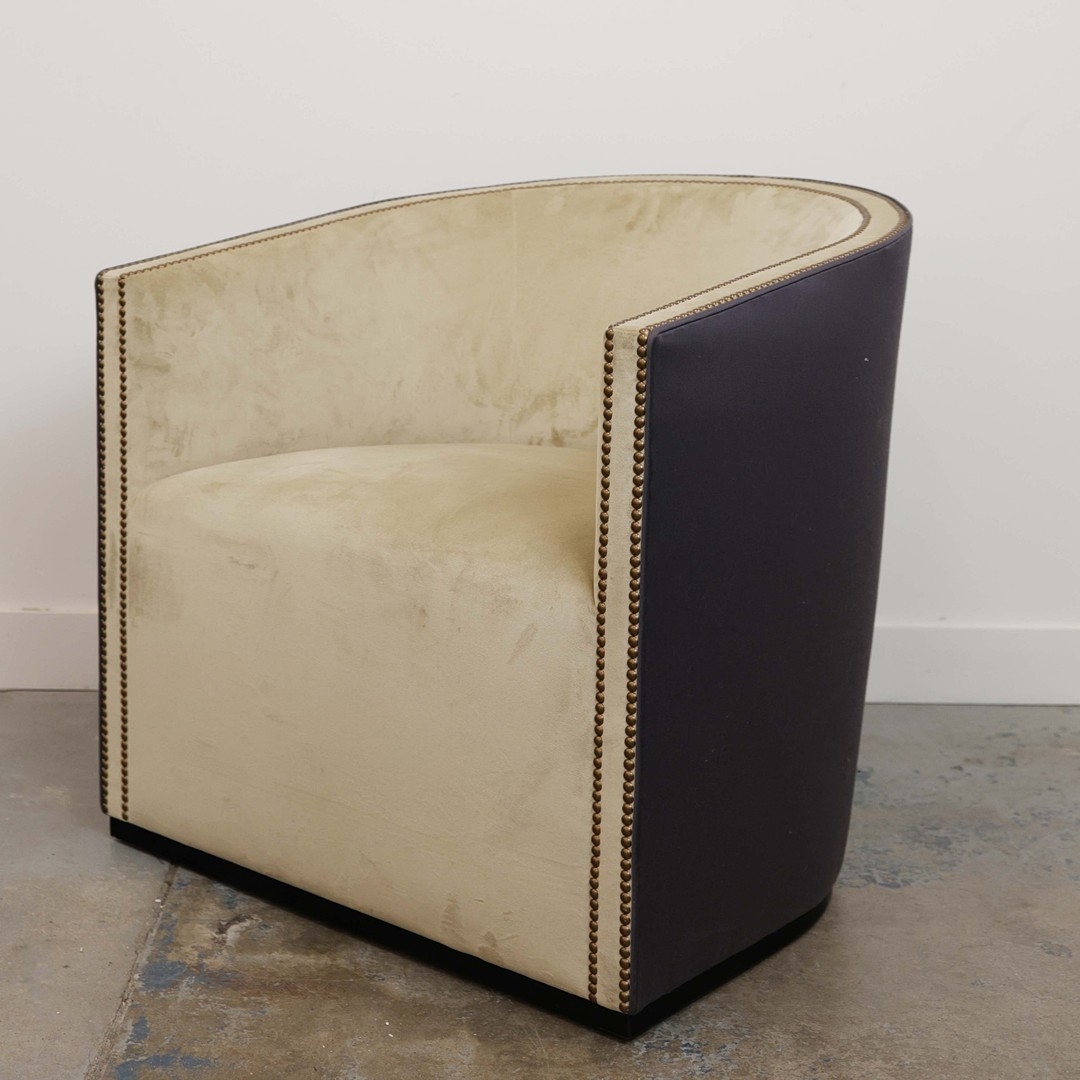 ARMCHAIR, WITH A CURVED BACK. and studded detail, with a contrast back 76cm w x 80cm t.