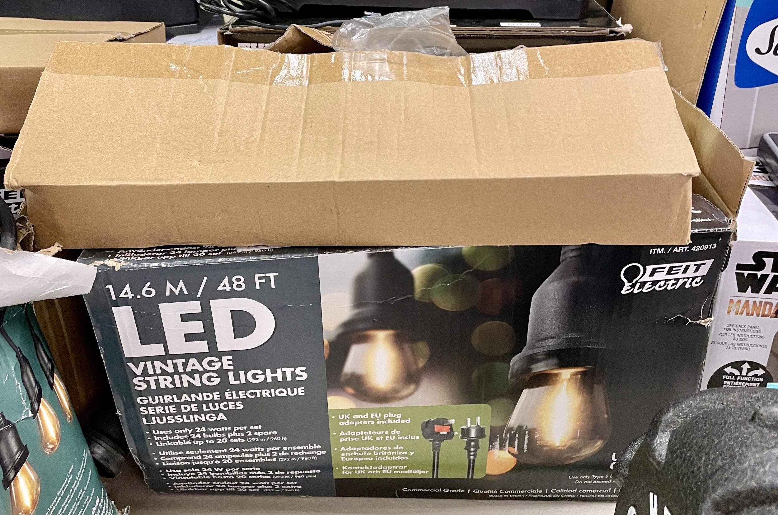 BOX OF FEIT ELECTRIC 14.6M LED VINTAGE STRING LIGHTS