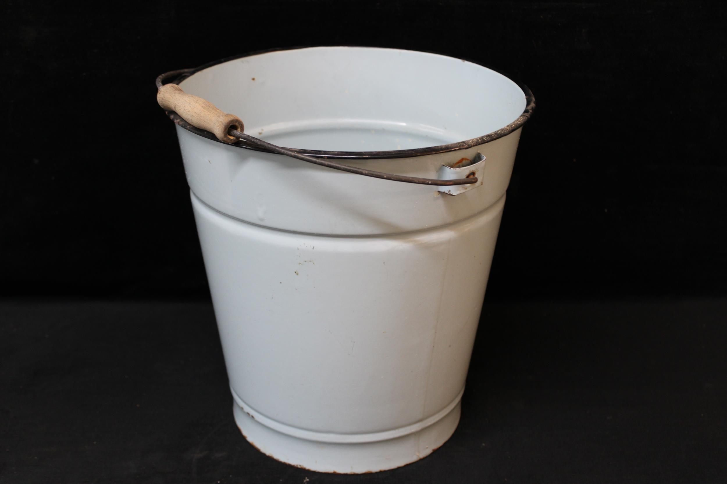 An enamel bucket 29cmD X 30cmH