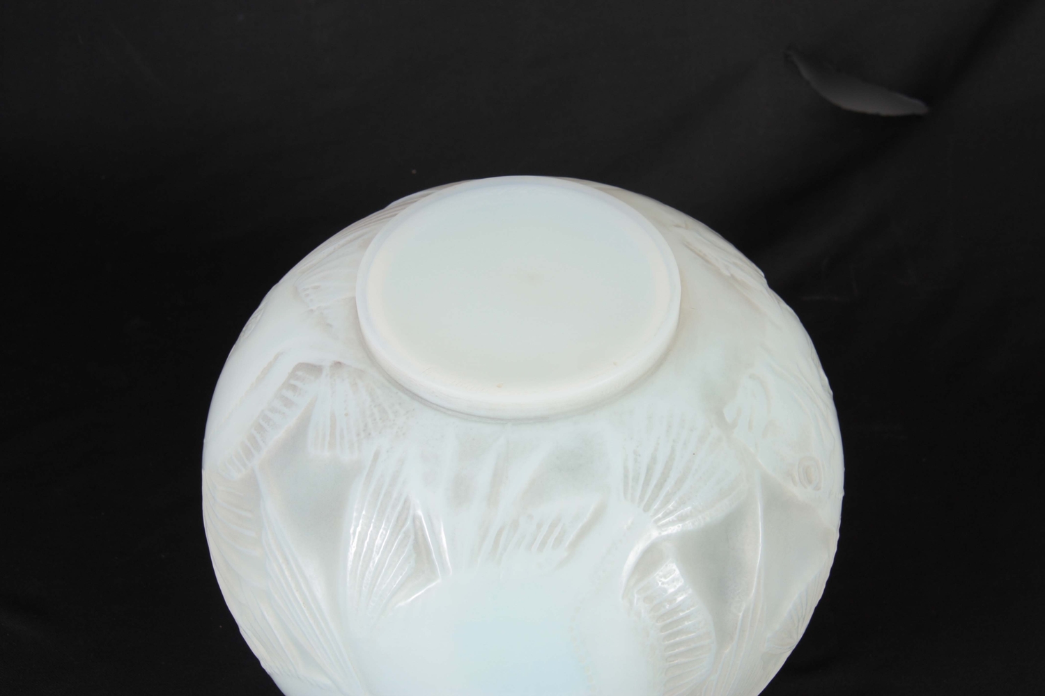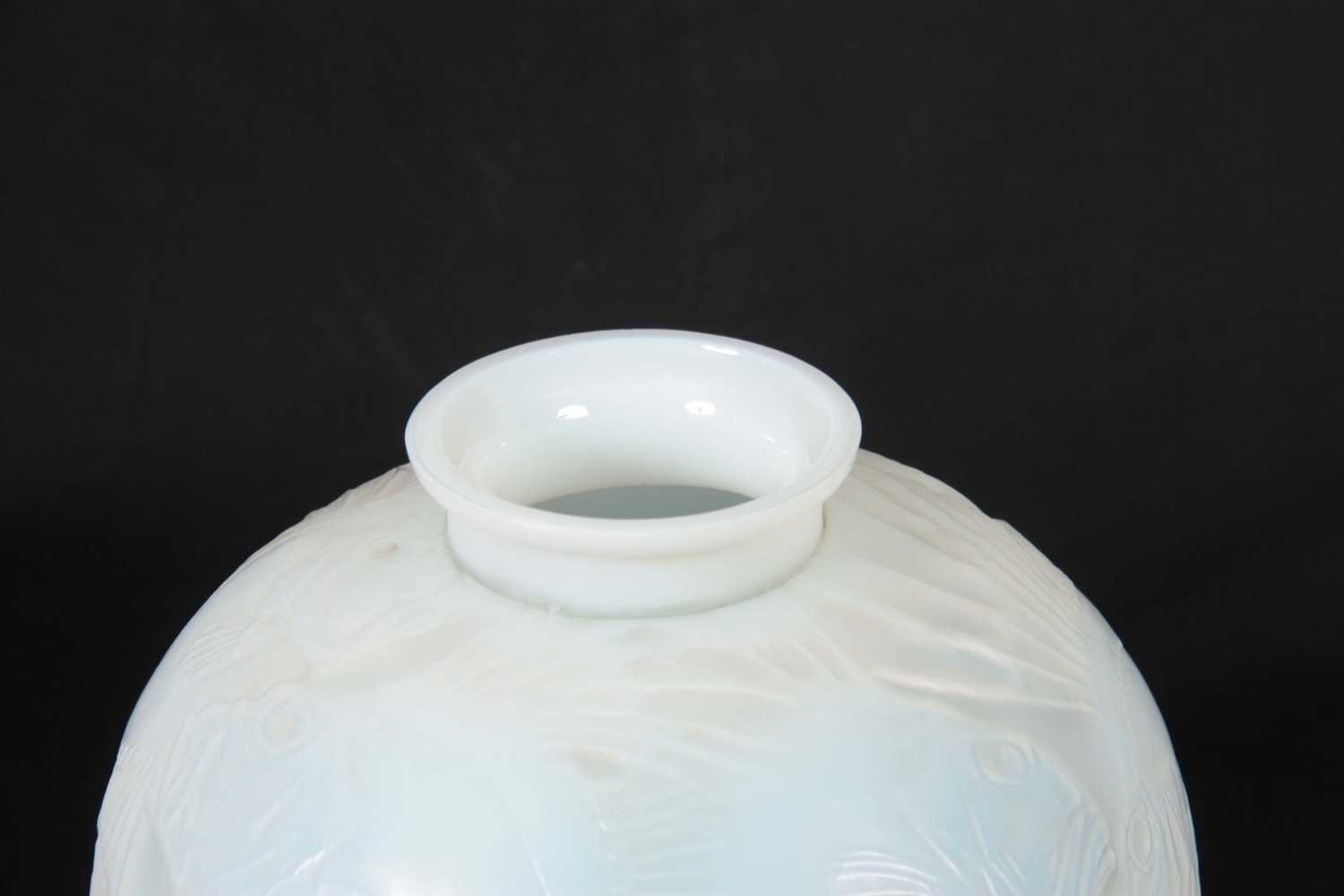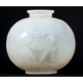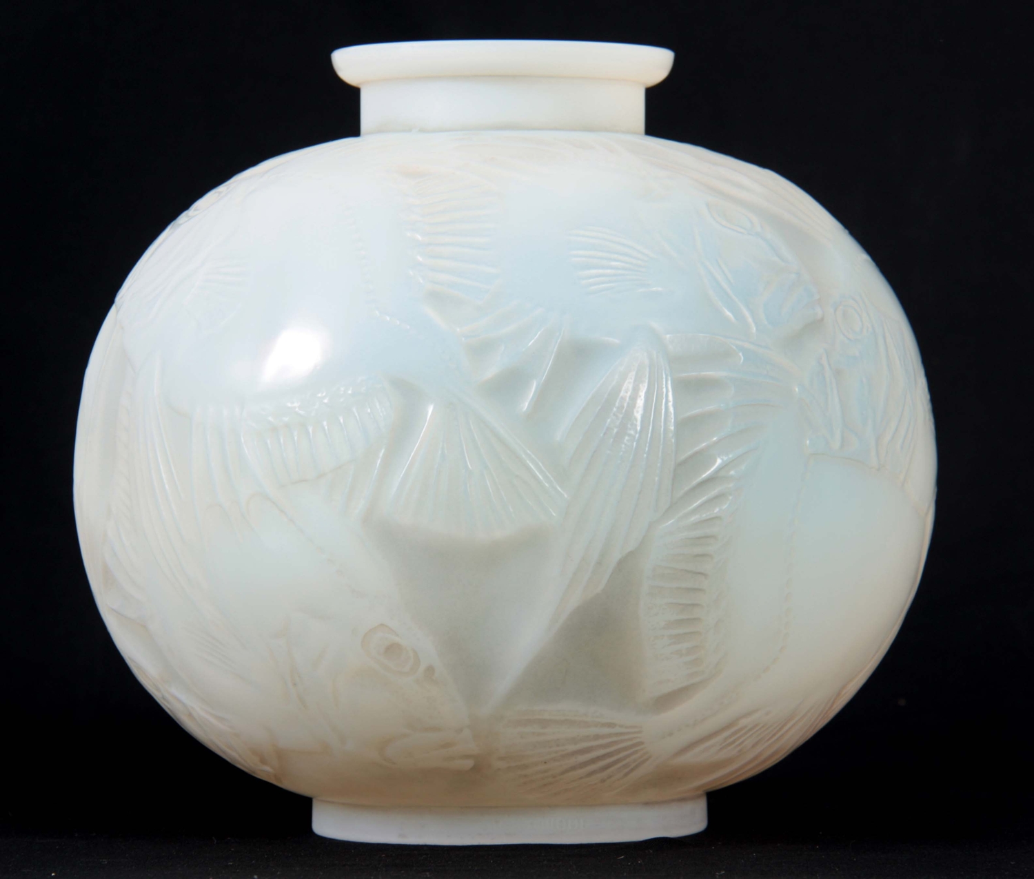 RENE LALIQUE. AN EARLY 20th CENTURY OPALESCENT 'POISSONS' VASE of bulbous form with frosted and polished finish, signed to underside 23cm high