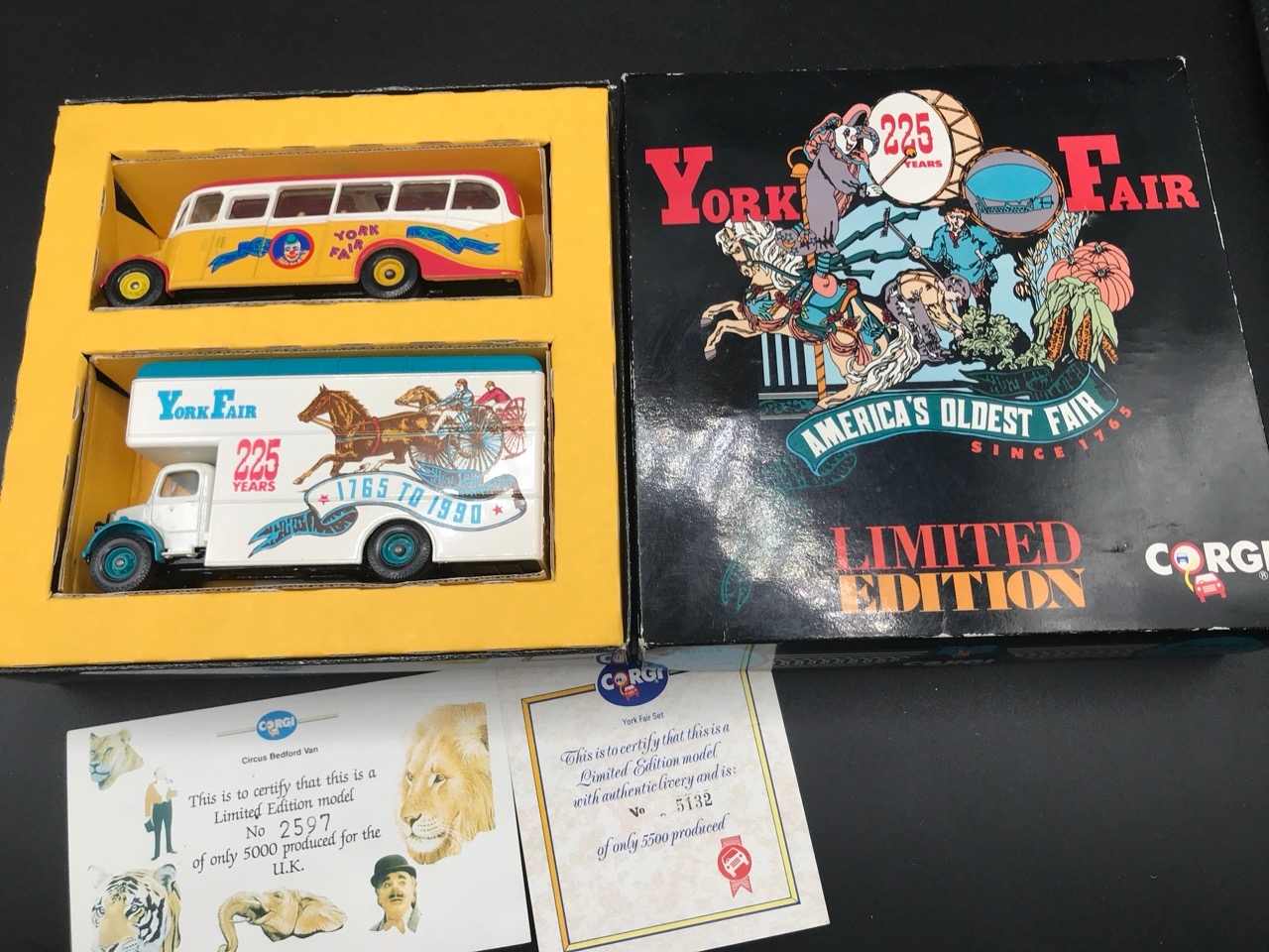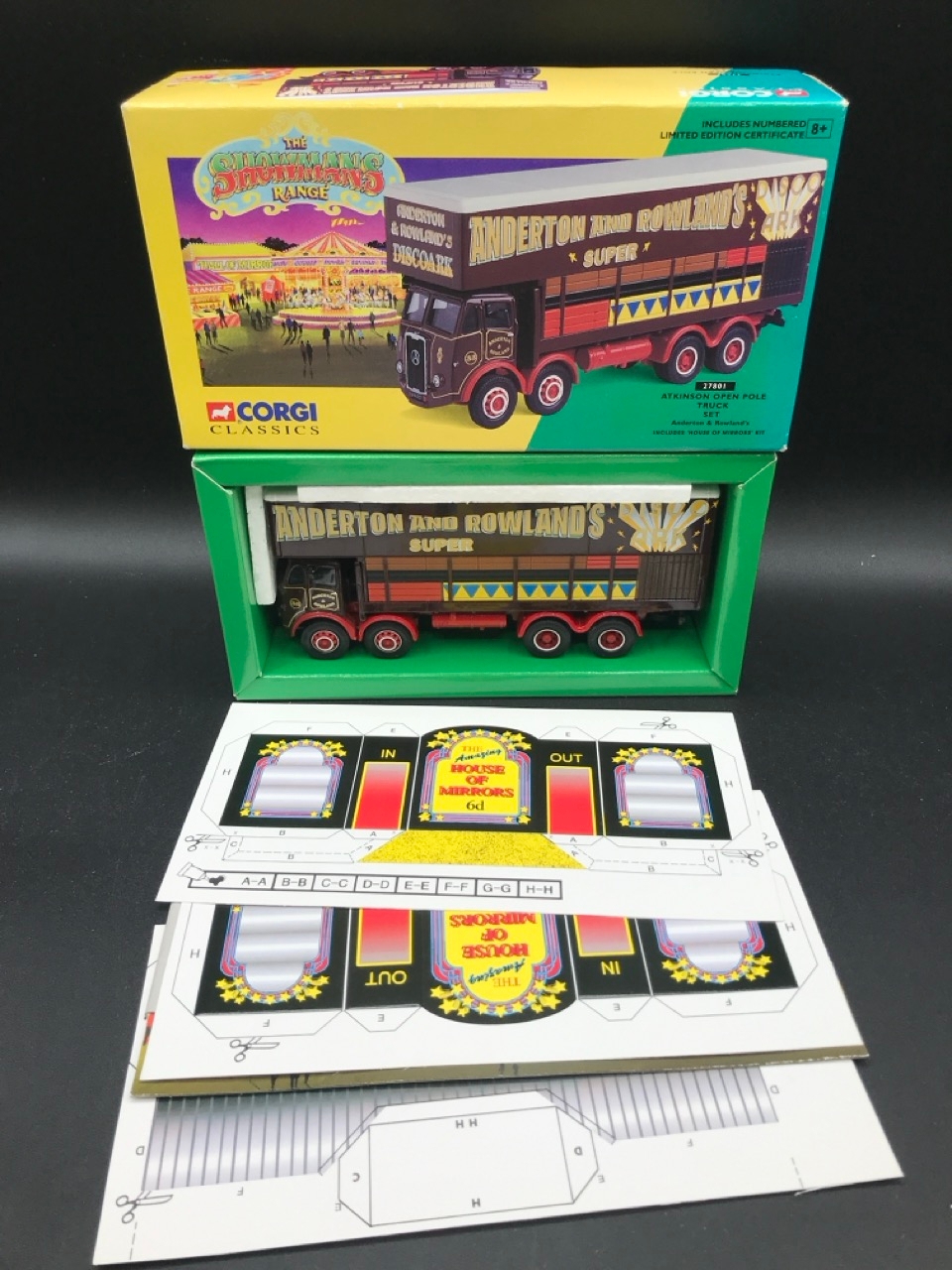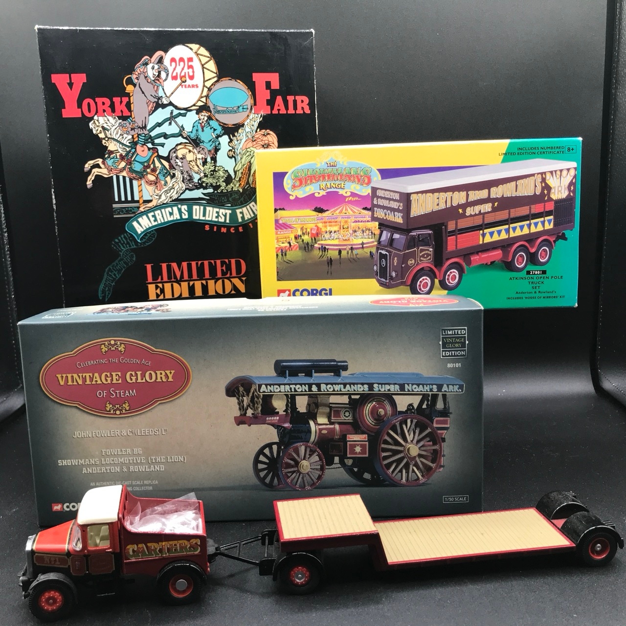 Showman's Lot of four Corgi Vehicles, 1:50 Corgi 80101 Ltd Edn Fowler B6 (The Lion) 'Anderson & Rowland', 27801 Atkinson Open Pole Truck Set 'Anderson & Rowland', 1990's Swansea set Corgi Ltd Edn York Fair Pantech and Bedford OB Coach with certificate, Unboxed Corgi Carters 4-Wheel Ballast Truck and Low-loader - Die-cast Very Good, Boxes Good (4) 2500g