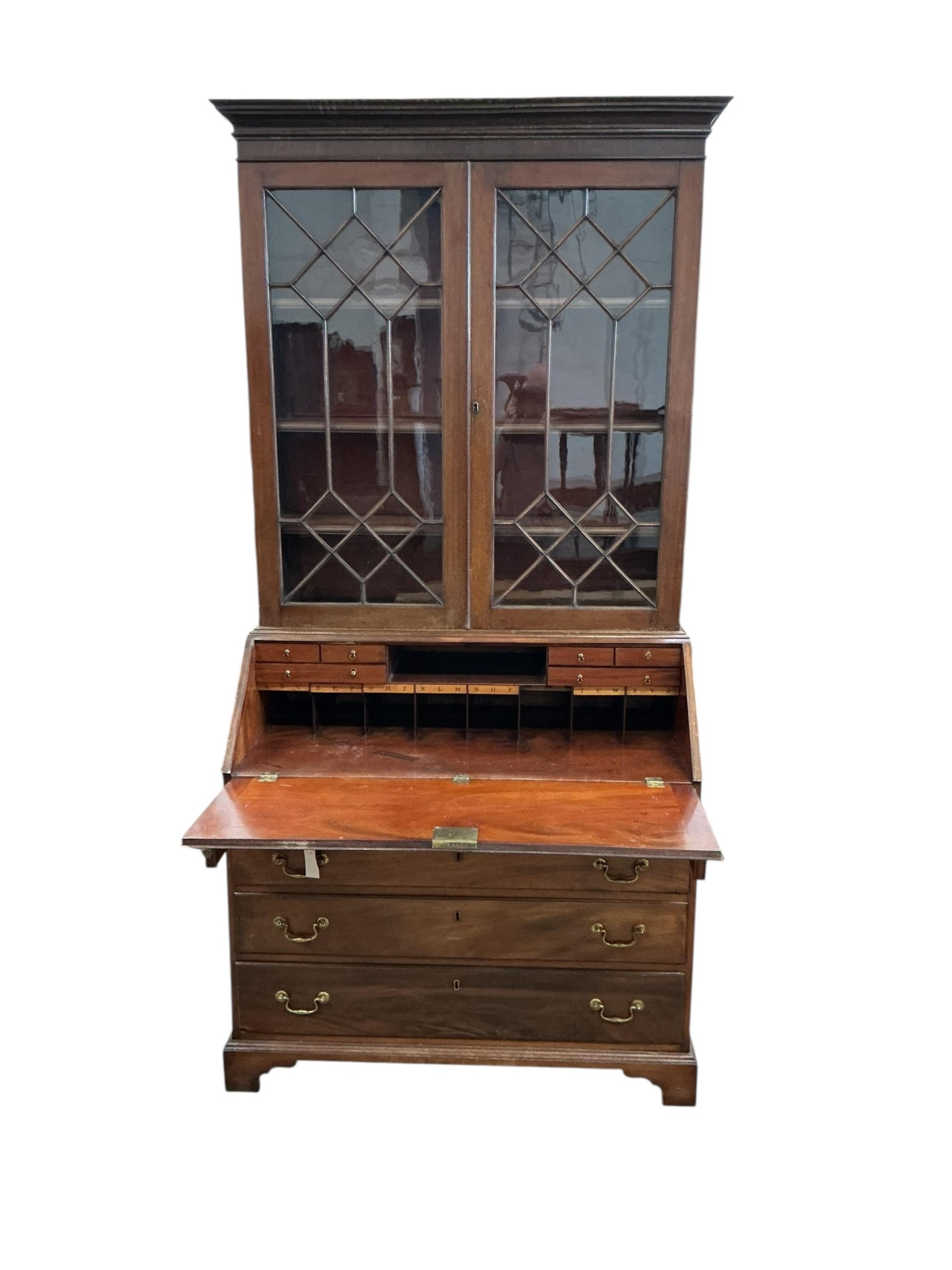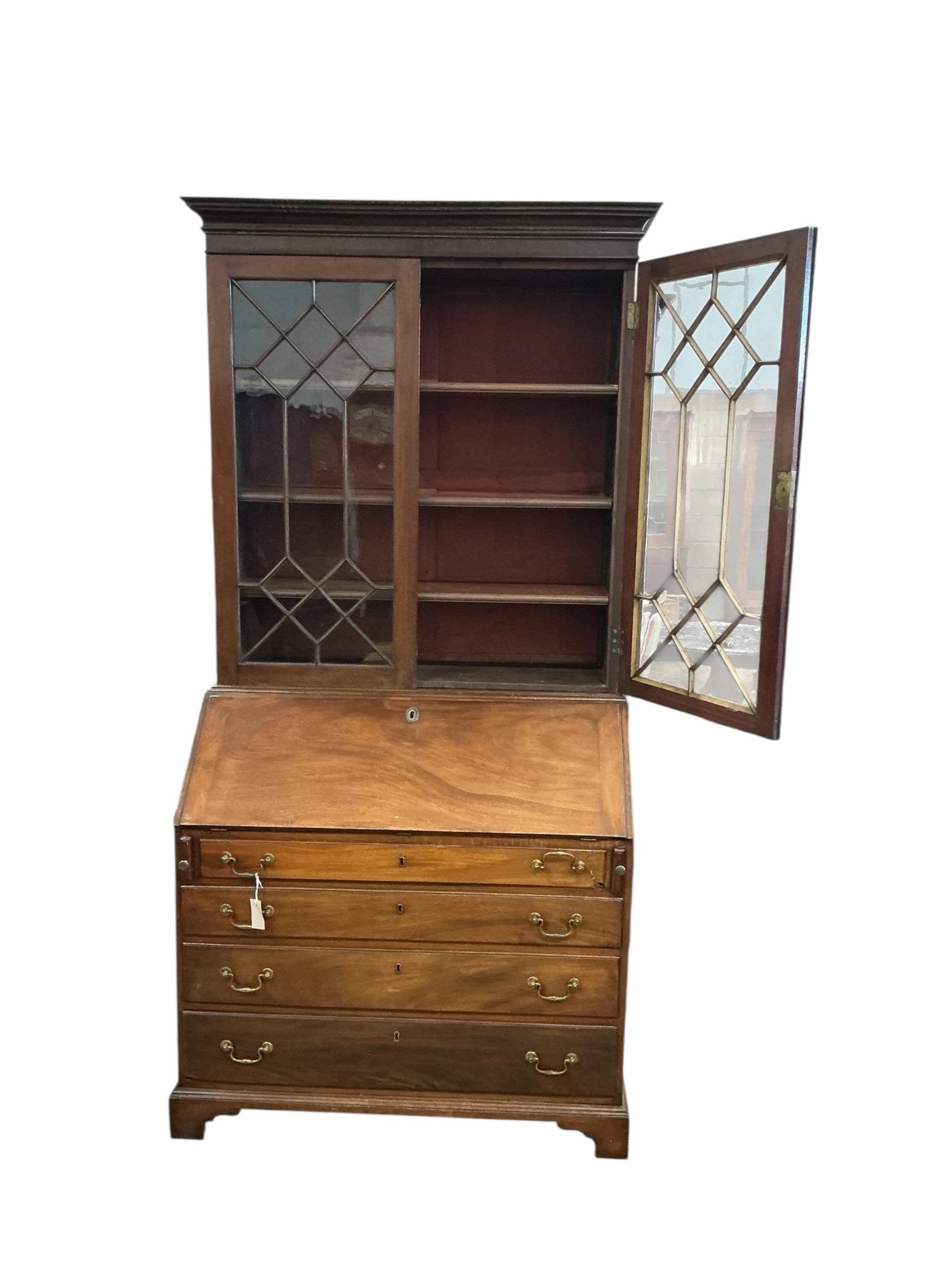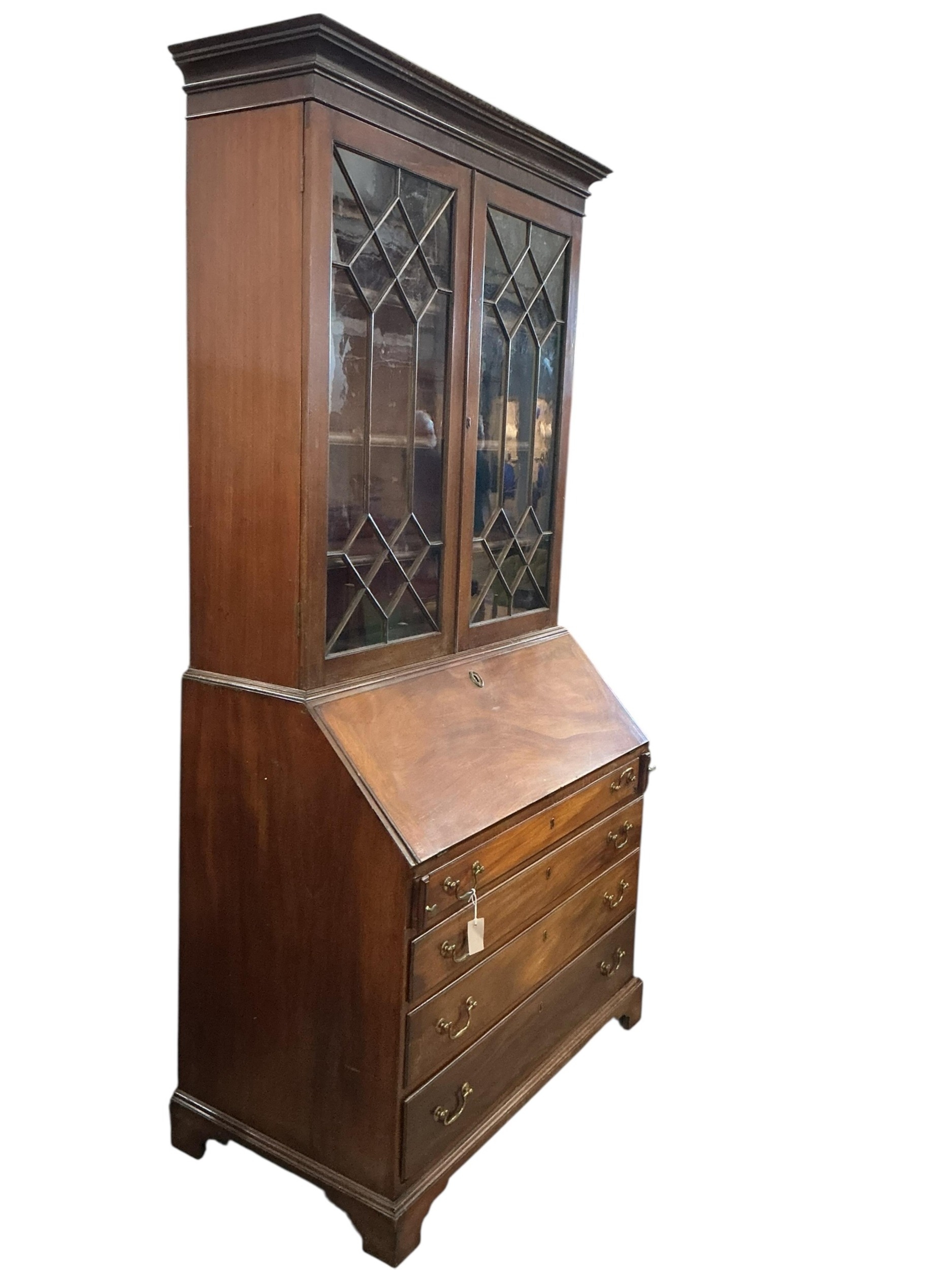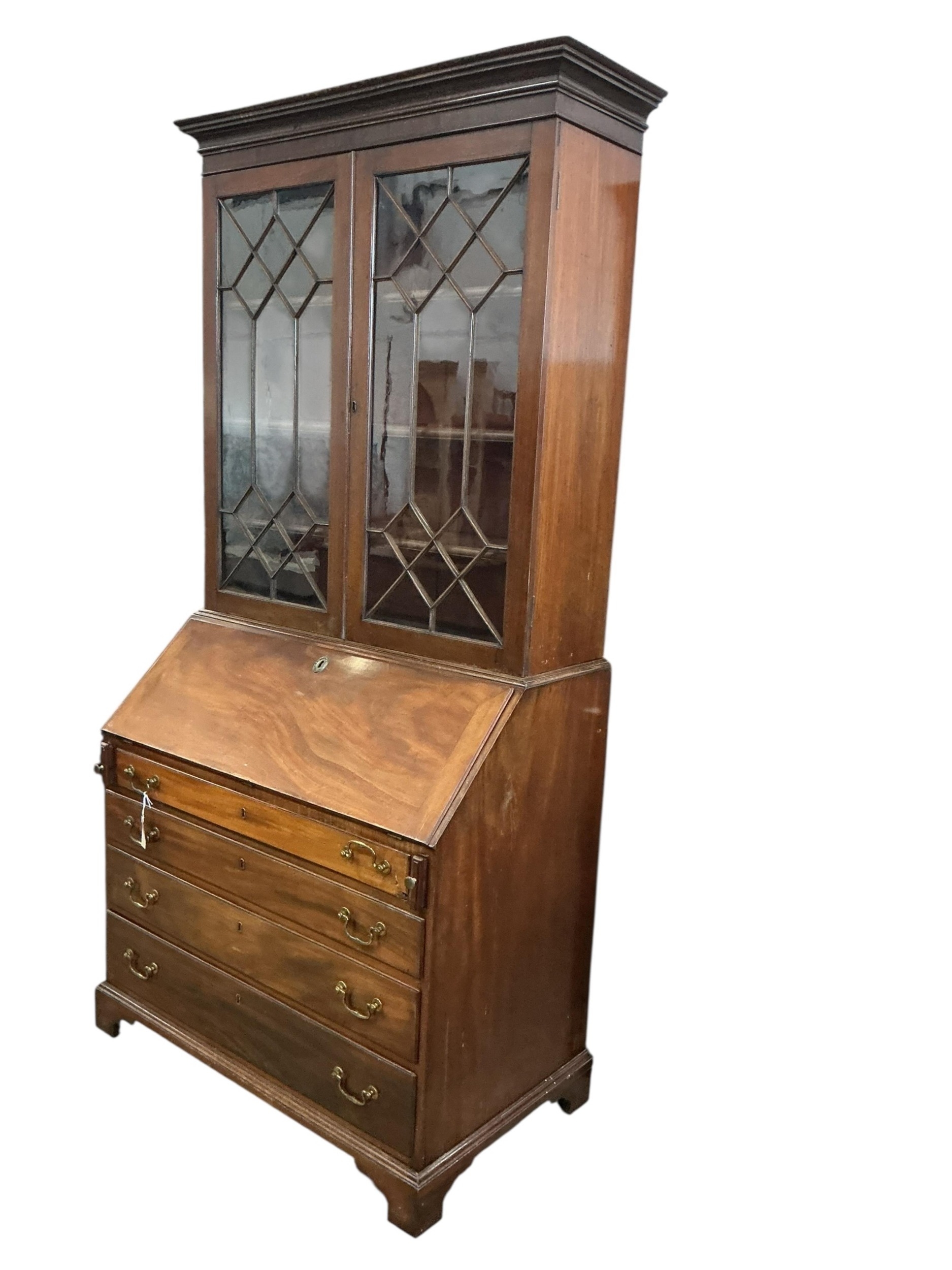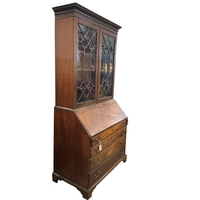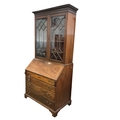 A George III and later mahogany bureau bookcase, width 111cm, depth 60cm, height 224cm