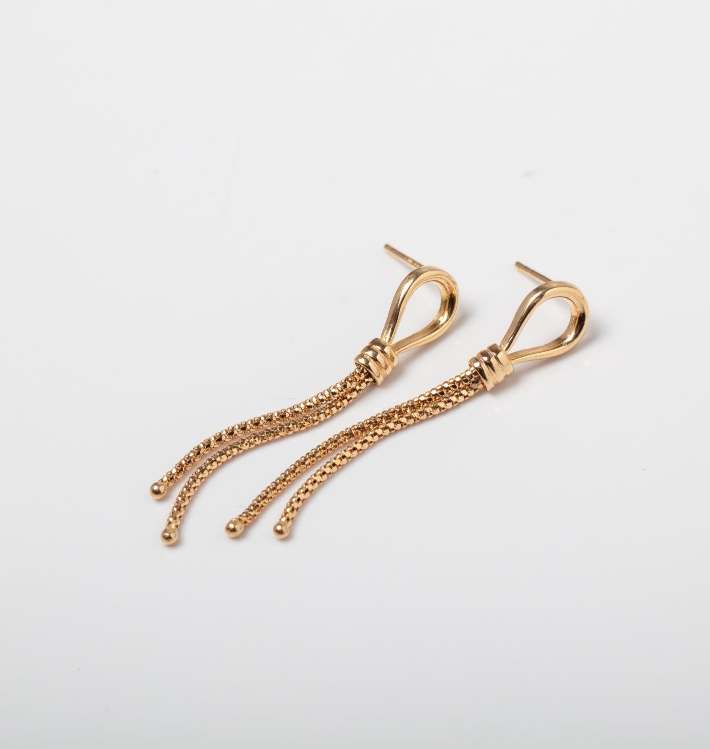 A 9CT GOLD DROP EARRINGS A pair of double chain drop dangle earrings crafted in 9ct yellow gold weighing 1.91g