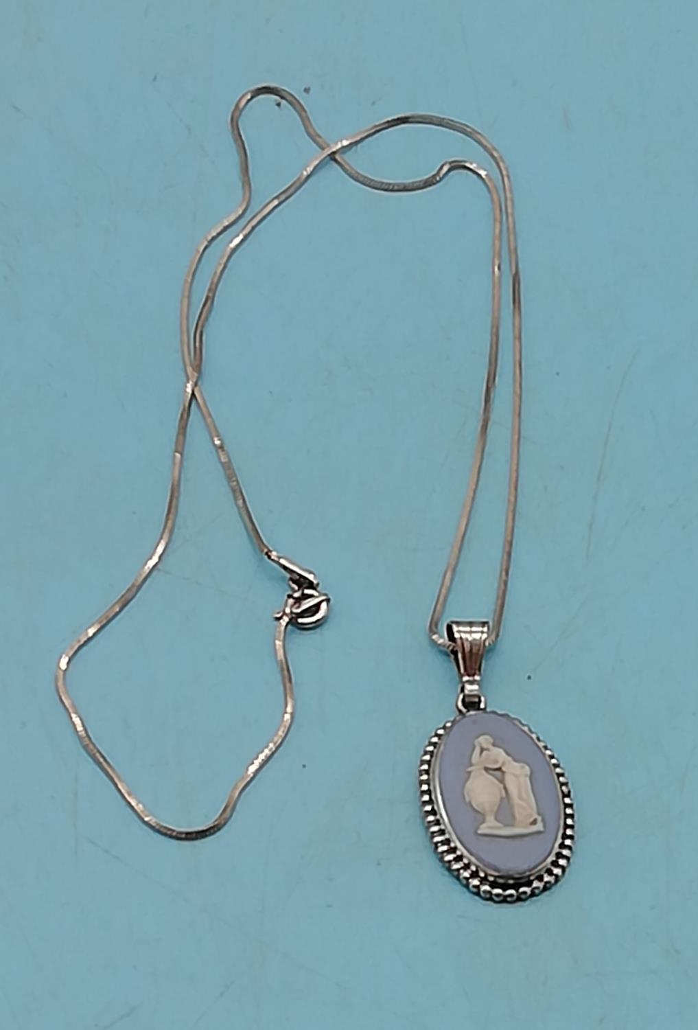 925 Silver Wedgwood Jasper Pendant and Chain.