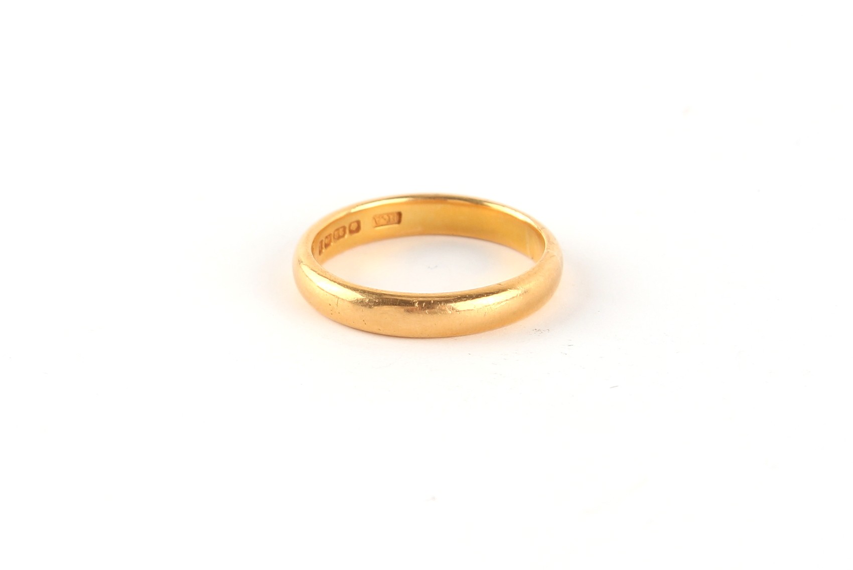 Property of a lady - an early 20th century 22ct gold plain wedding band or wedding ring, approximately 7.7 grams, size U.