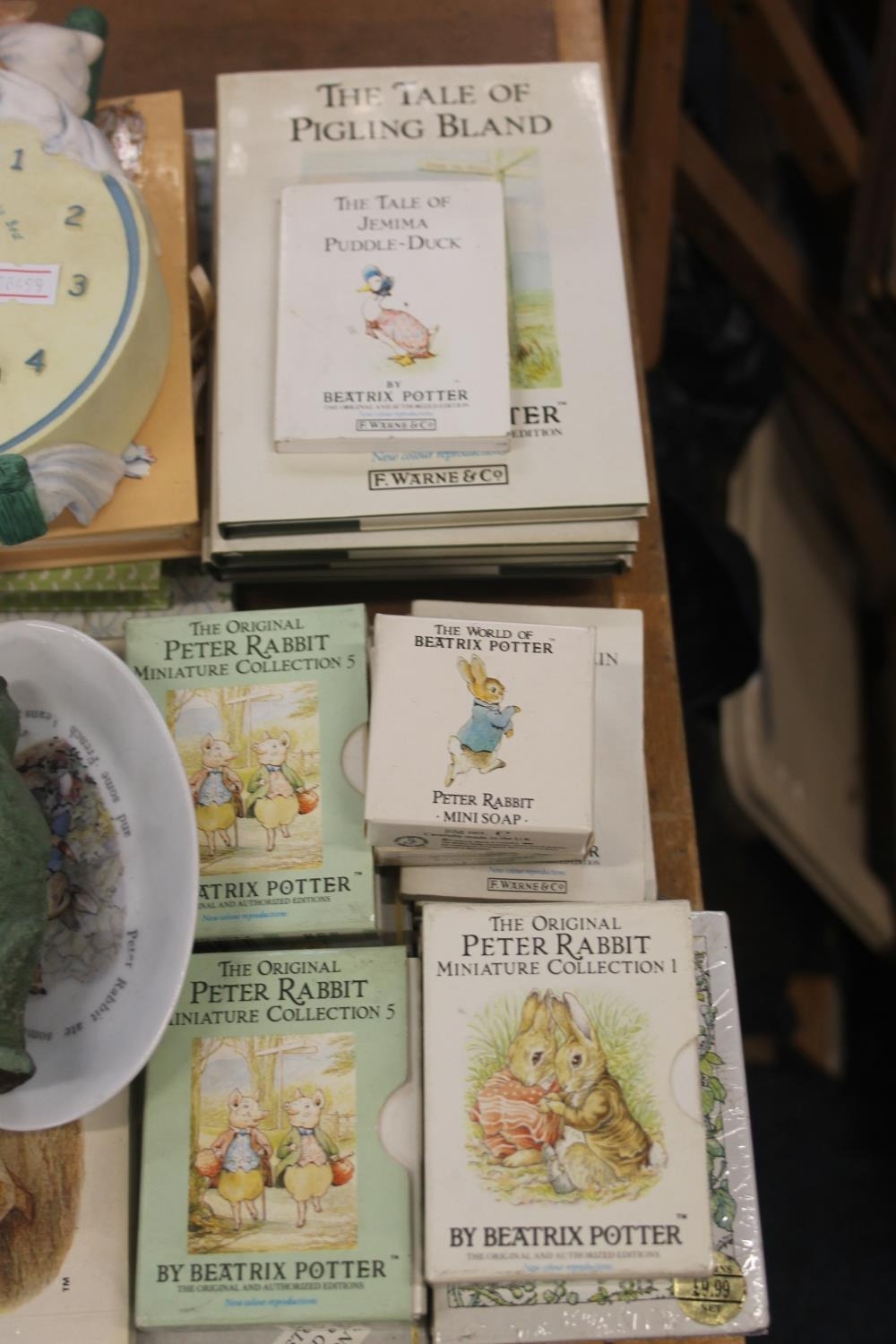 Peter Rabbit items to include clocks, cards, etc.