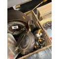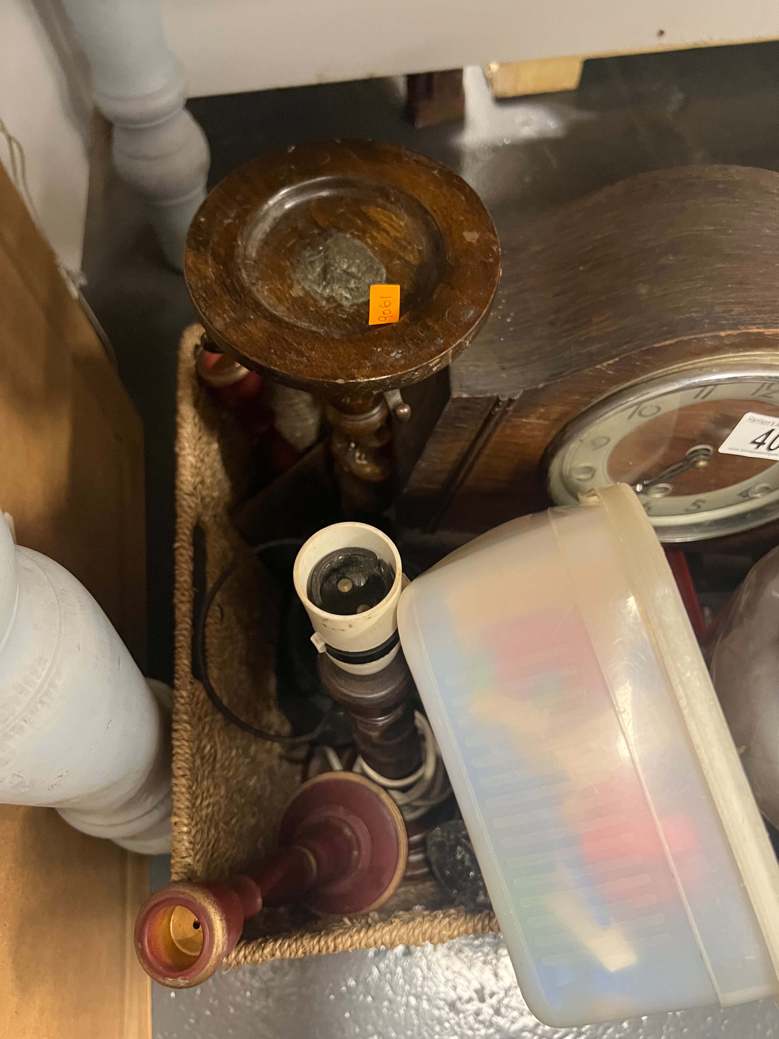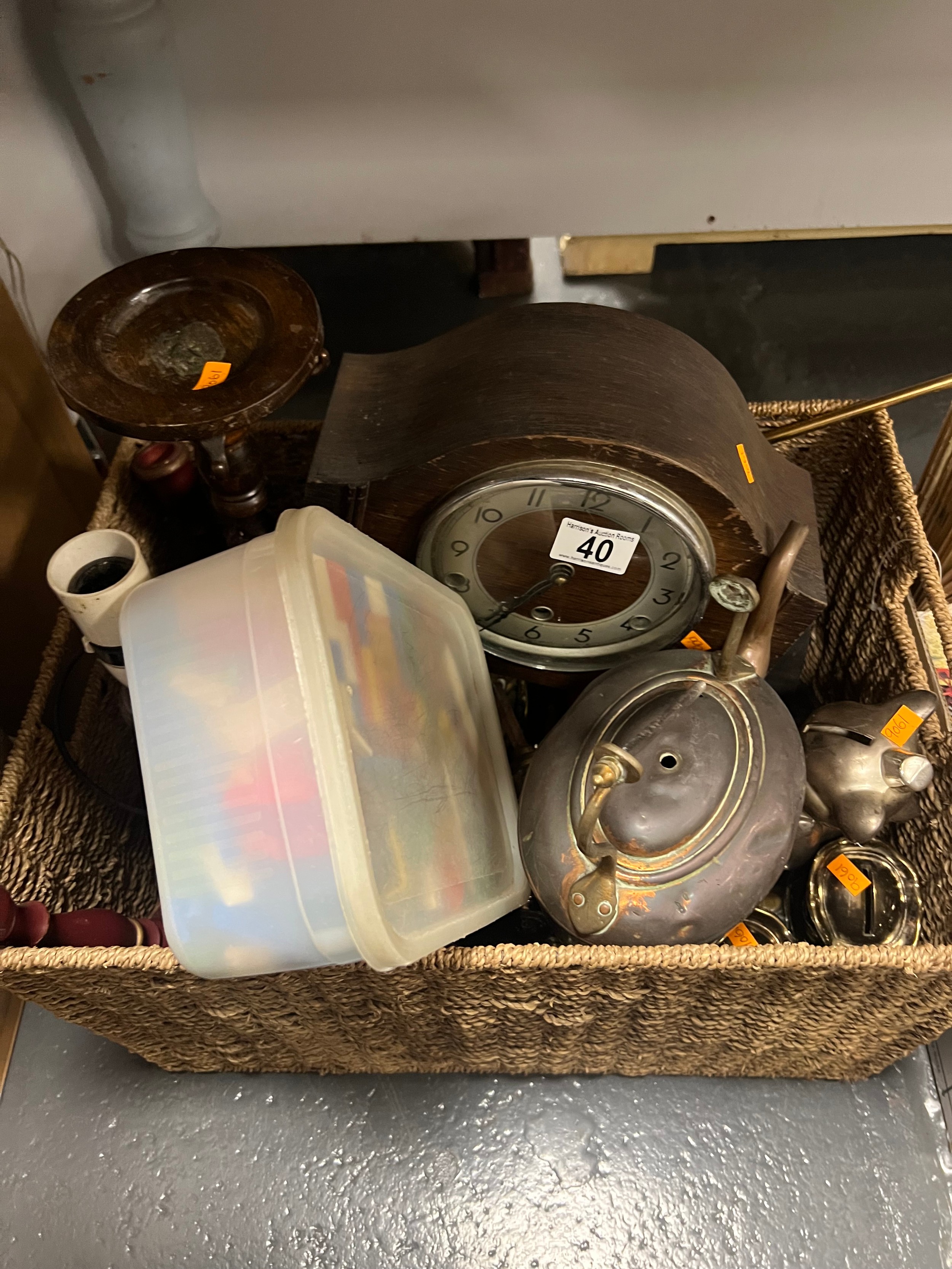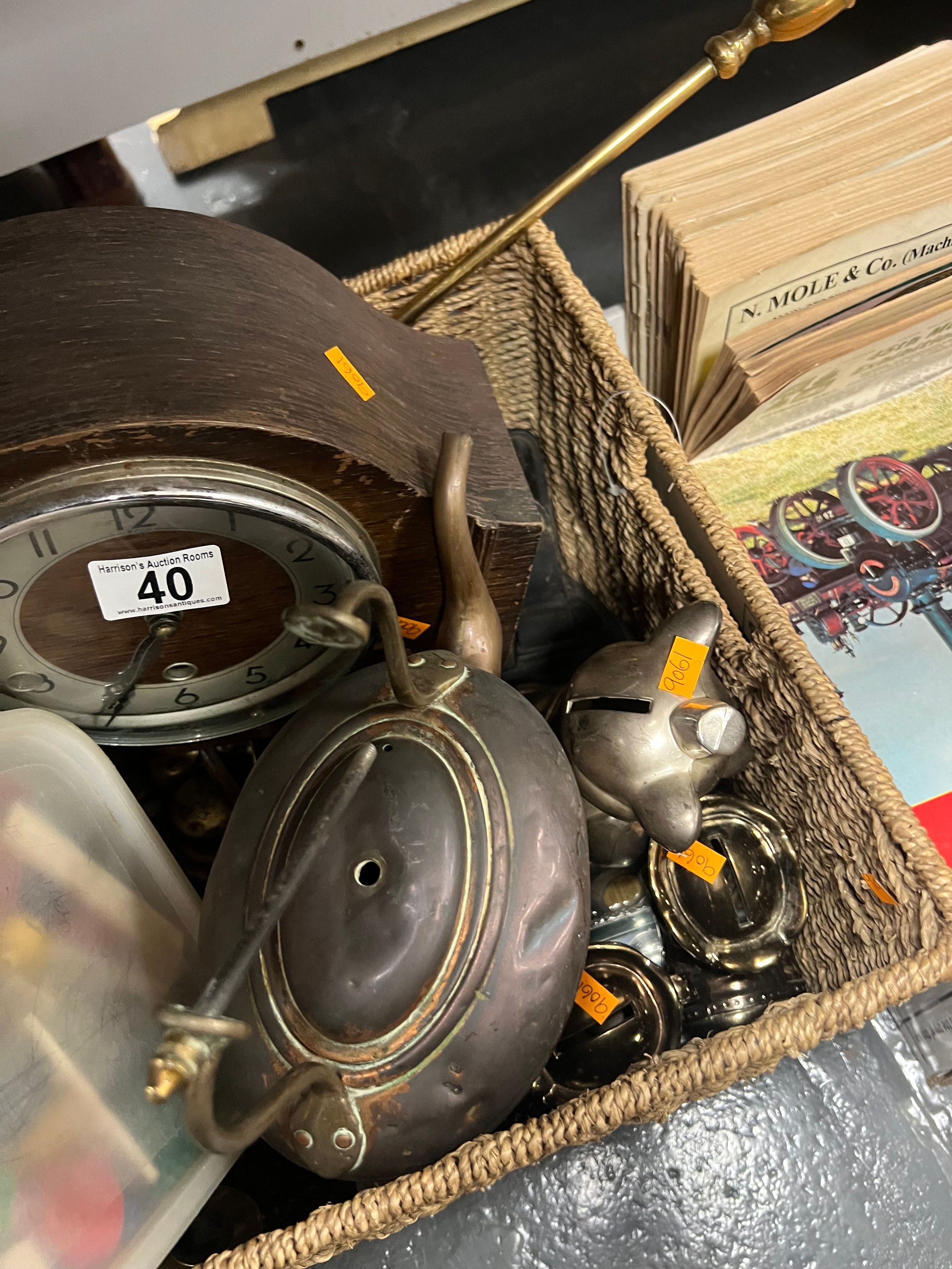 Basket of victorian & later brass ware inc barley twist sticks etc