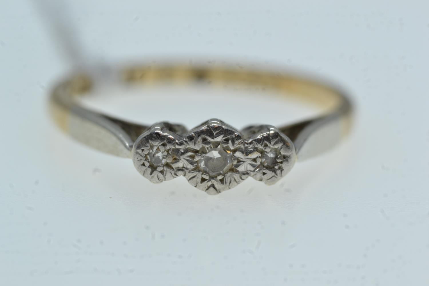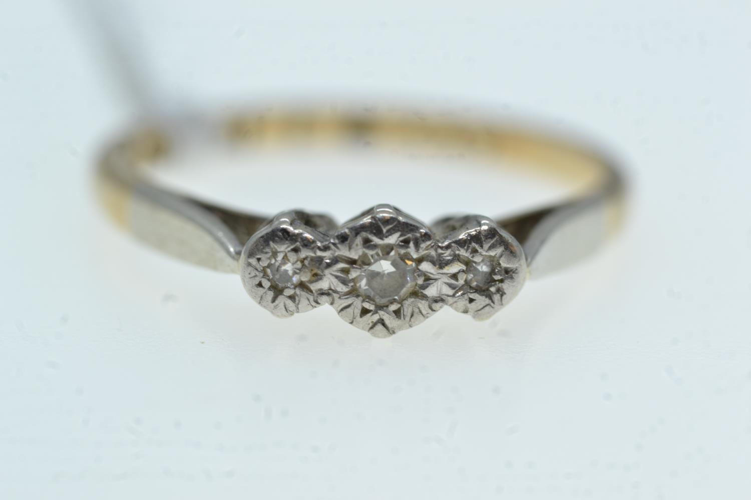 9ct gold, platinum & three stone diamond ring, size N, 2.03 grams