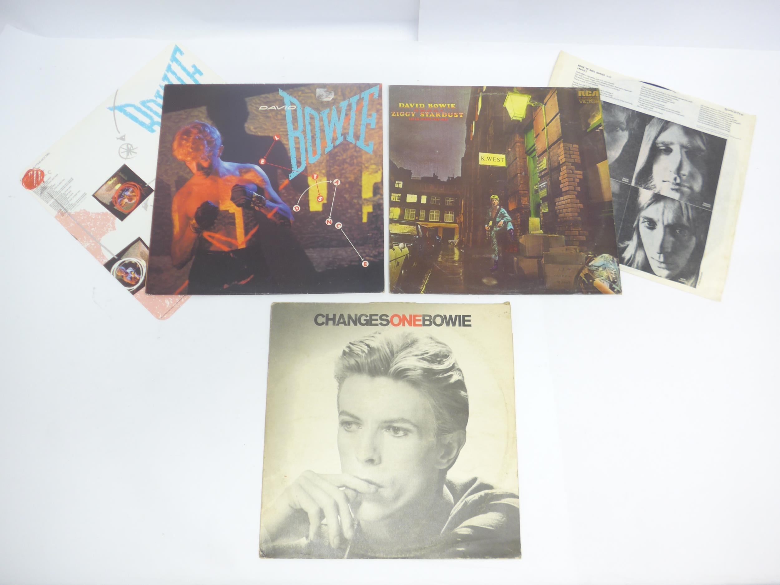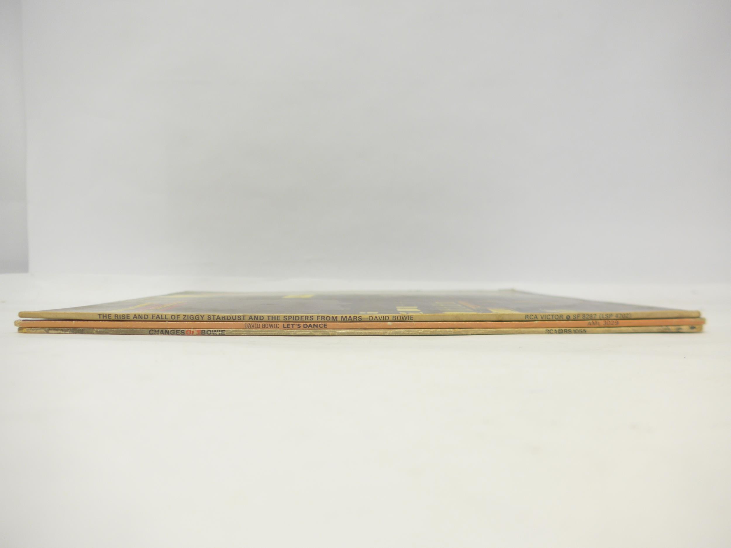 DAID BOWIE: Three LPs to include 'The Rise And Fall Of Ziggy stardust And the Spiders From Mars' with printed inner (RCA Victor SF 8287), 'Let's Dance' with printed inner (AML 3029) and 'ChangesOneBowie' (RS 1055) (3, vinyl and sleeves VG)