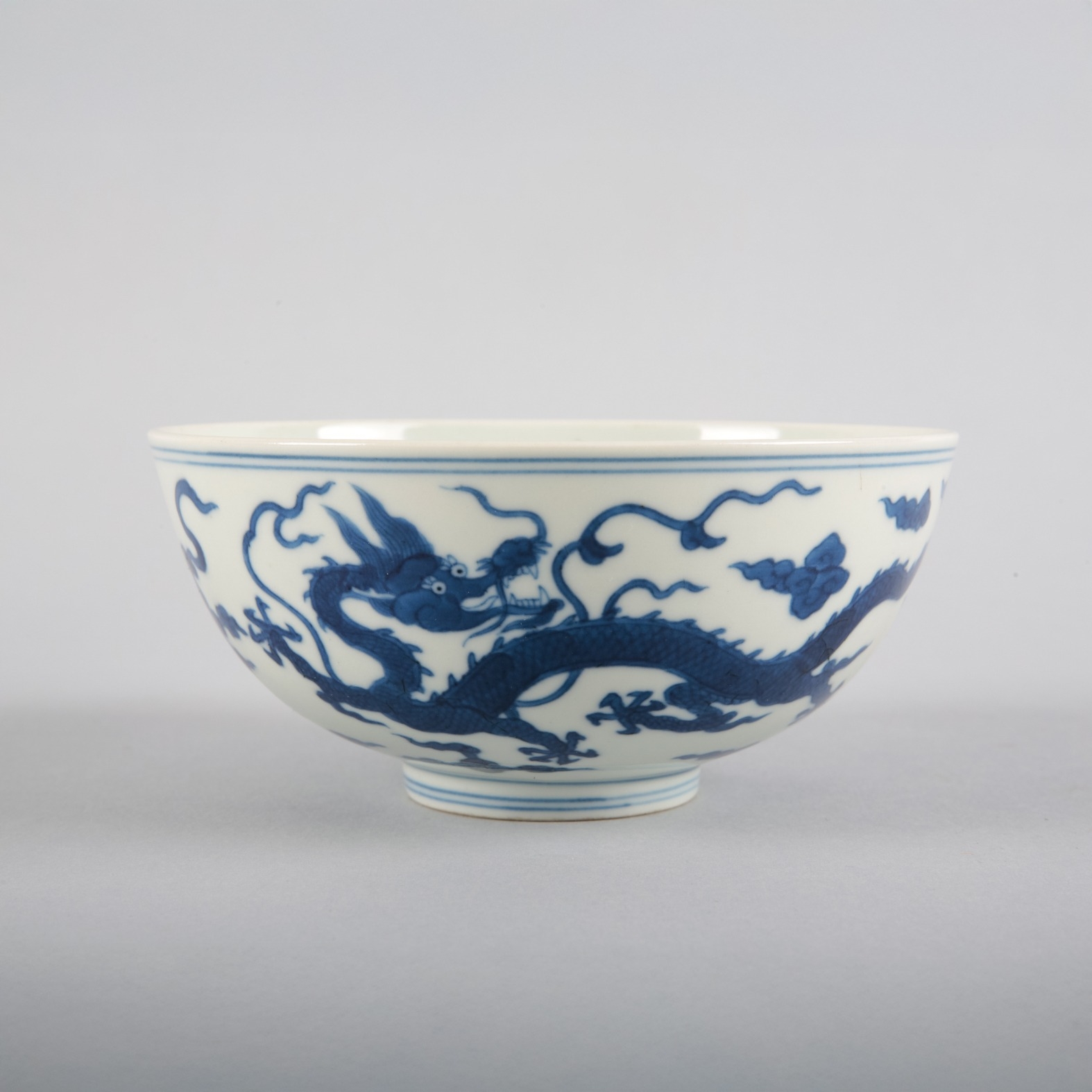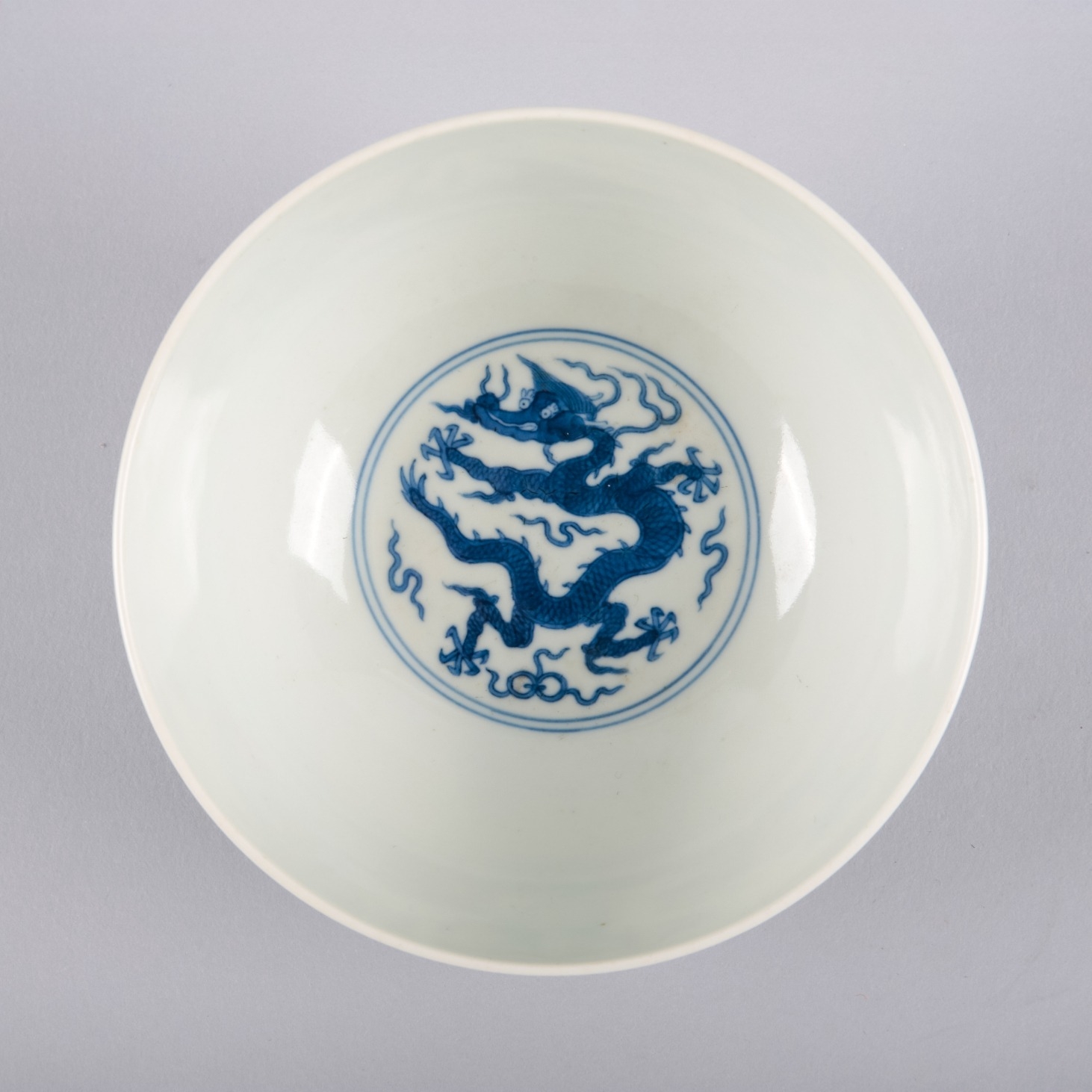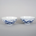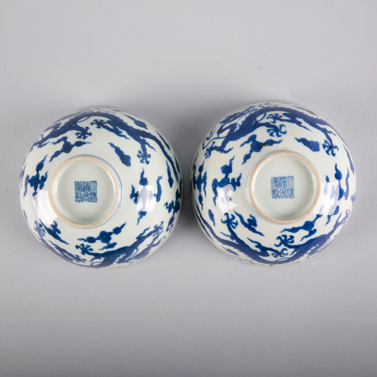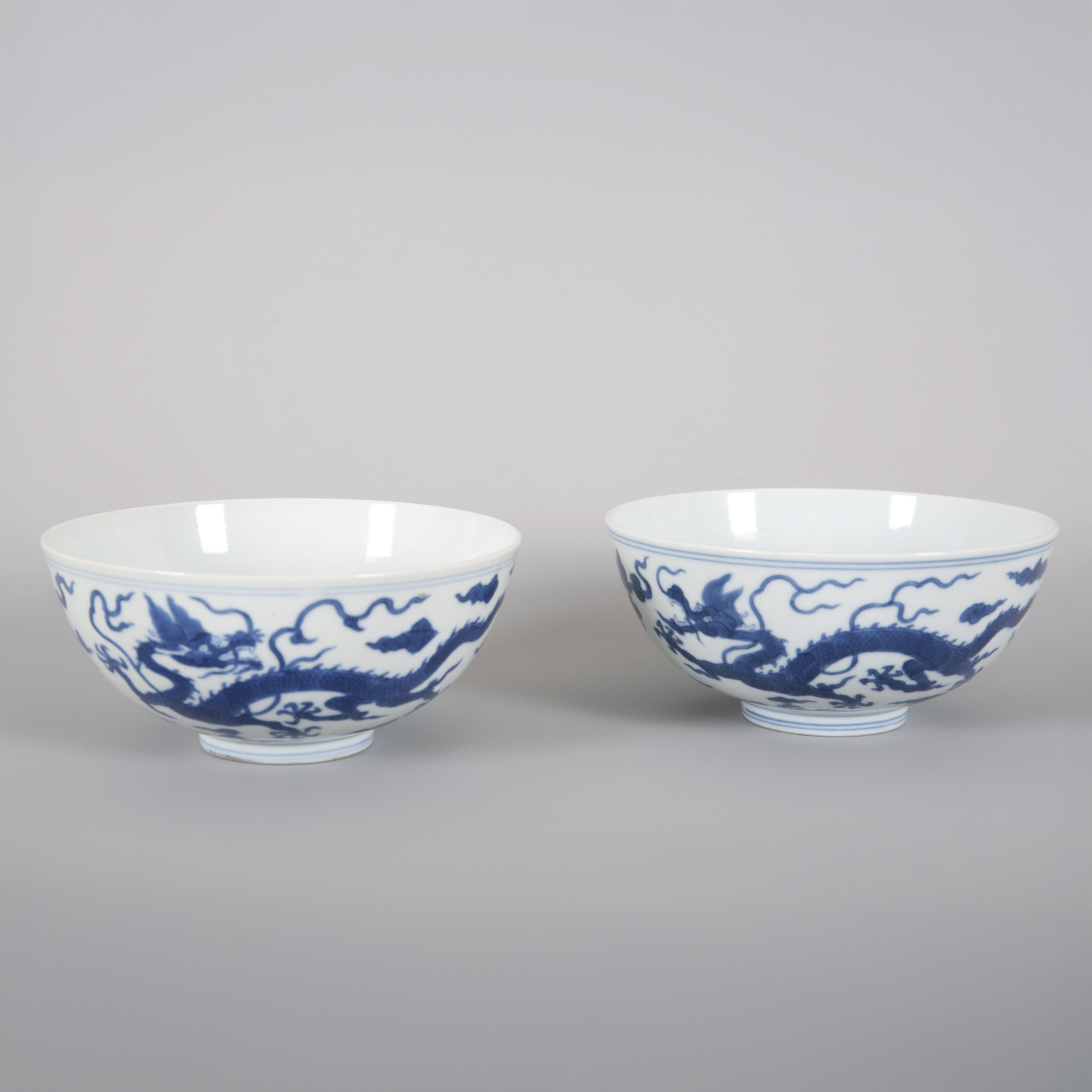 A PAIR OF CHINESE PORCELAIN BLUE AND WHITE DRAGON BOWLS