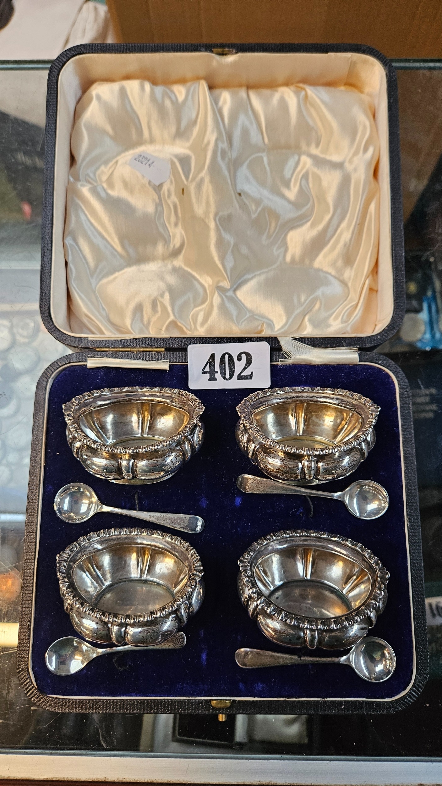 Cased Set of 4 Silver Salts with spoons Sheffield 1904 100g ...