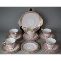 A Royal Standard Gilt and Pink Decorated Teaset to Comprise ...