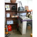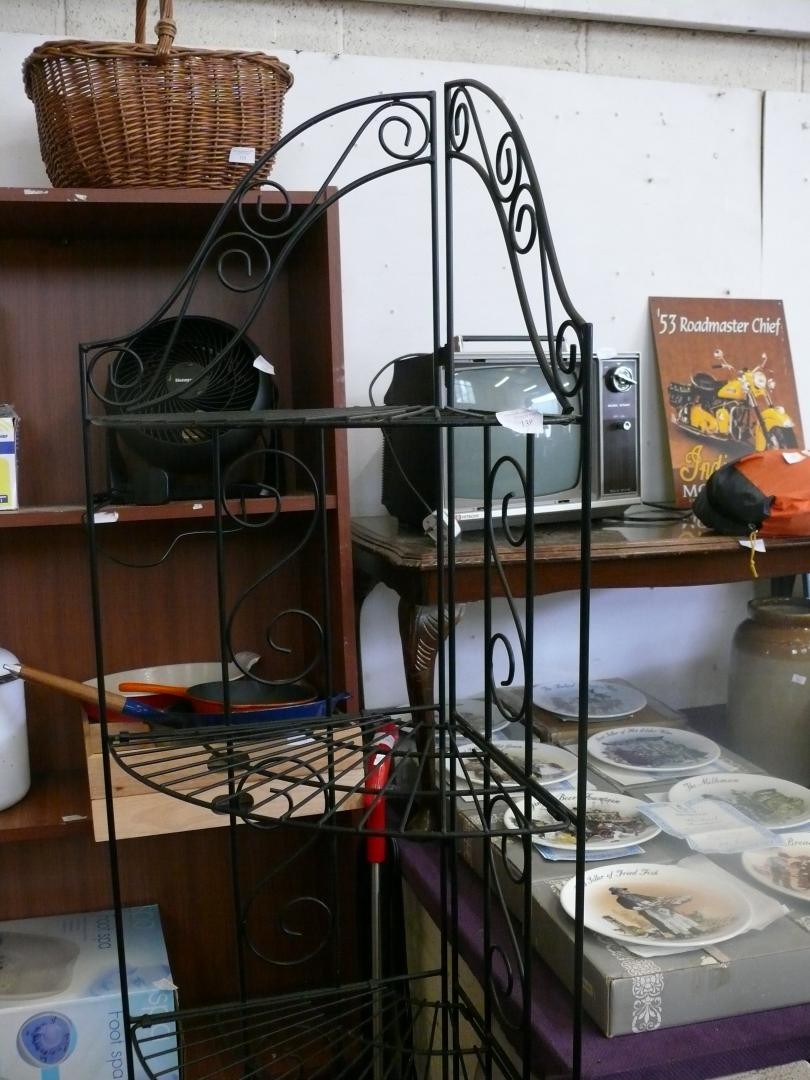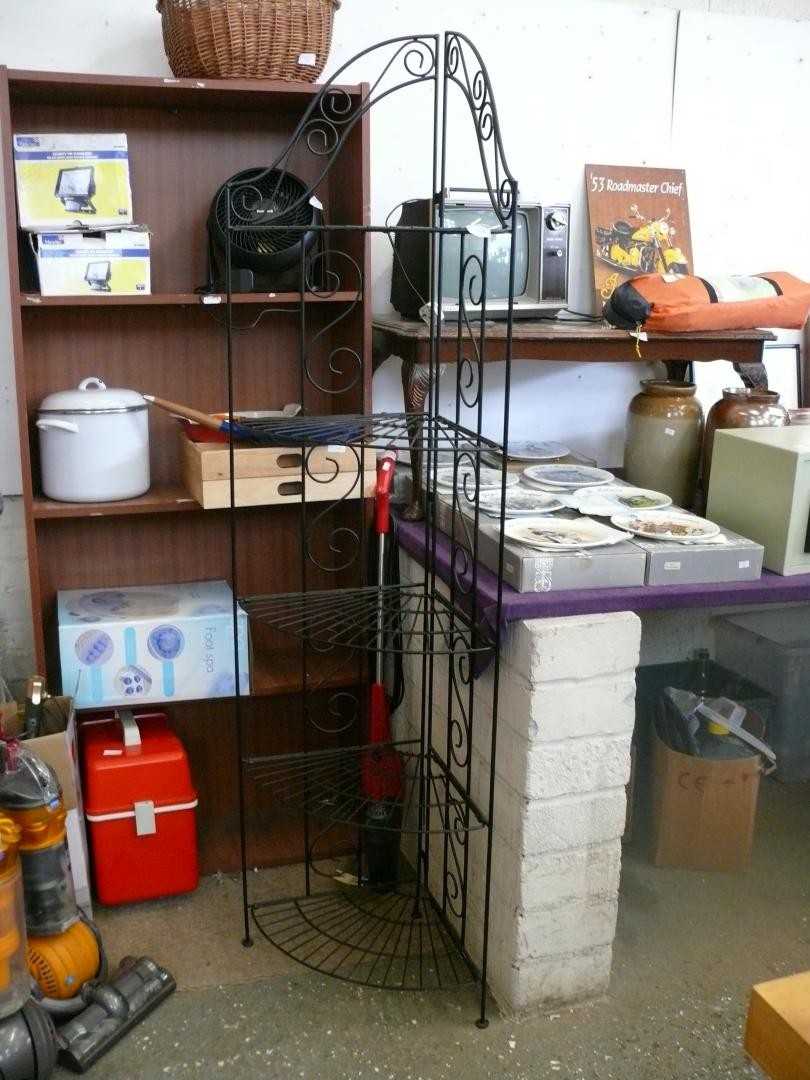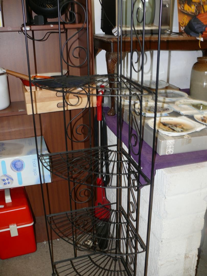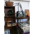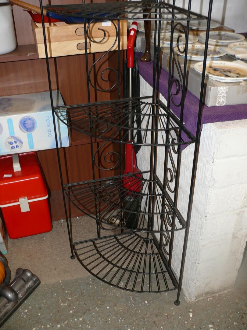 Ornate black metal foldable corner shelf unit