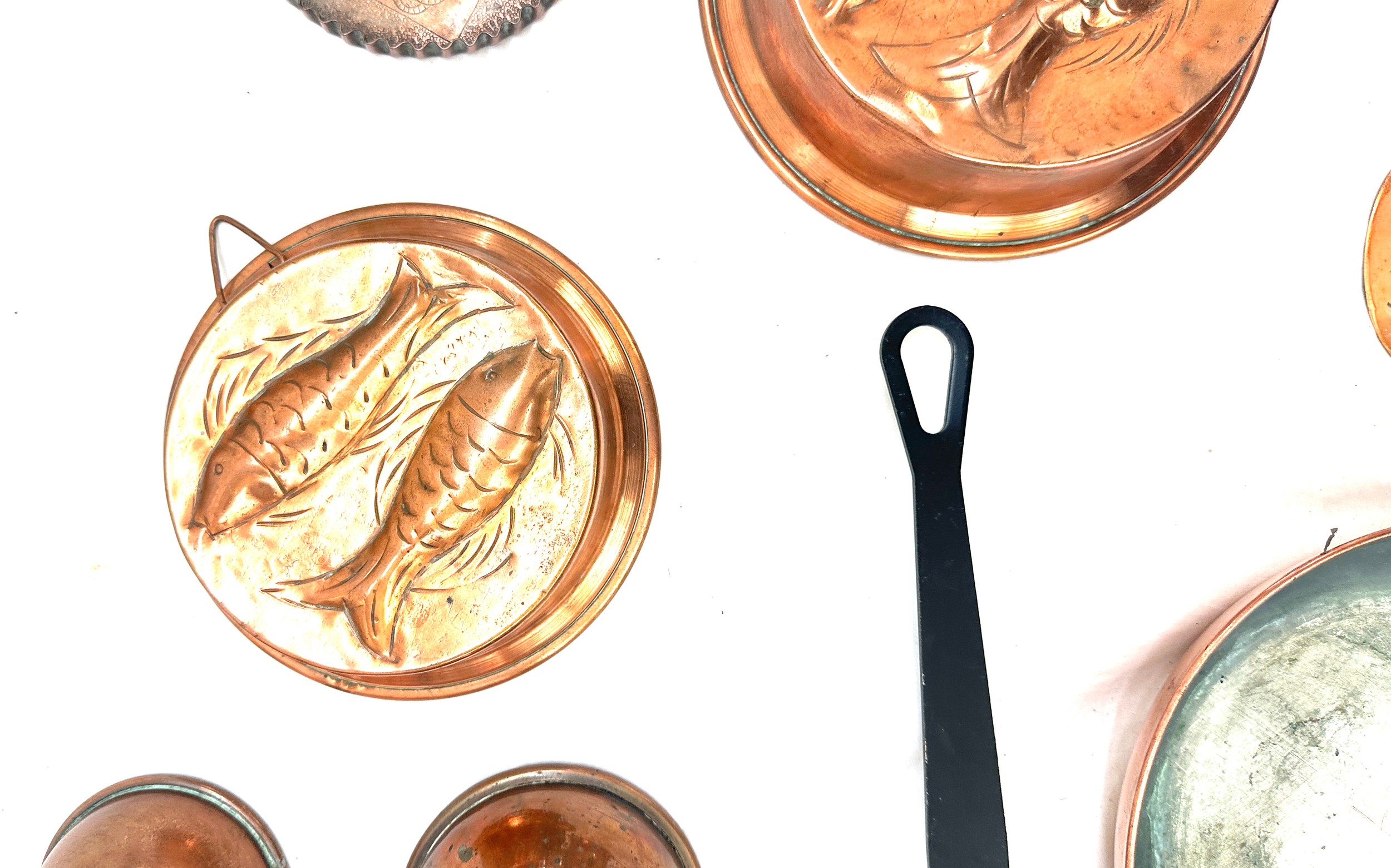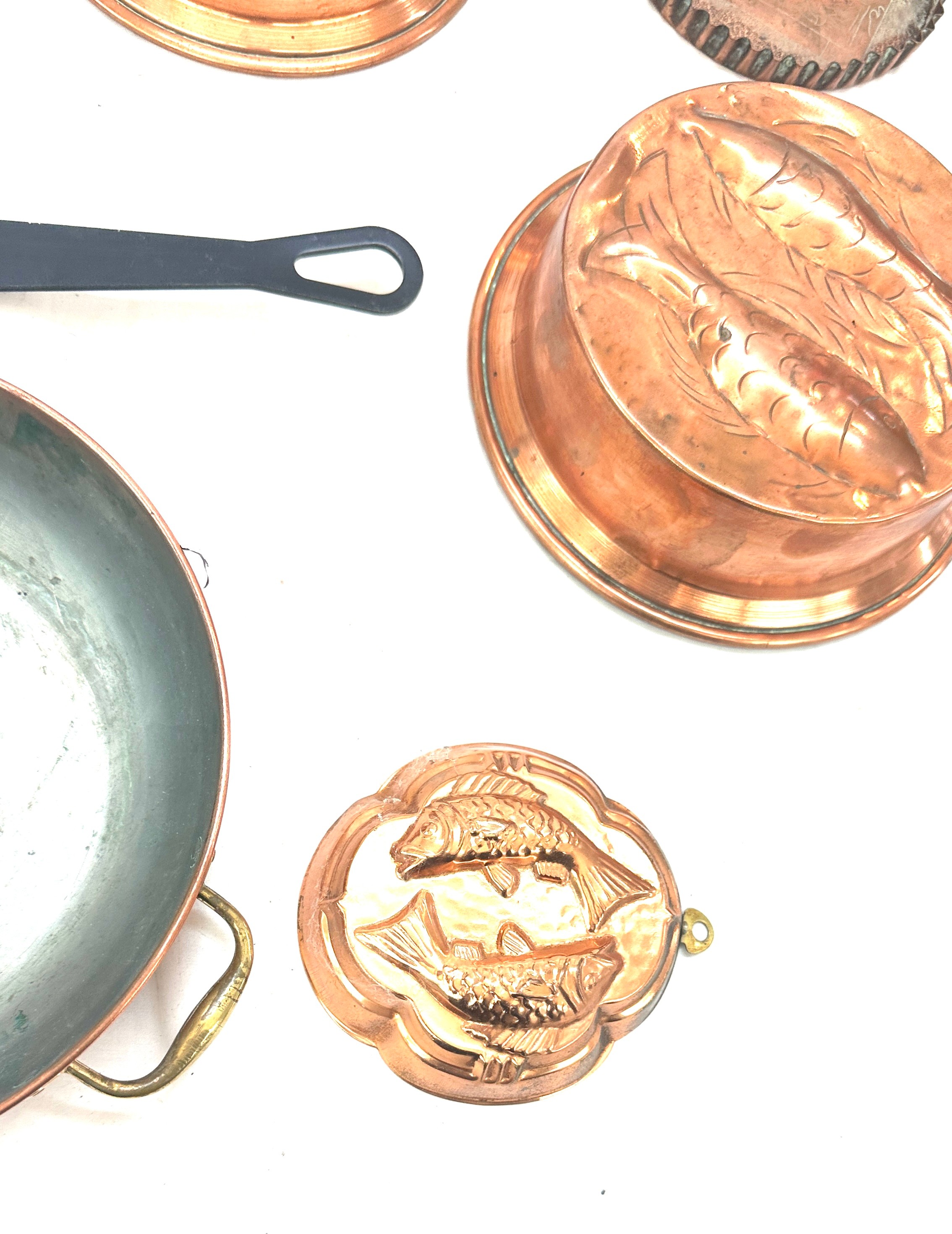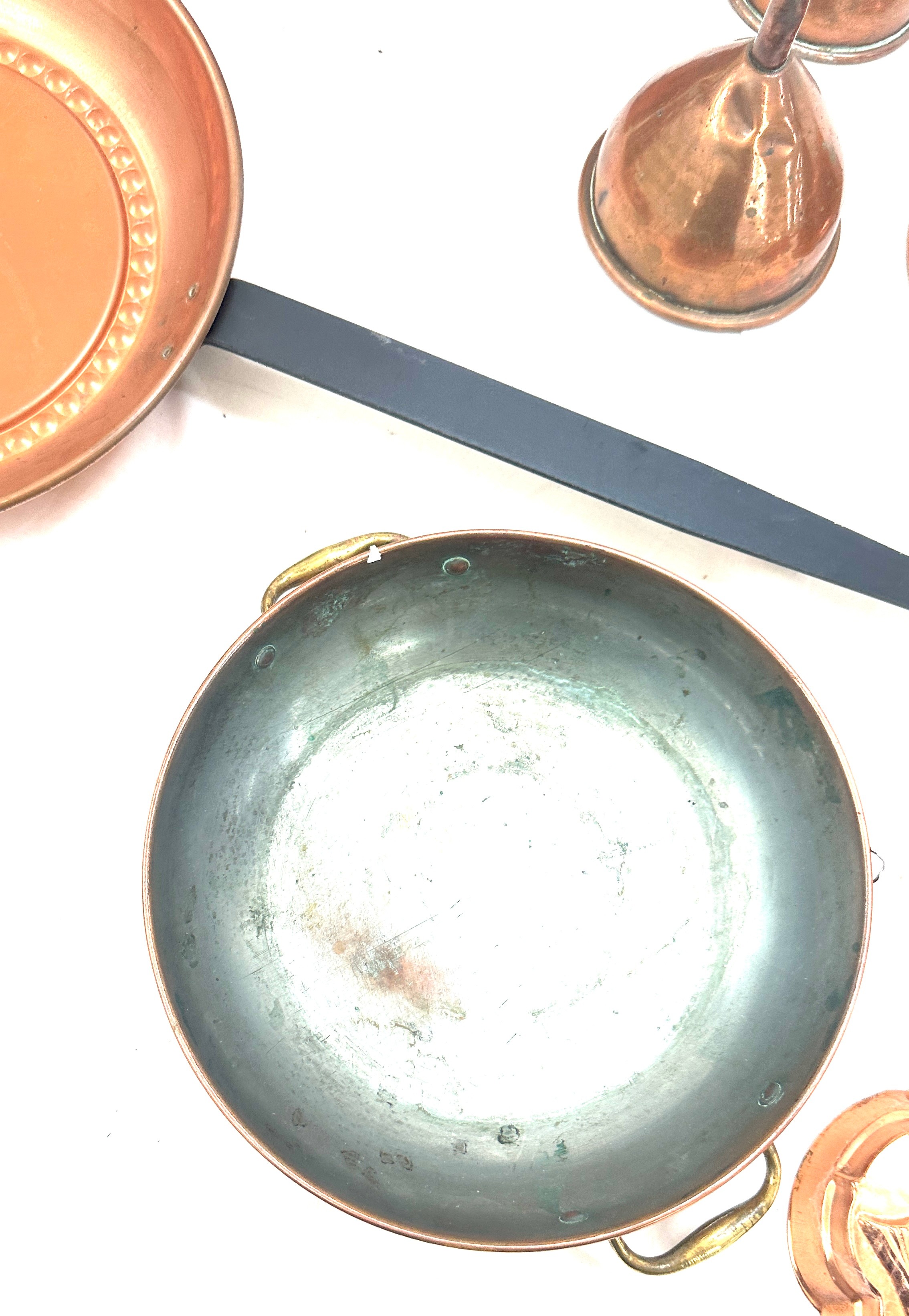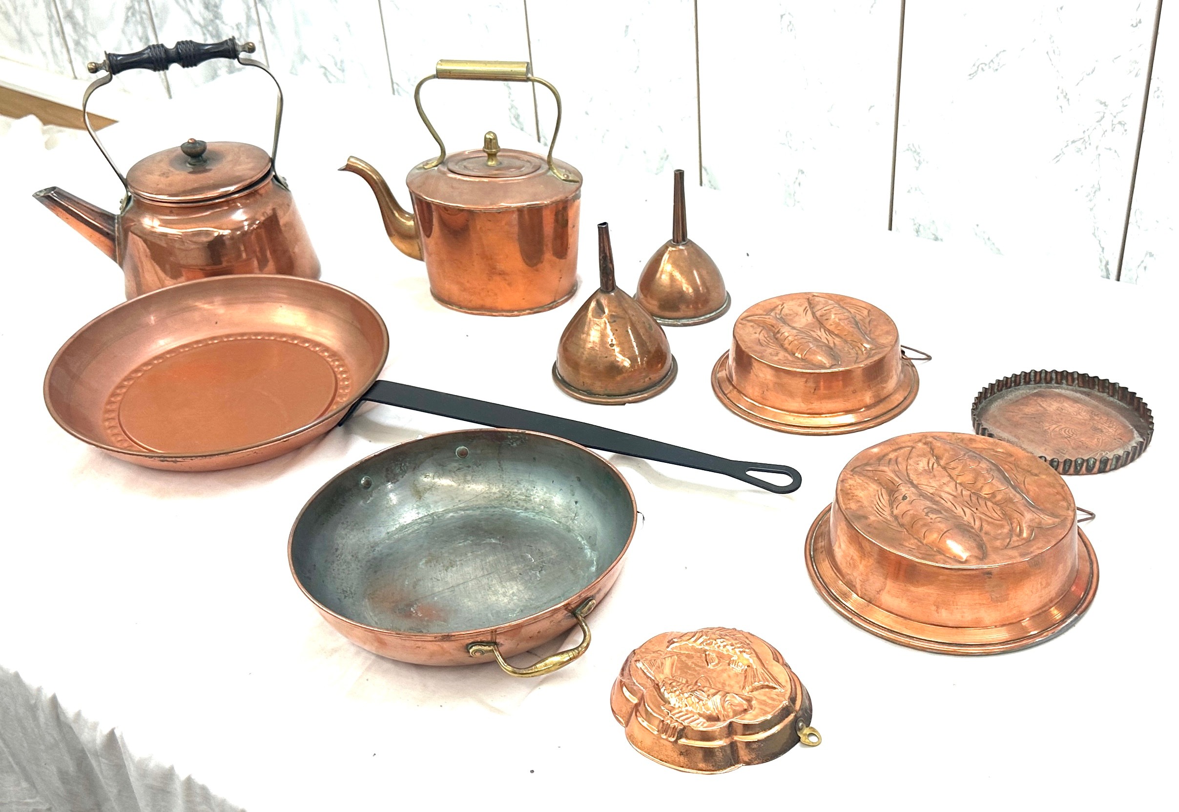 Selection of copper metal ware to include kettles, pans, etc