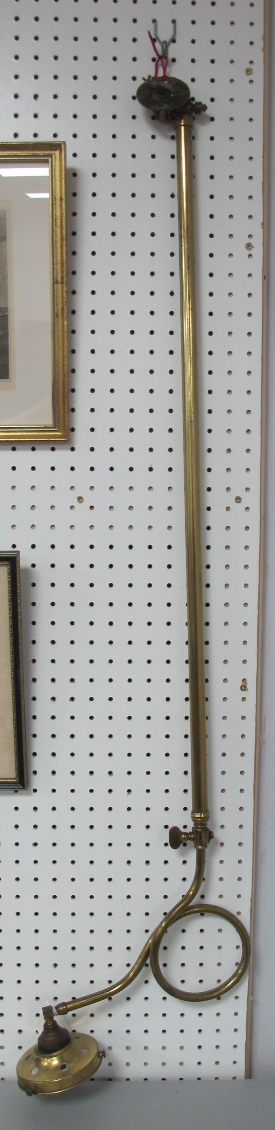 Brass Gas Ceiling Lamp, circa early XX Century, with looped support to lamp holder, on straight adjustable arm, approximately 95cm overall length, converted to electricity.