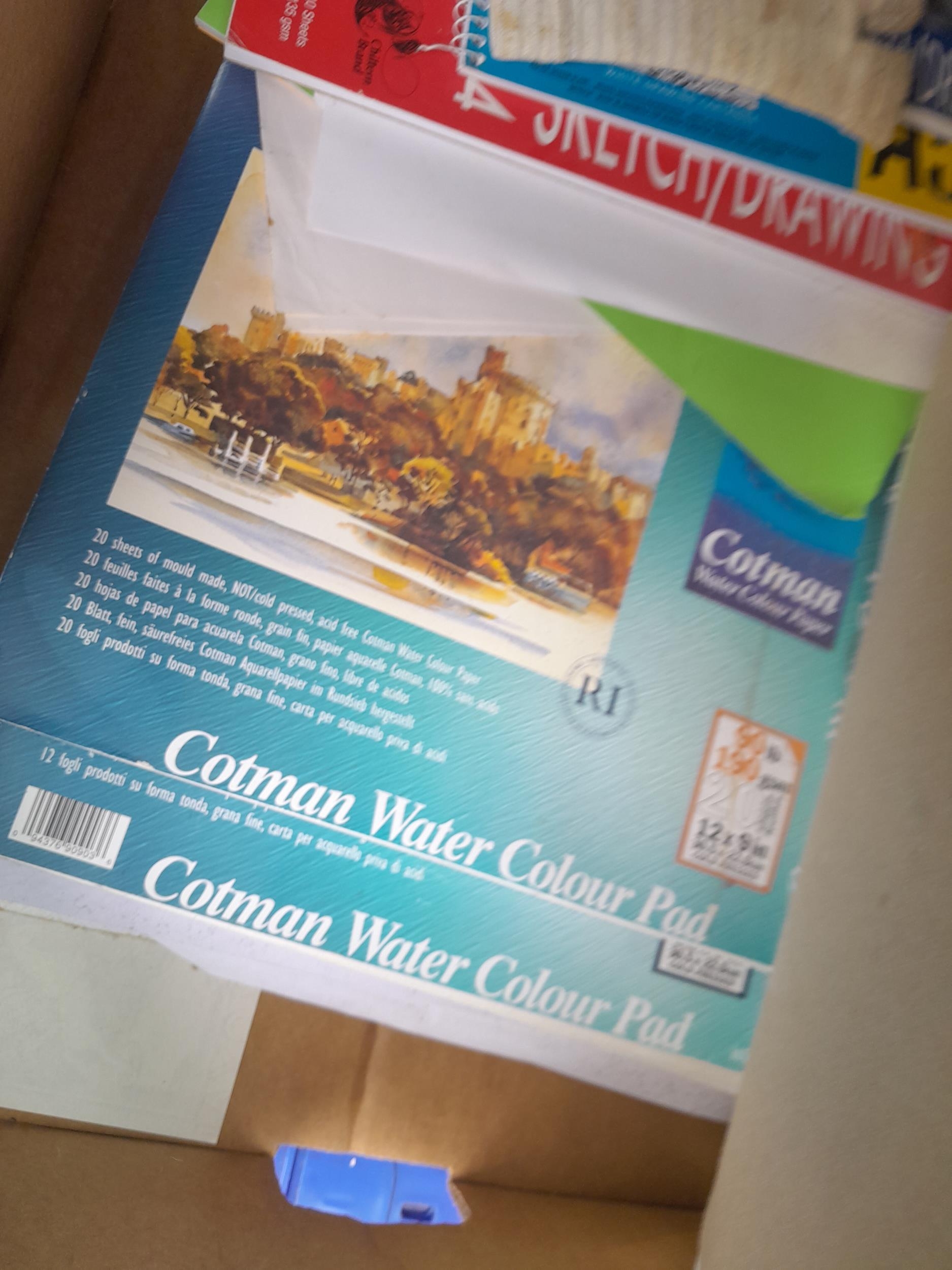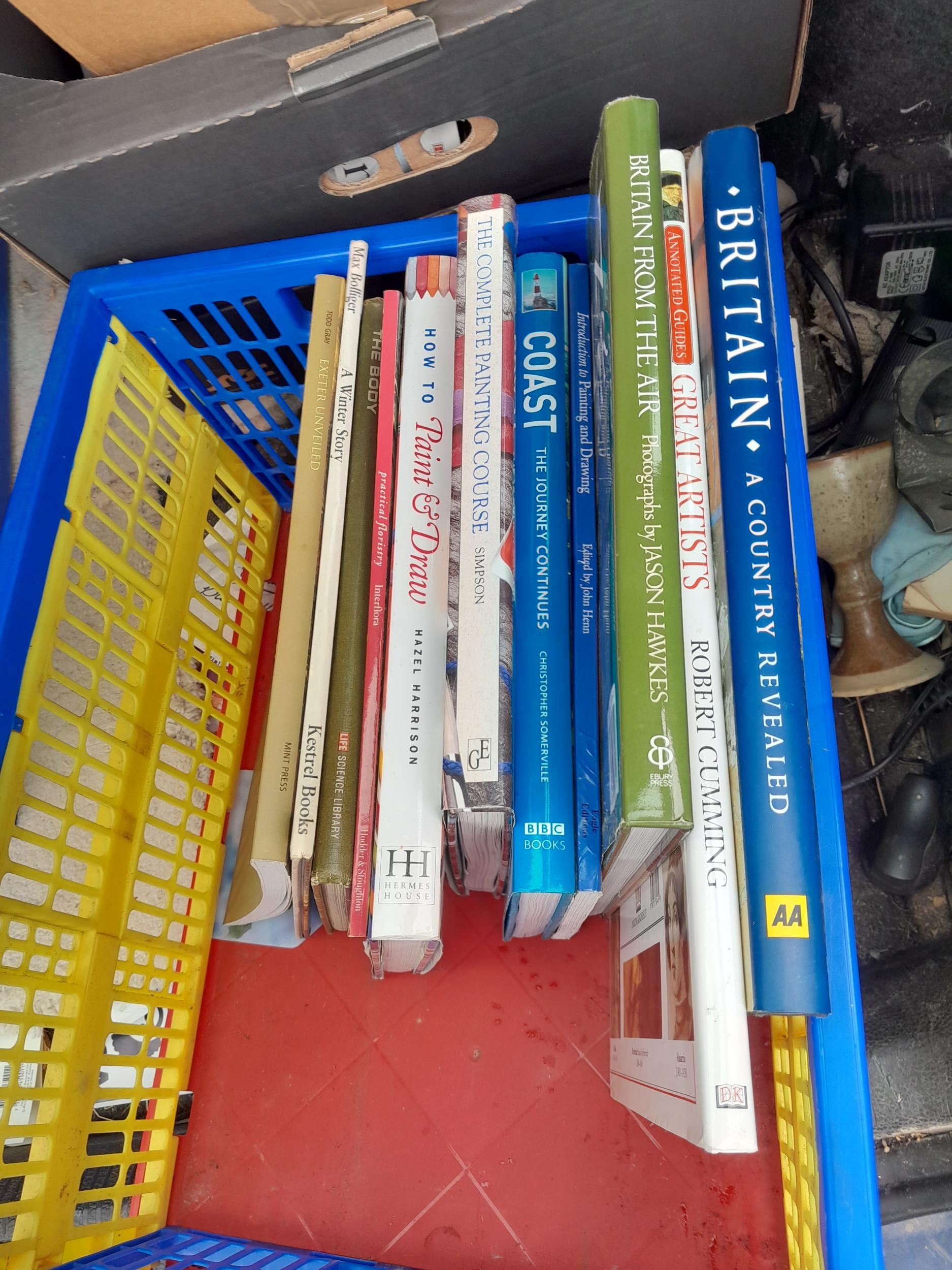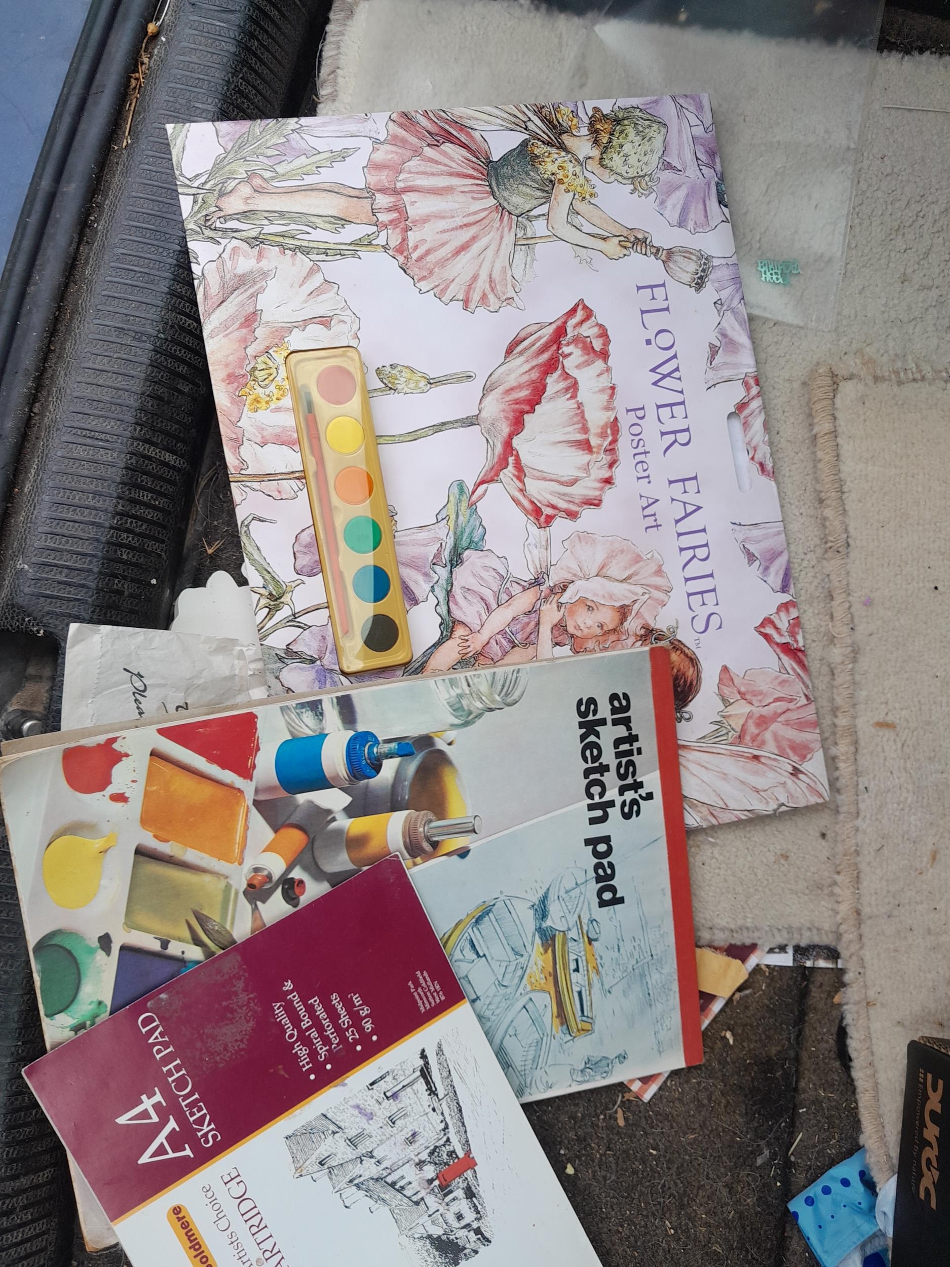 Box of painting related books with some sketch pads , Flower Fairy painting book etc.