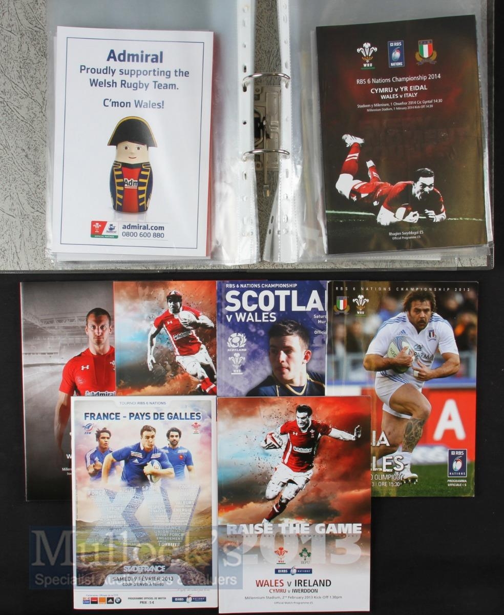 2013-2014 Great Wales Rugby Programme Collection (16): All 10 Six Nations games over two seasons, the first 5 leading to a Wales Championship in 2013, the four Autumn tests 2013 and the two away tests in South Africa 2014. In lever arch file & sleeves. All excellent