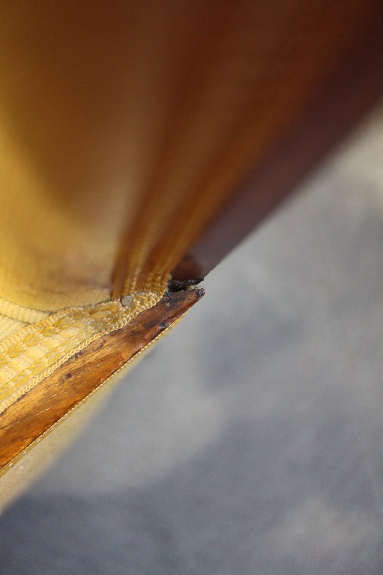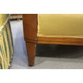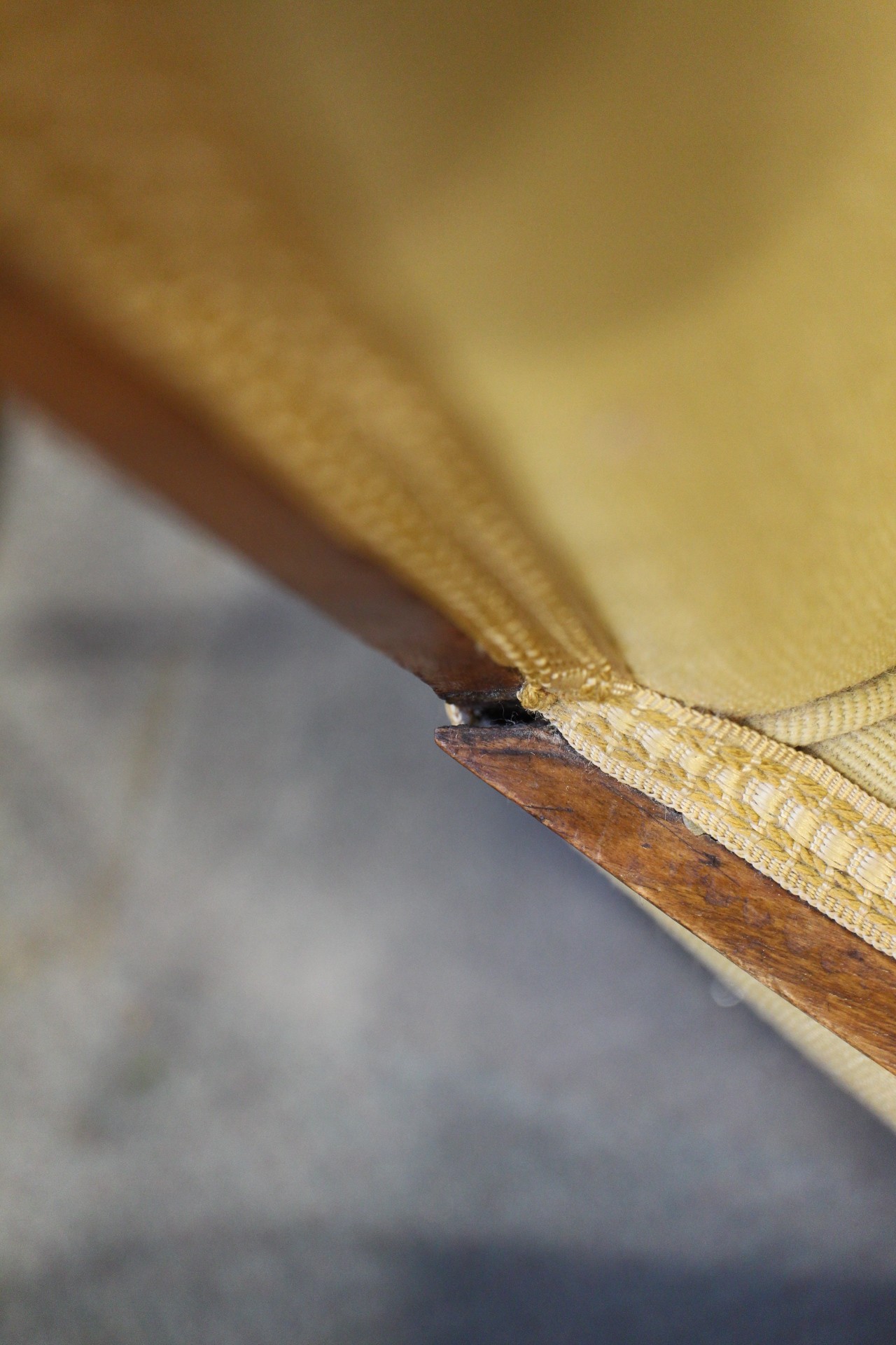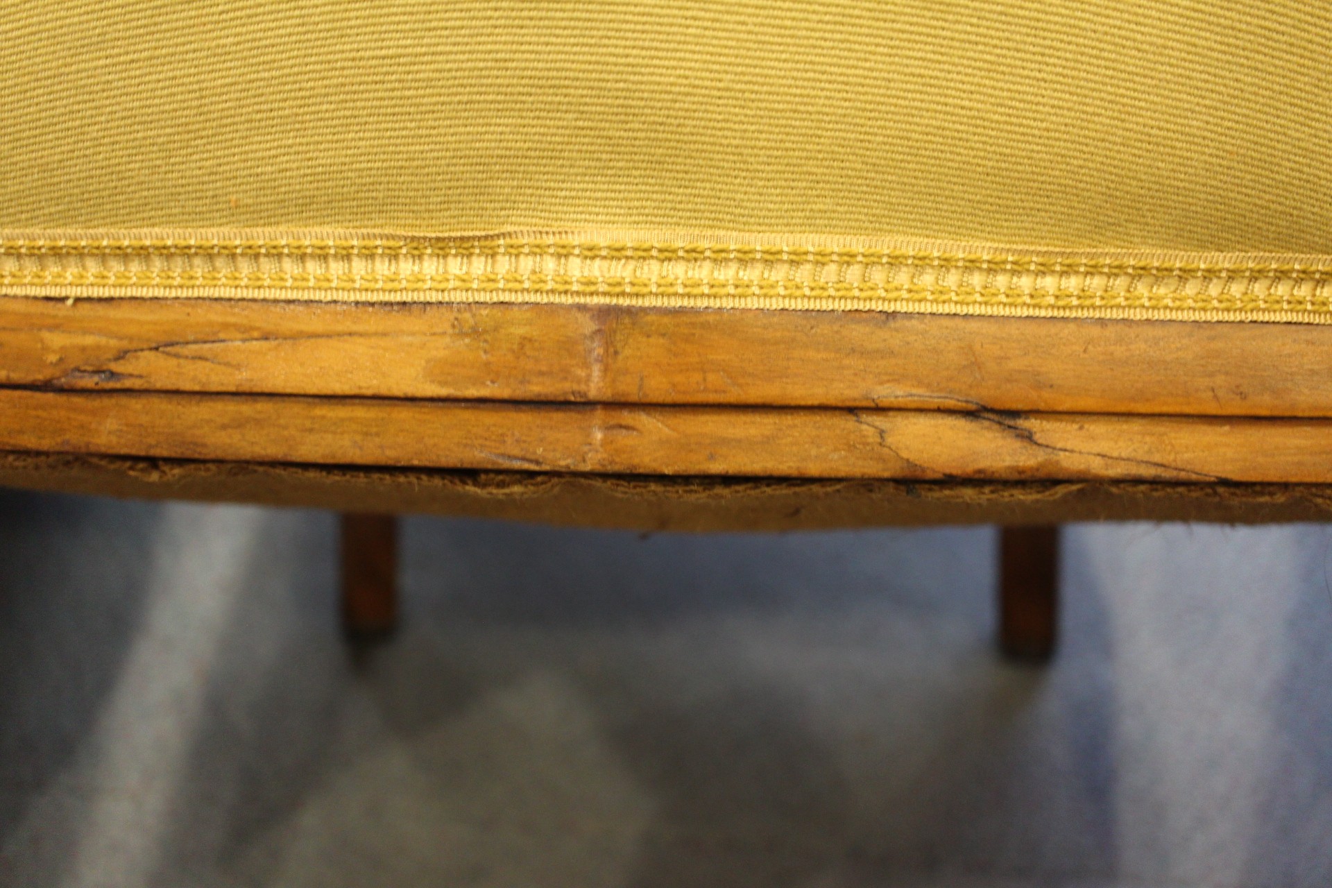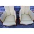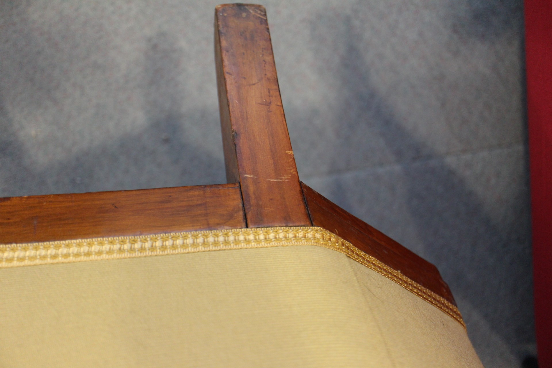 Manner of Emile Jacques Ruhlmann, a pair of Art Deco walnut framed tub armchairs, upholstered in gold material