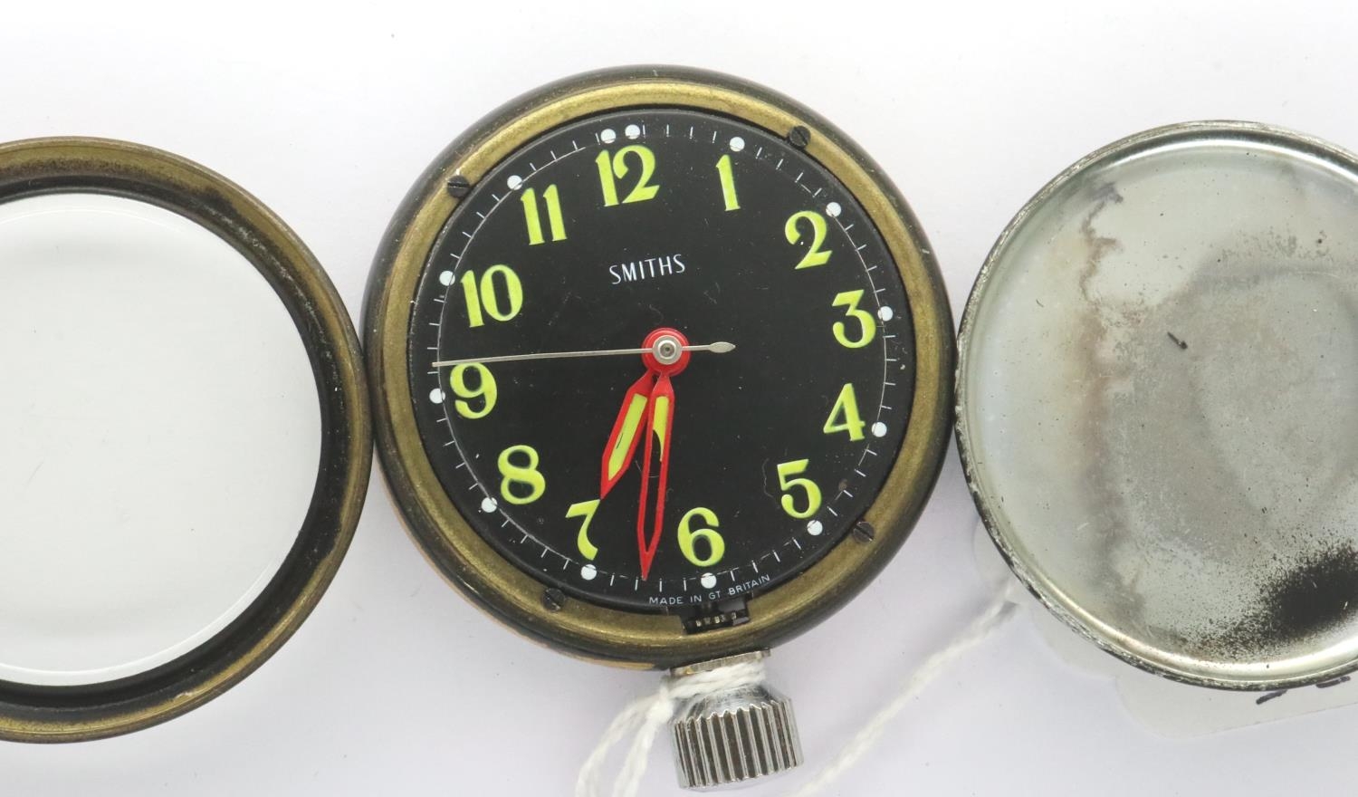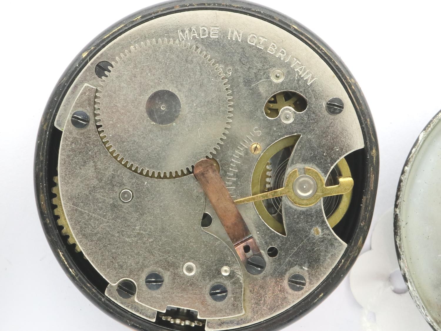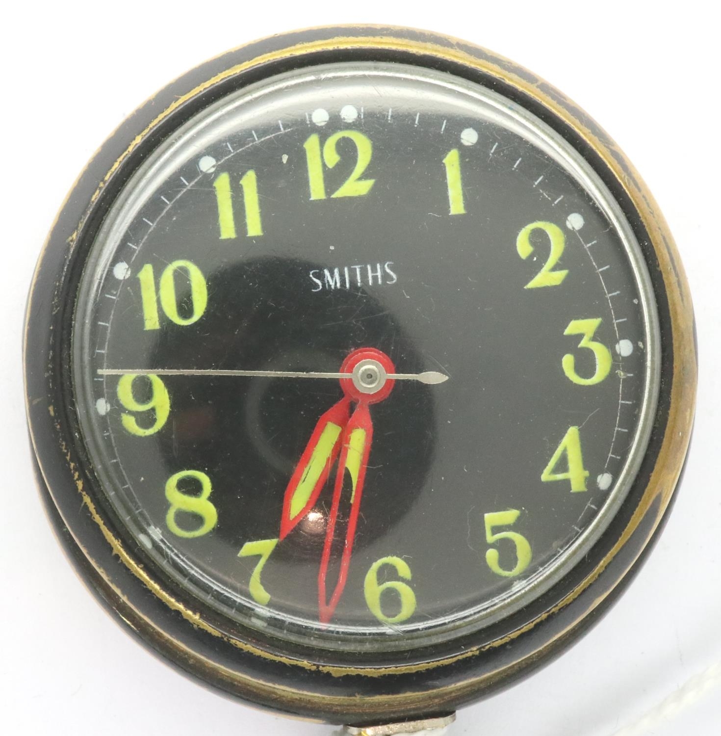 Smiths black face, bottom wind car back with magnetic clock, D: 45 mm, working at lotting. P&P Group 1 (£14+VAT for the first lot and £1+VAT for subsequent lots)