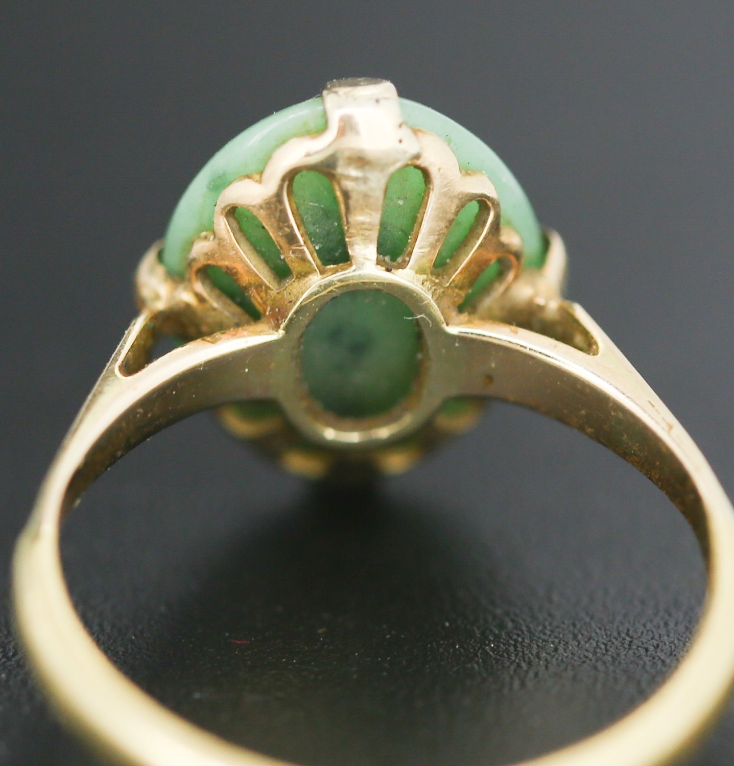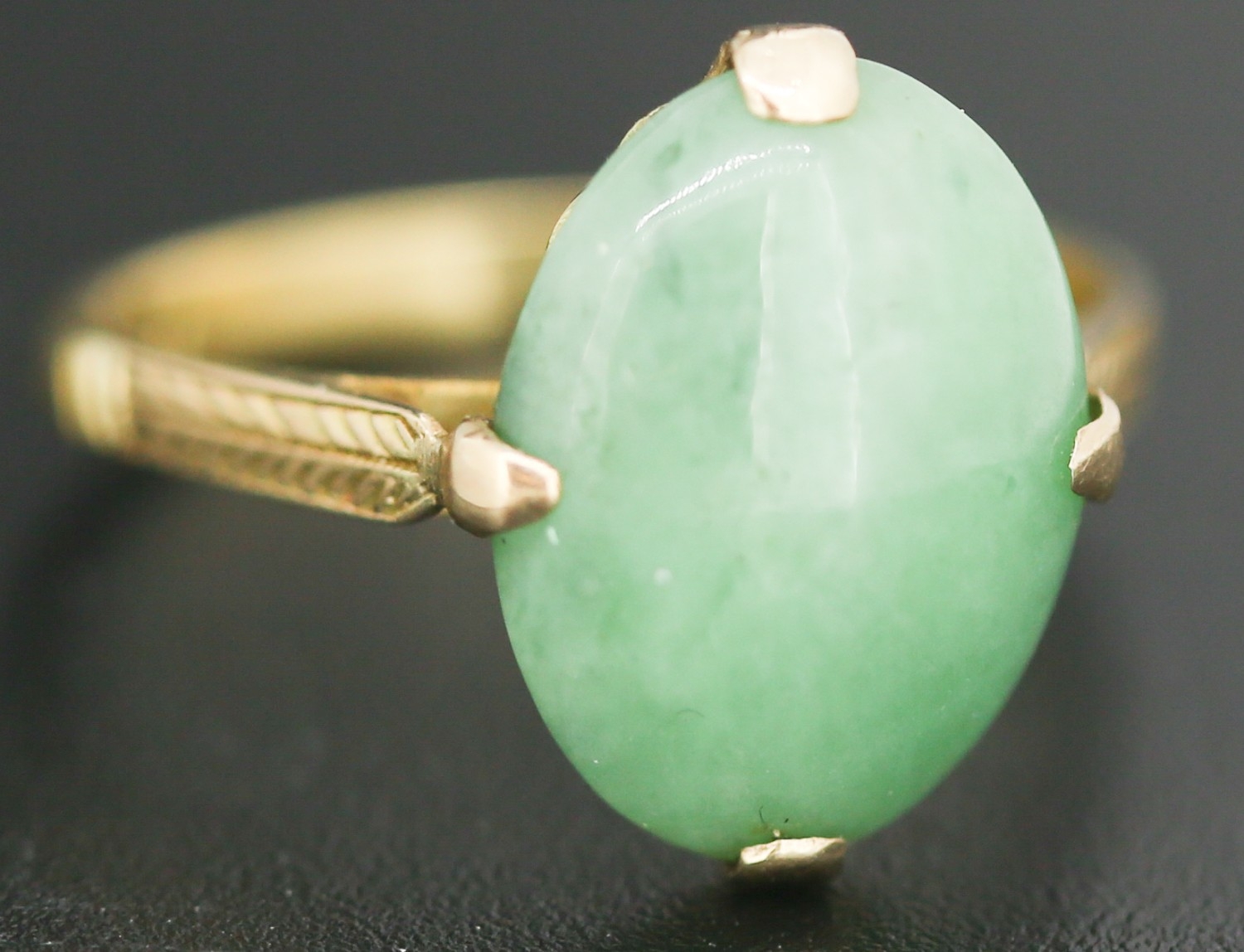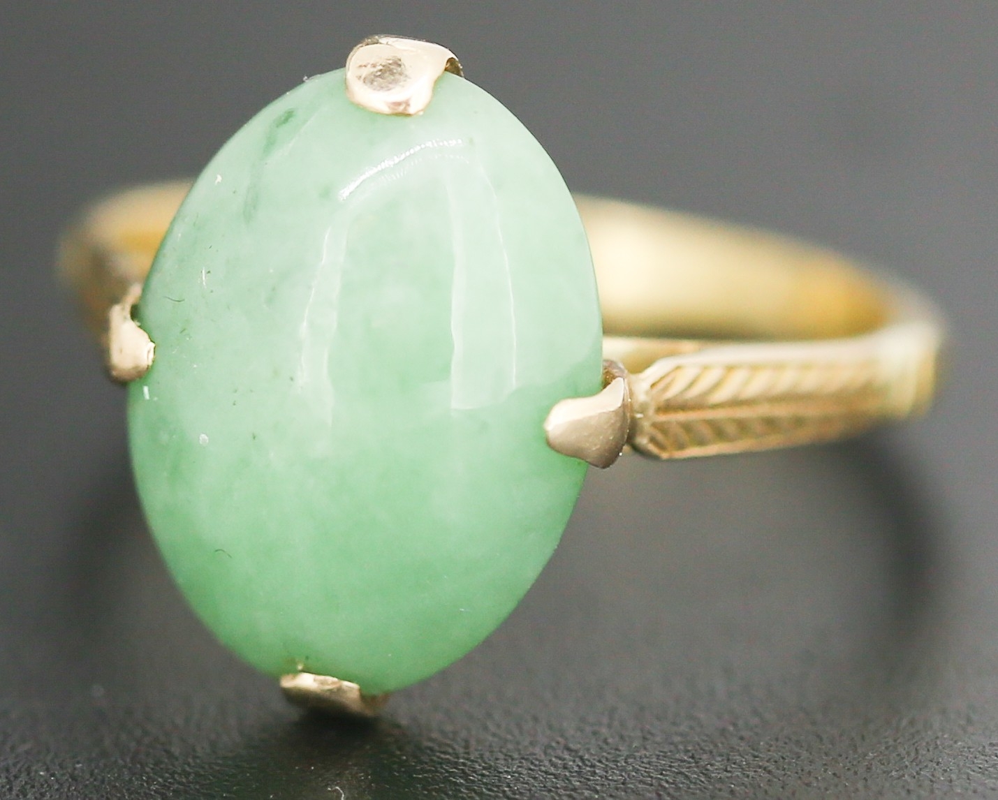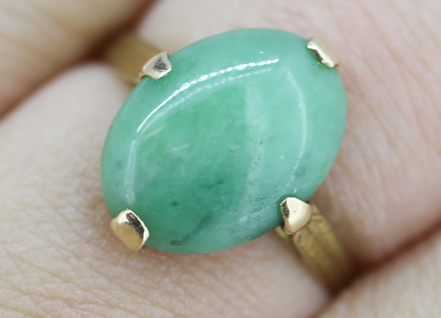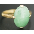 Jade Single Stone Set Ring Mounted in 18 Carat Yellow Gold Ring Size M
