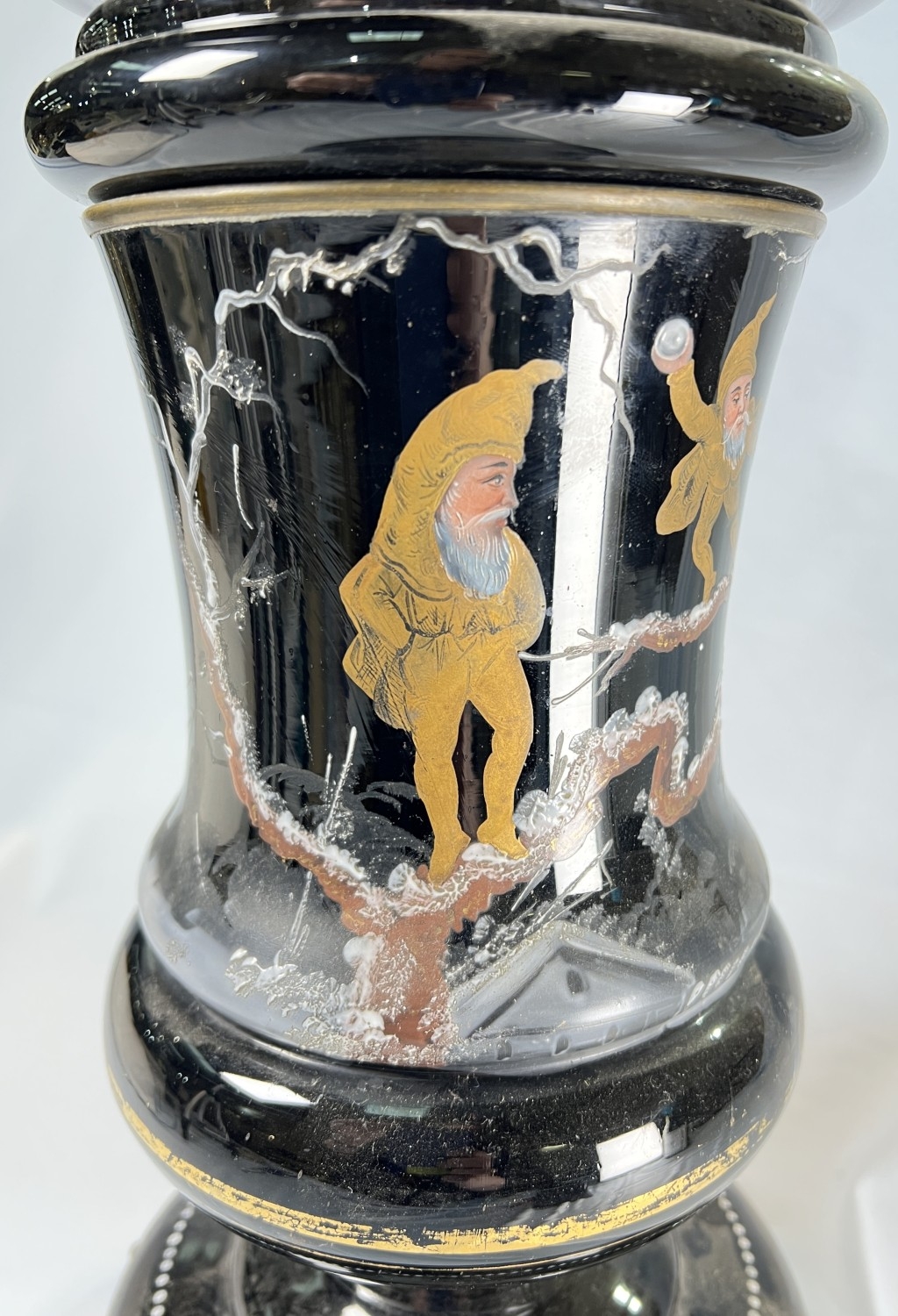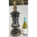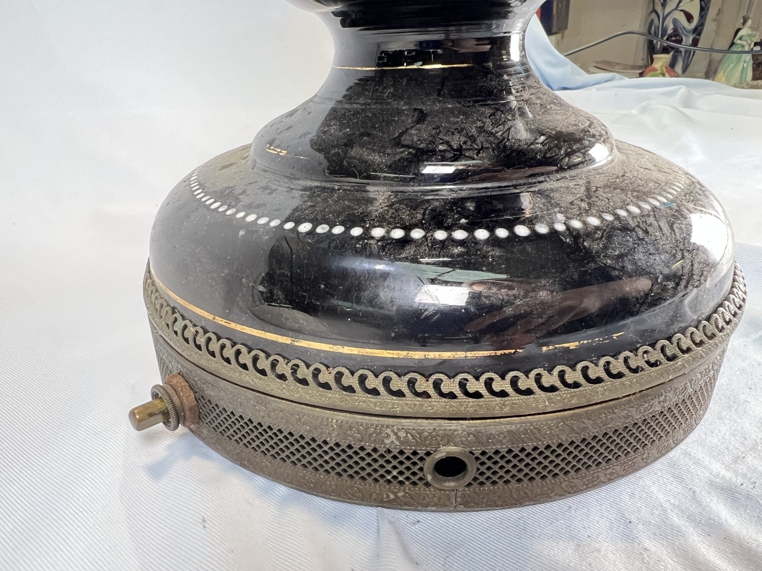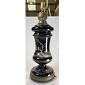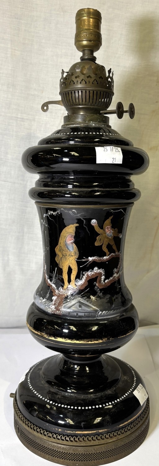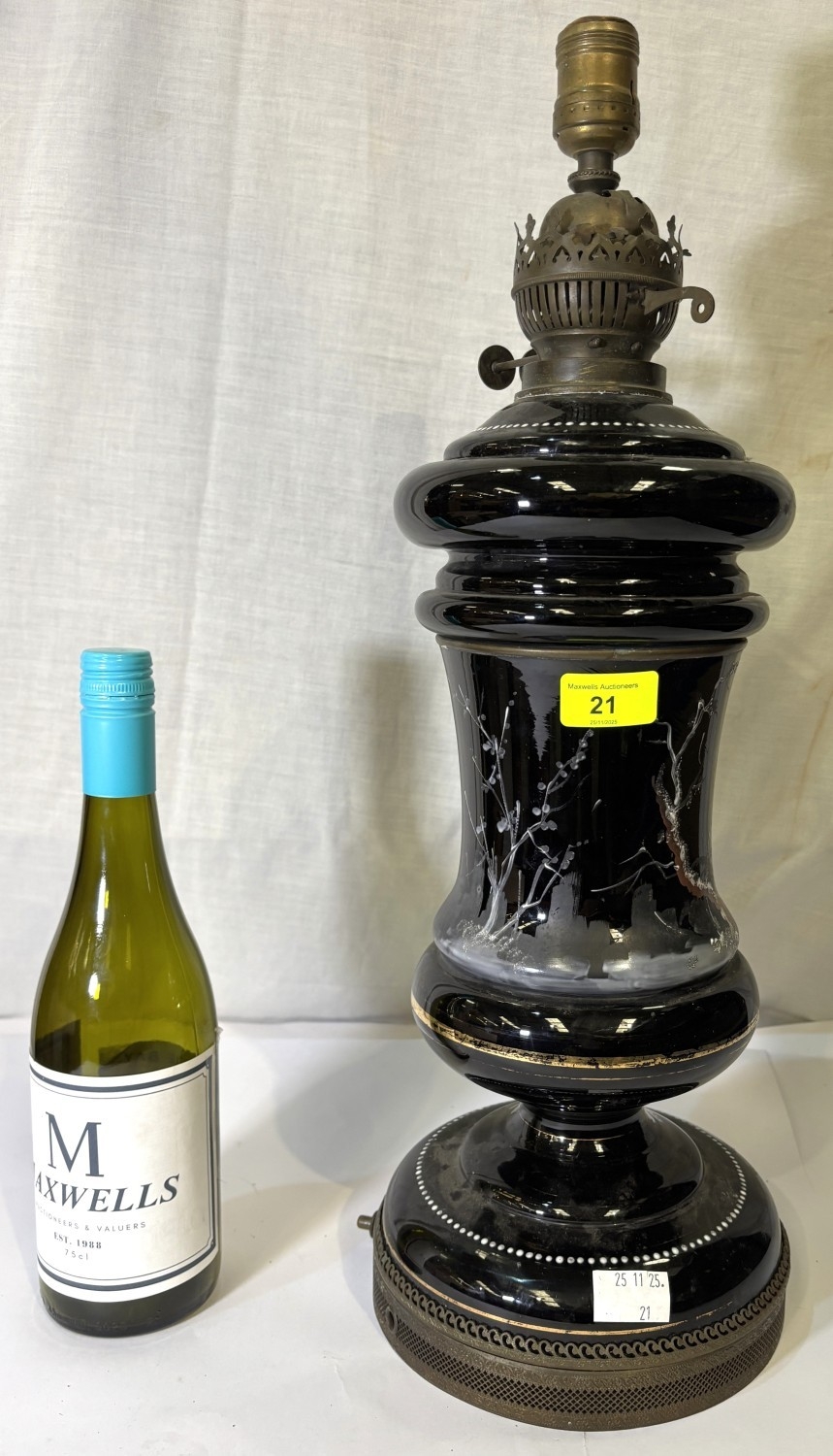 Opaque glass and brass antique table lamp converted from an oil lamp.