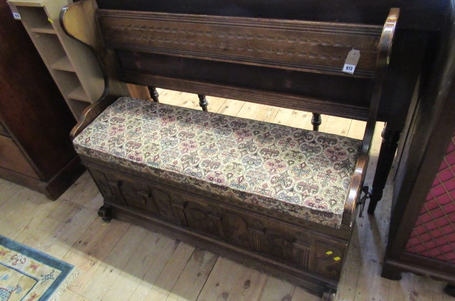 CARVED OAK BOX SEAT SETTLE