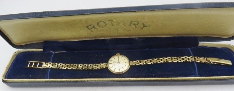 A ladies' Rotary wristwatch with 9ct yellow gold link strap, boxed. Approx weight 17 grams.