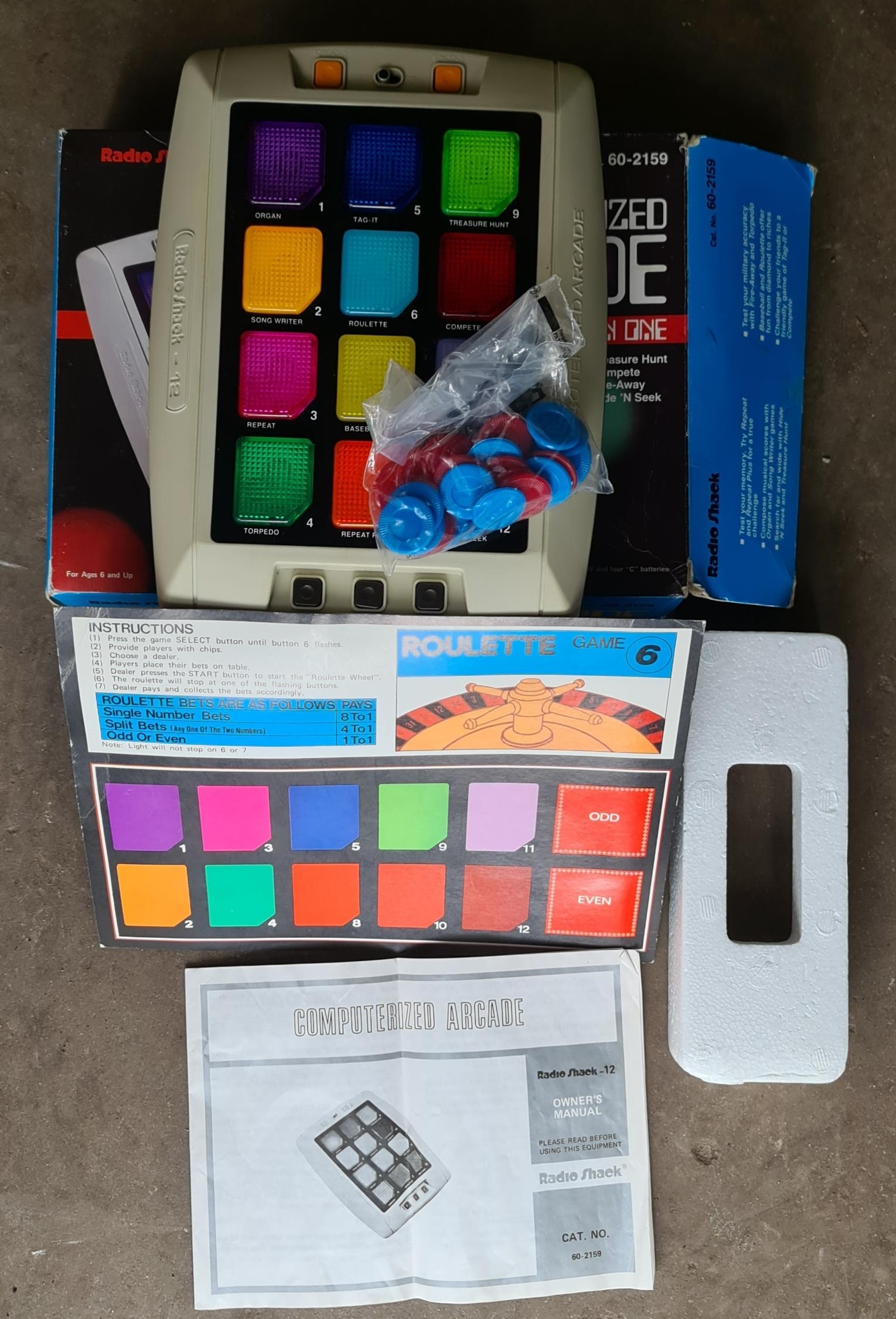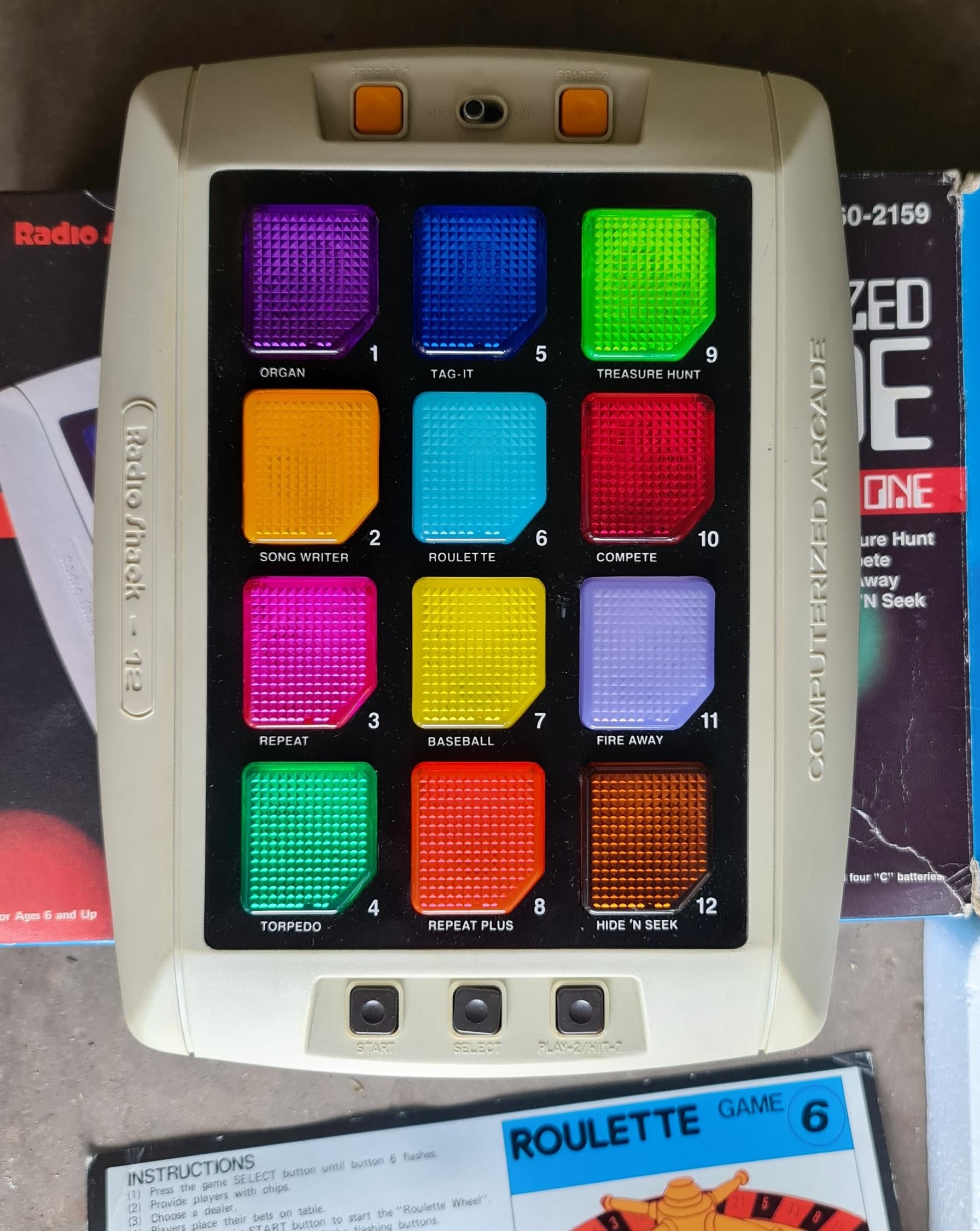 Vintage Retro Electronic Game. Radio Shack 12 in One Games Ct No. 60-2159. Original box and interior.c1982. Shipping is available. Please ask for a quote before bidding. Where possible we combine shipping costs. Remember, if you are the highest bidder above reserve on this Lot you have bought the item and are legally responsible for the item. Viewing is recommended in either person or via video link. Contact us to arrange.