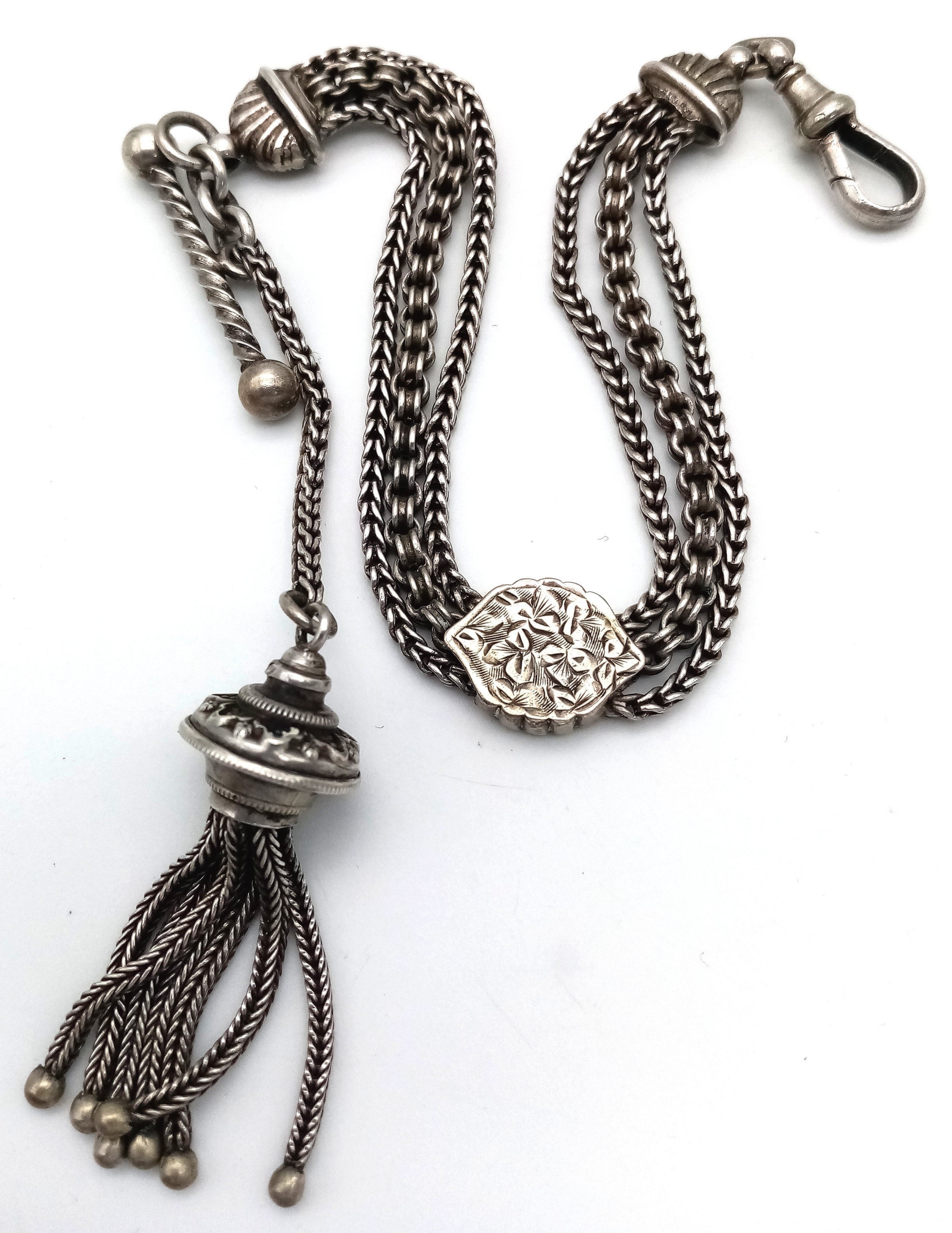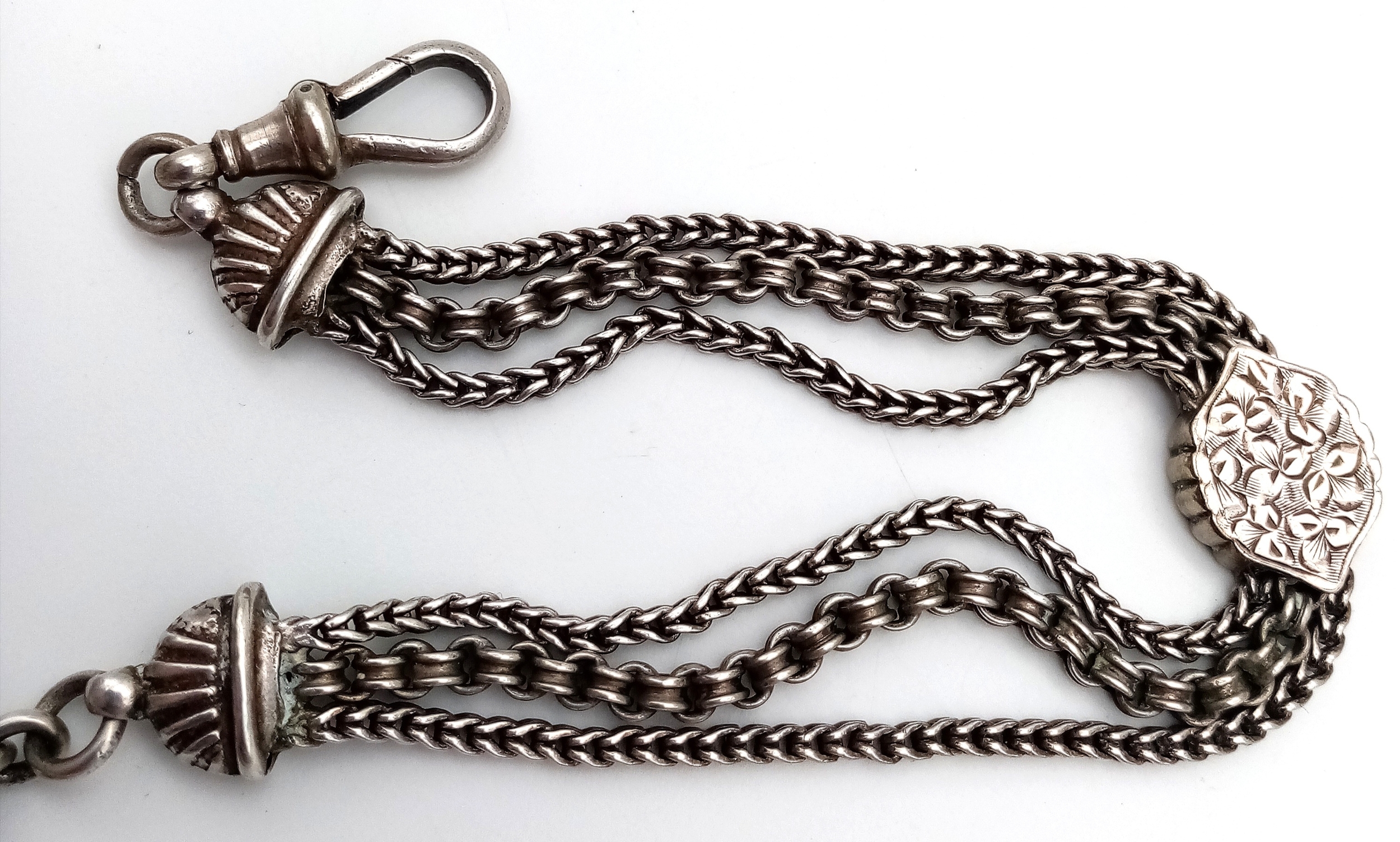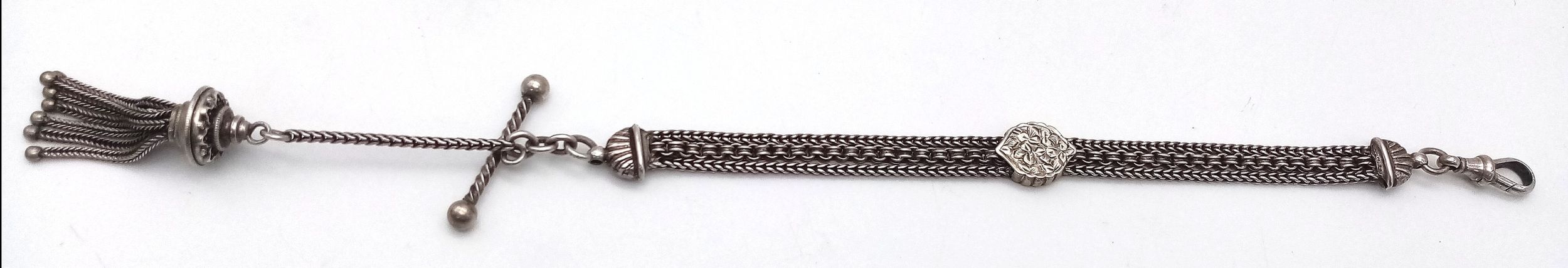 Antique SILVER WATCH CHAIN, most recently used as a BRACELET. Having intricate detail and decoration. Nice lot, please see pictures.