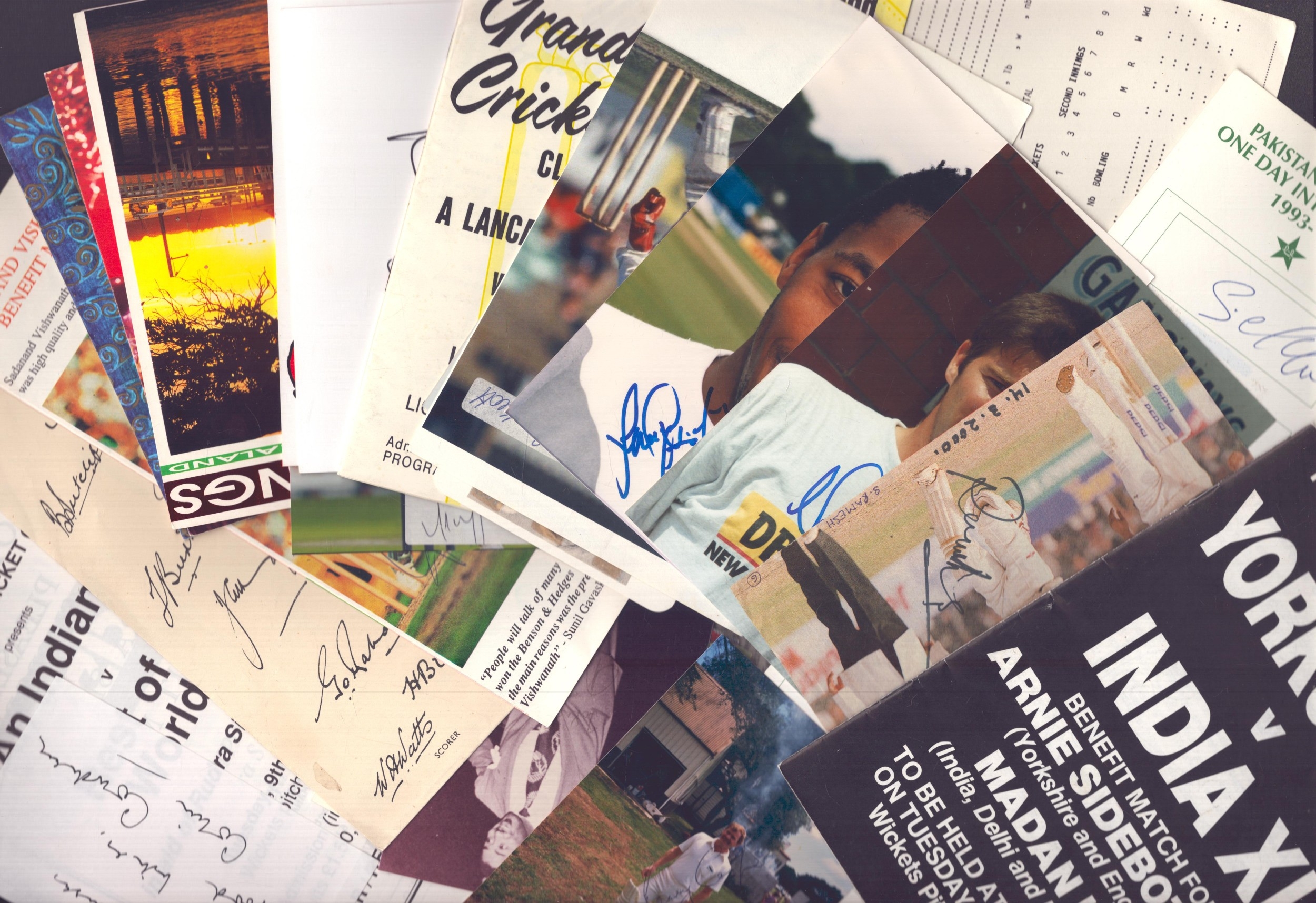 Cricket signature collection. Includes names such as Jonathan Paul Millmow, Philip Andrew Horn and more. Over 30 signatures in programmes, Photos and Score cards.