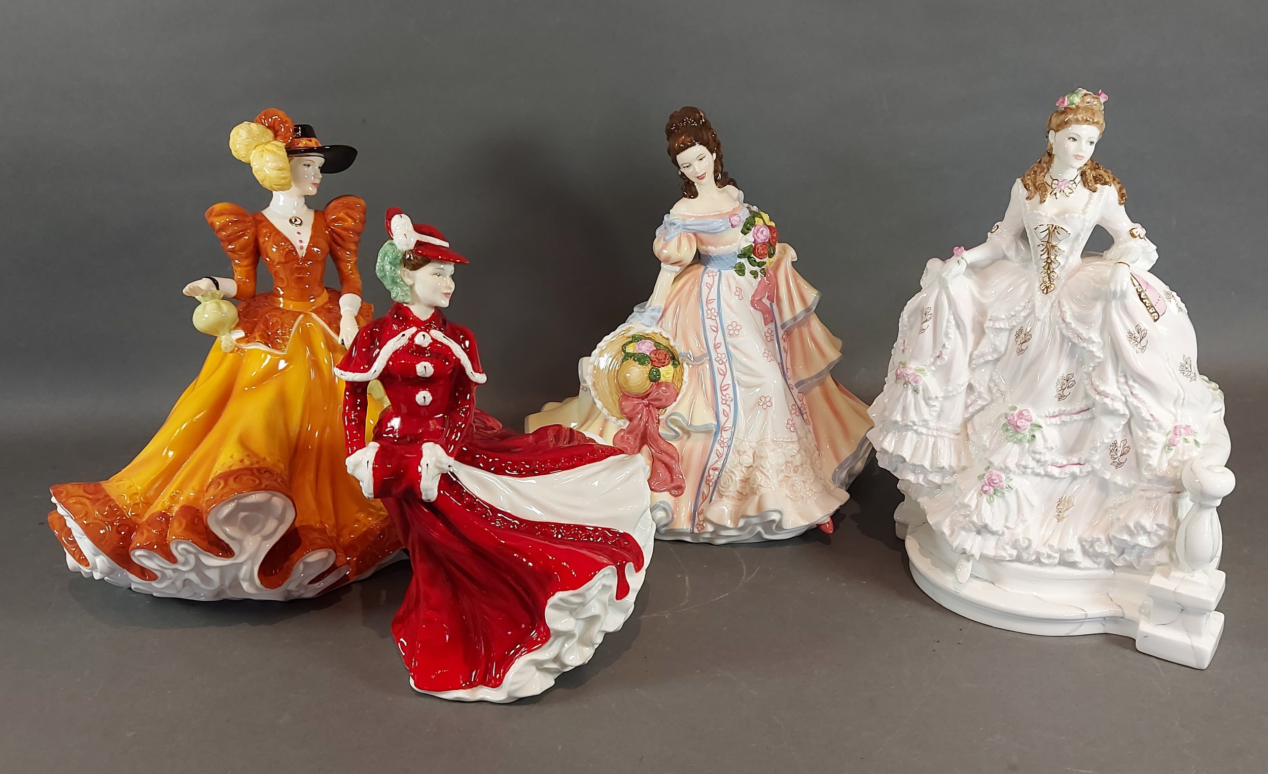 A Royal Doulton figurine Pretty Ladies, Summer's Belle HN 5107 together with three other Royal Doulton figures to include Christmas Day 2003 HN 4552, Cinderella HN3991 and Pretty Ladies Forever Autumn HN 5108