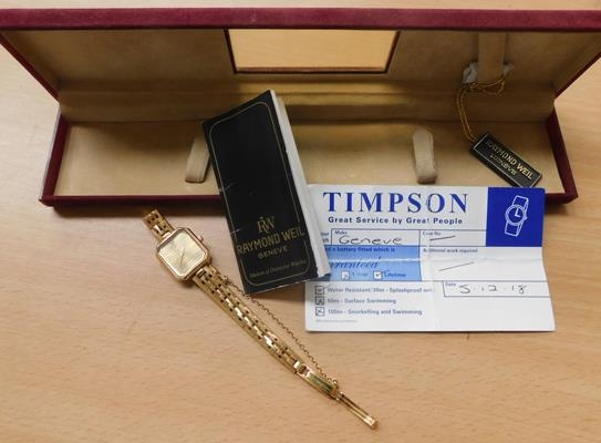 Ladies Raymond Weil genuine gold plated watch with life time battery rec spare links, boxed