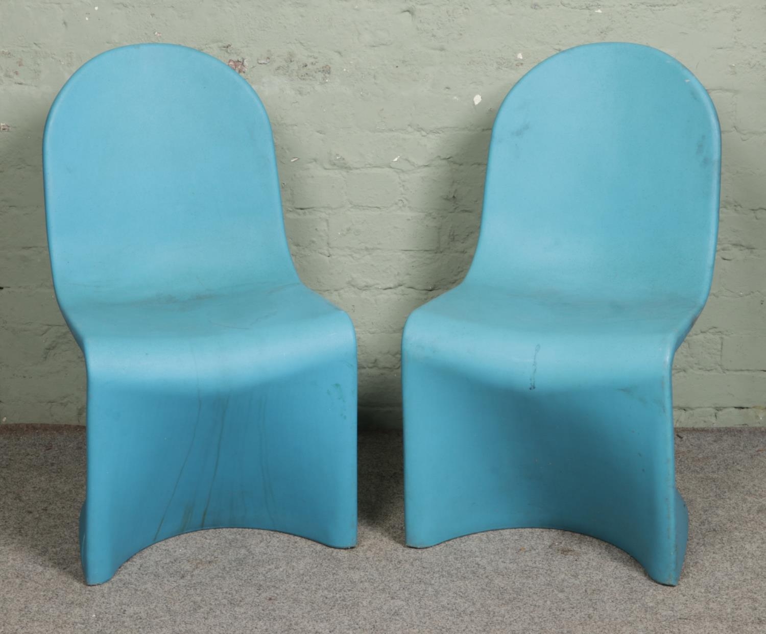 A pair of Ryno weighted dining chairs from Pineapple furniture in the Epic Blue colour.