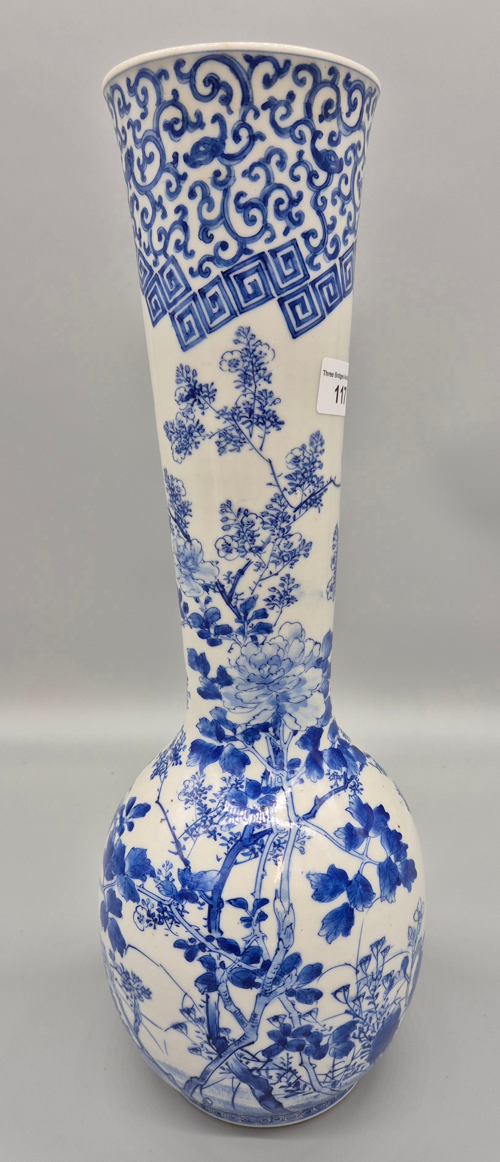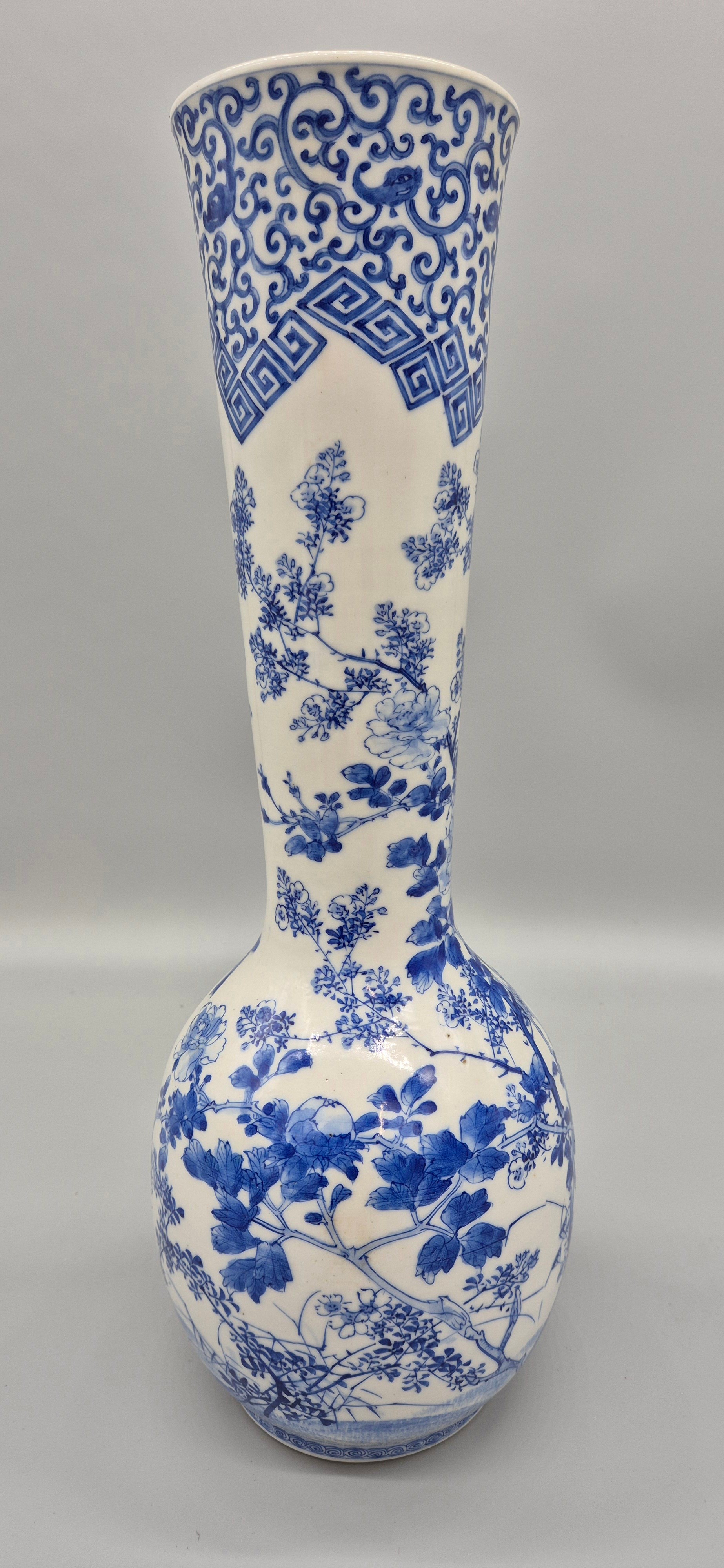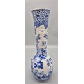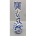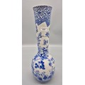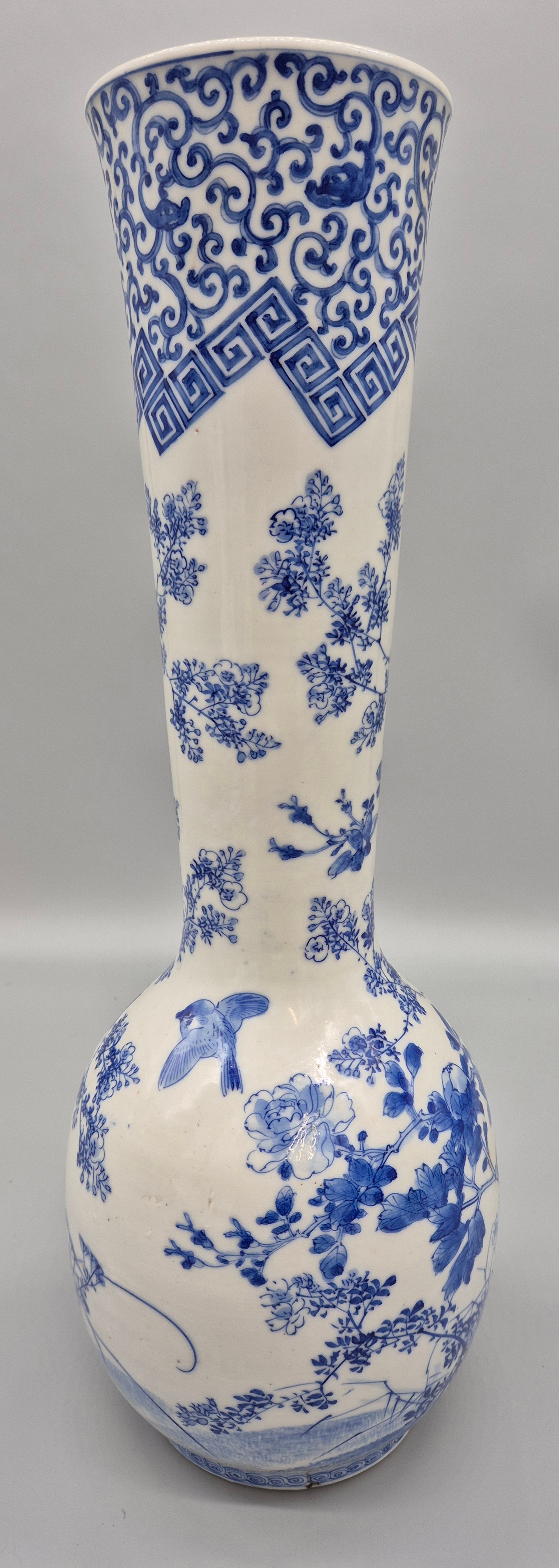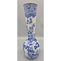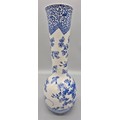 A Large 19th century Chinese Fluted vase; Hand painted blue and white design- Birds, flowers and ornate designs. [45cm high]