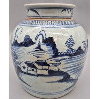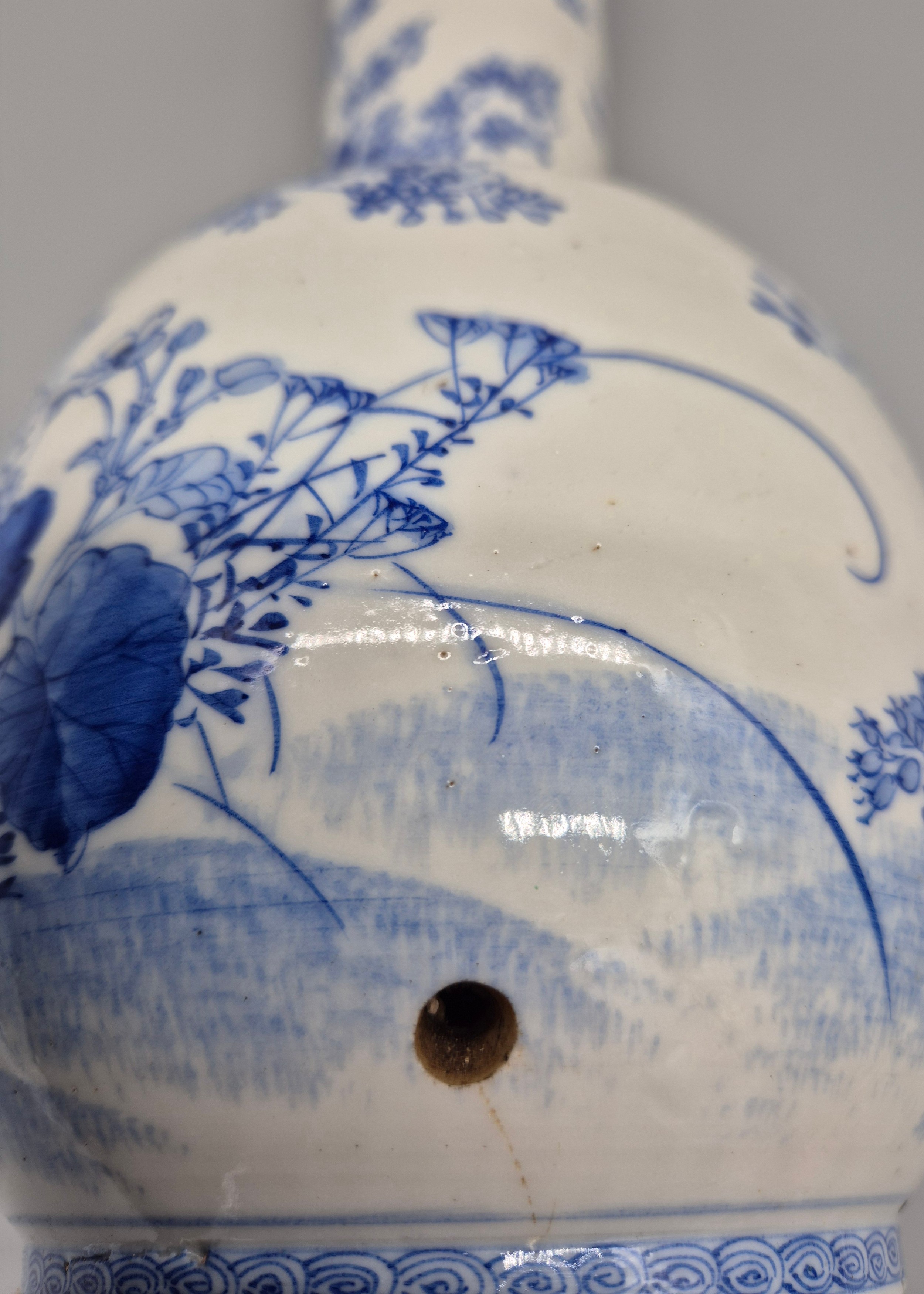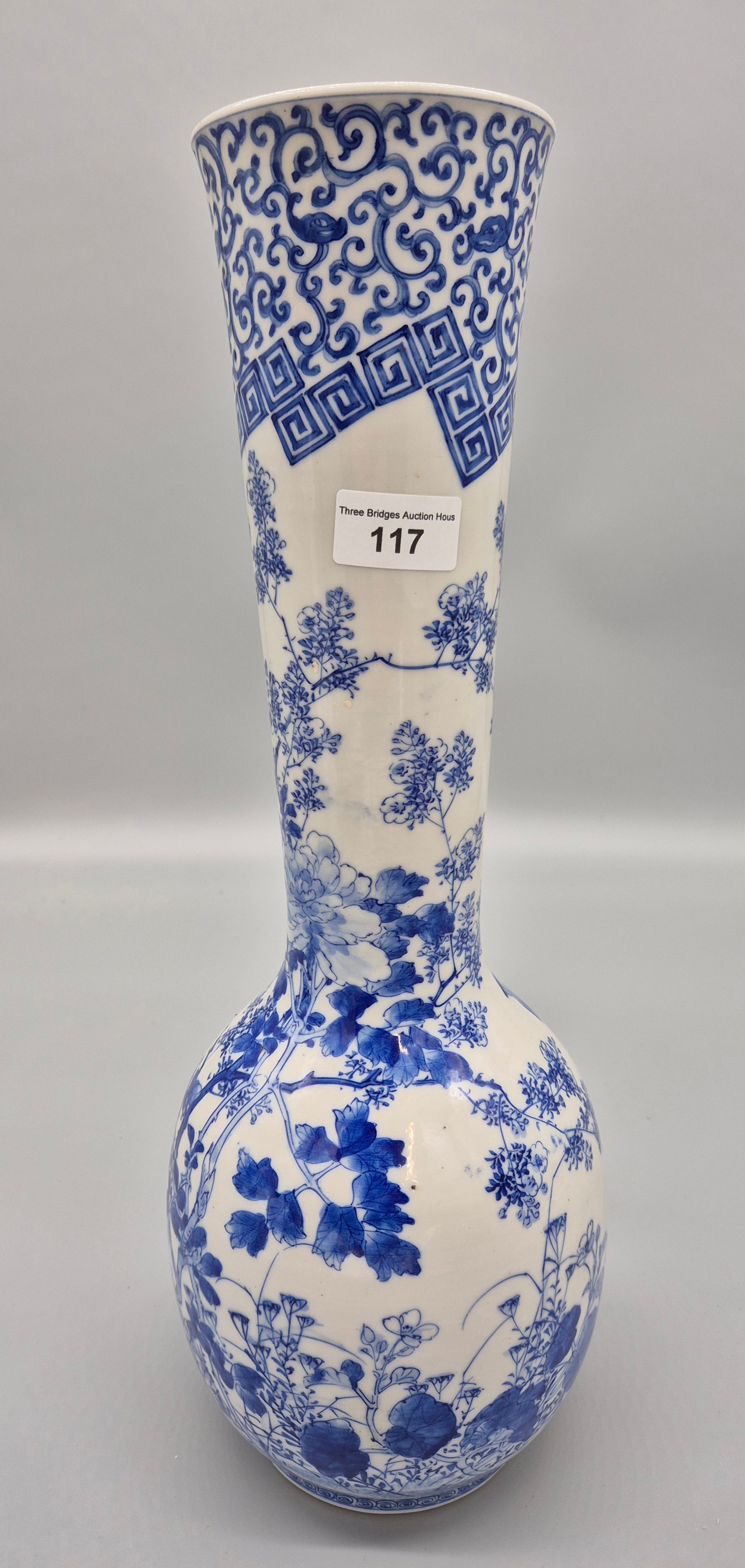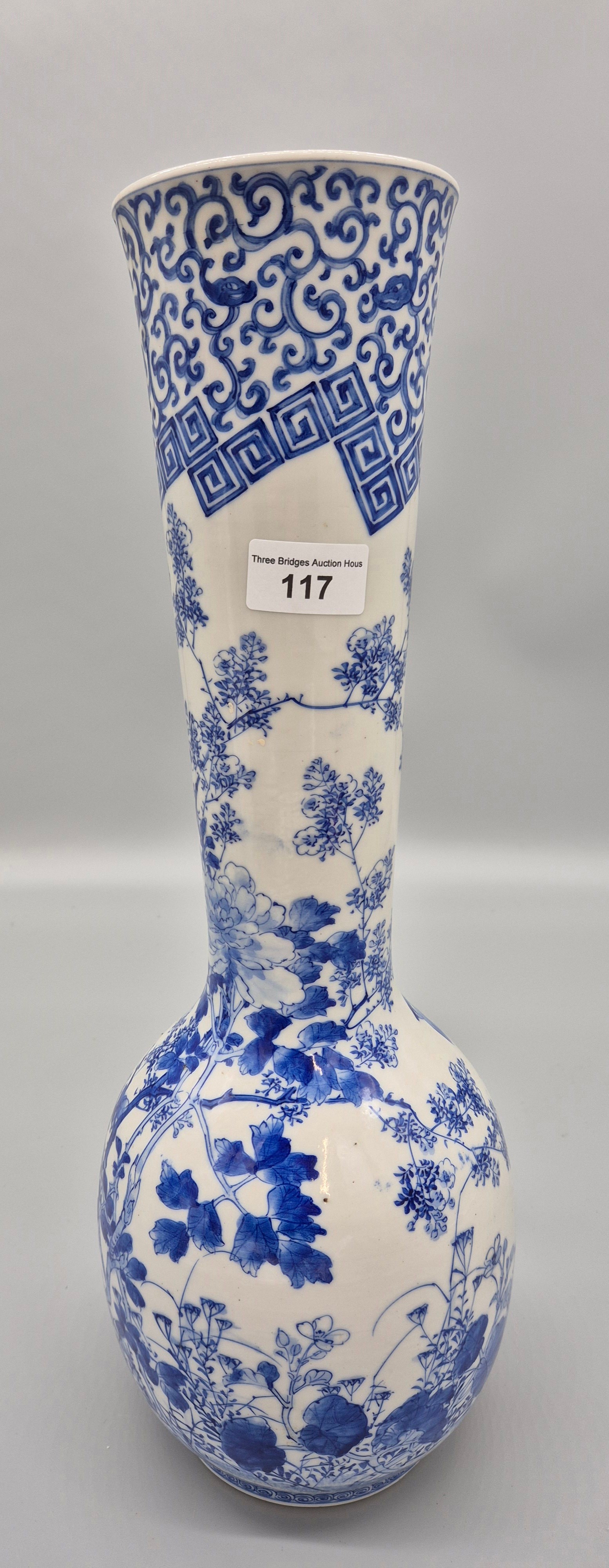 A Large 19th century Chinese Fluted vase; Hand painted blue and white design- Birds, flowers and ornate designs. [45cm high]