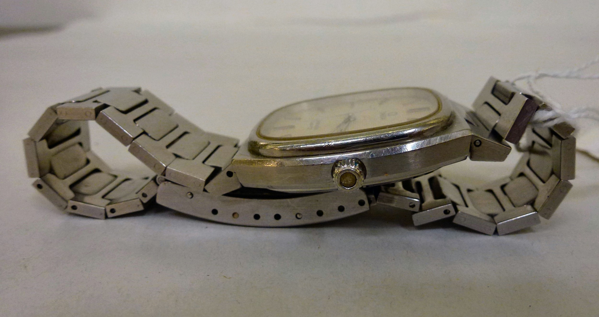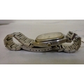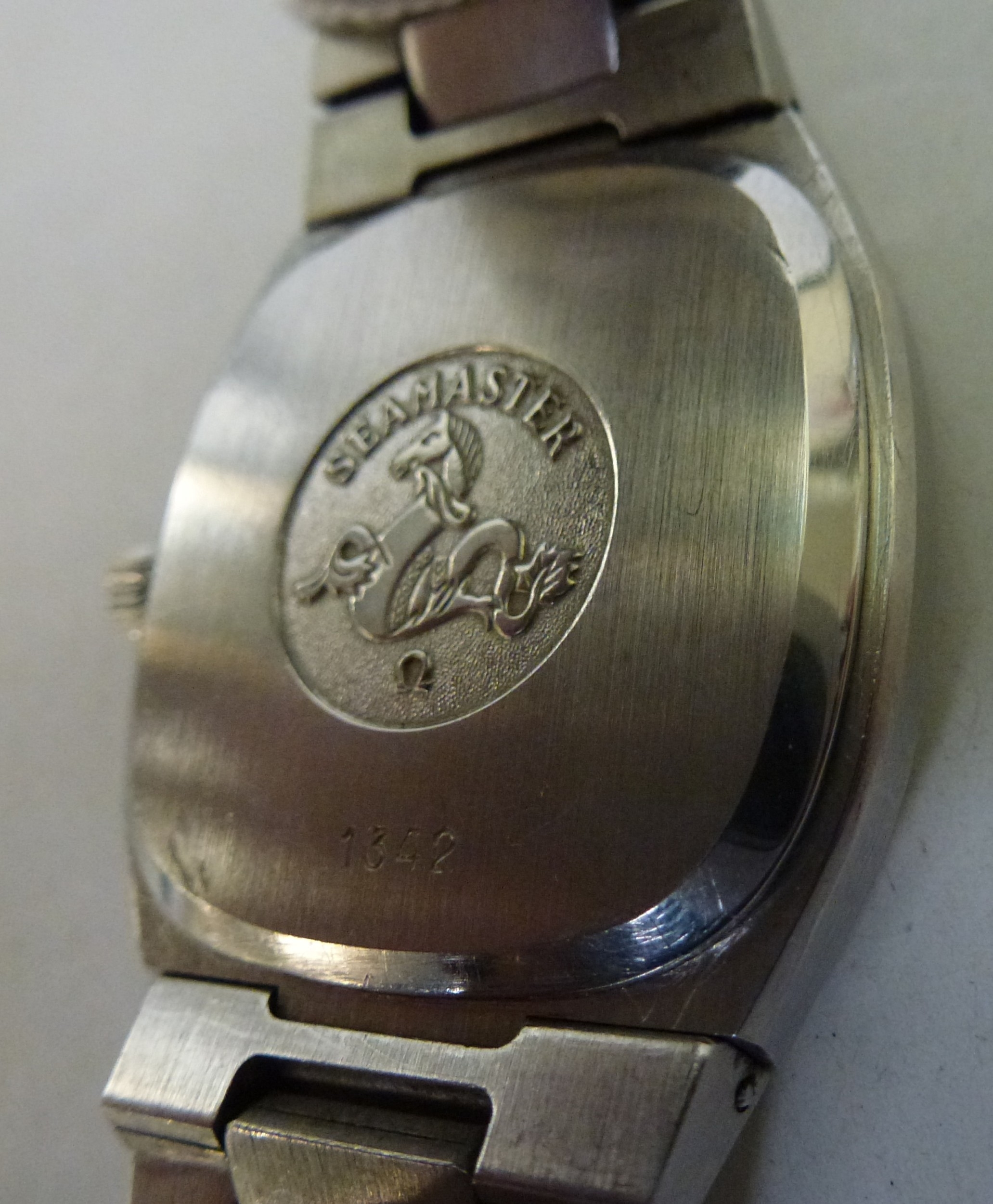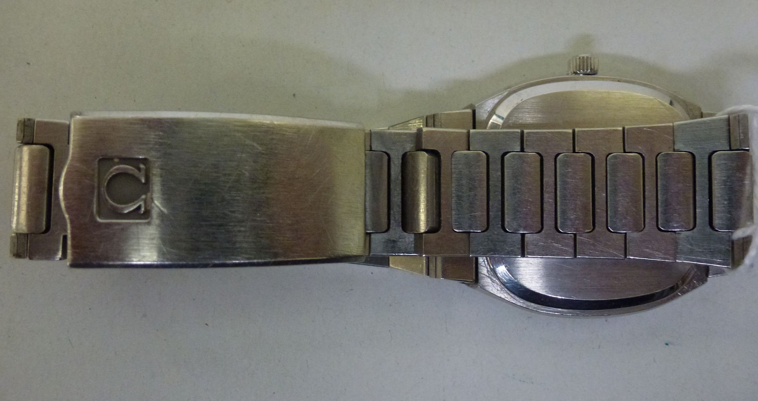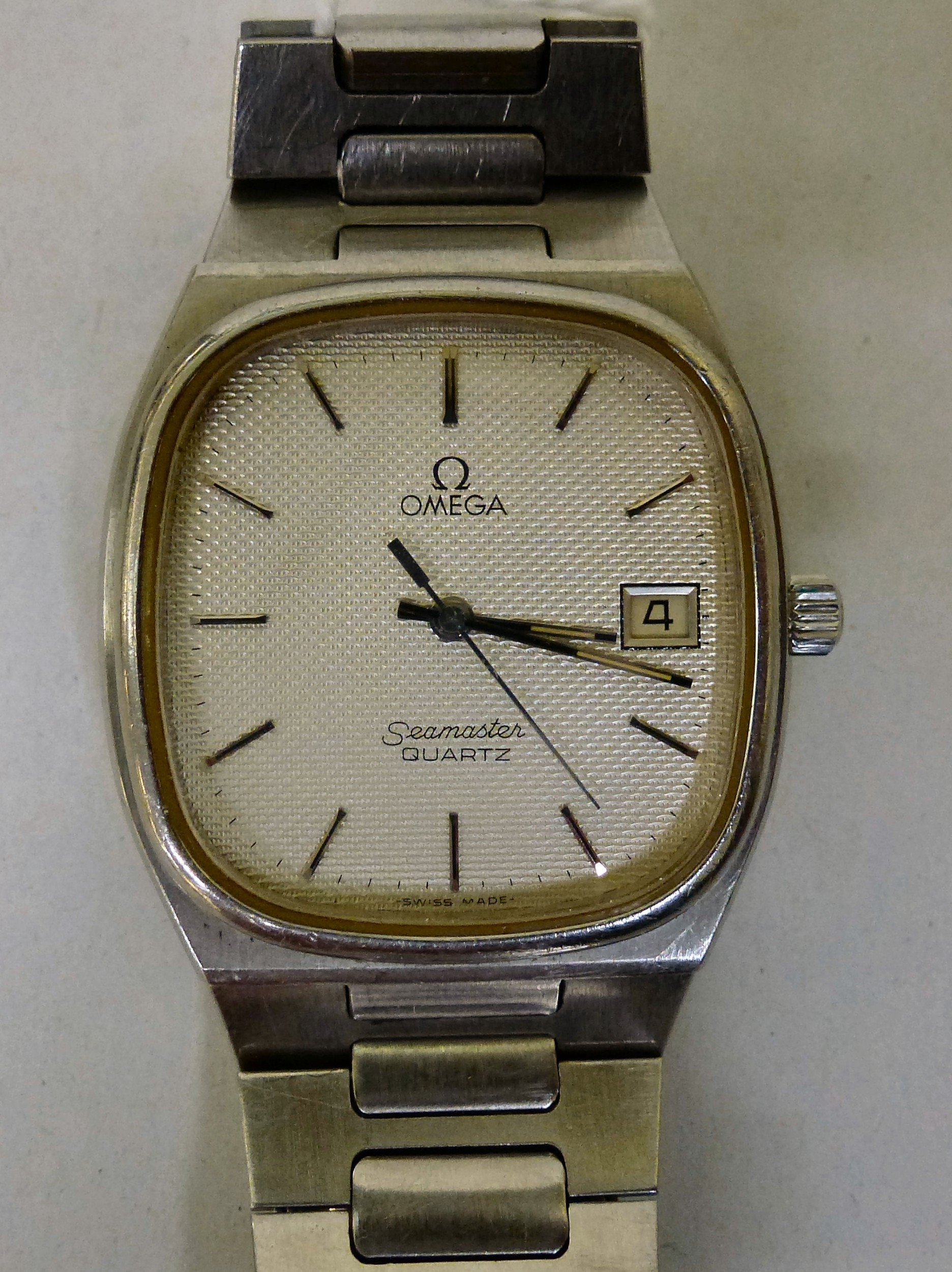 An Omega Seamaster stainless steel cased and strapped wristwatch with a quartz movement, faced by a baton dial with a date aperture