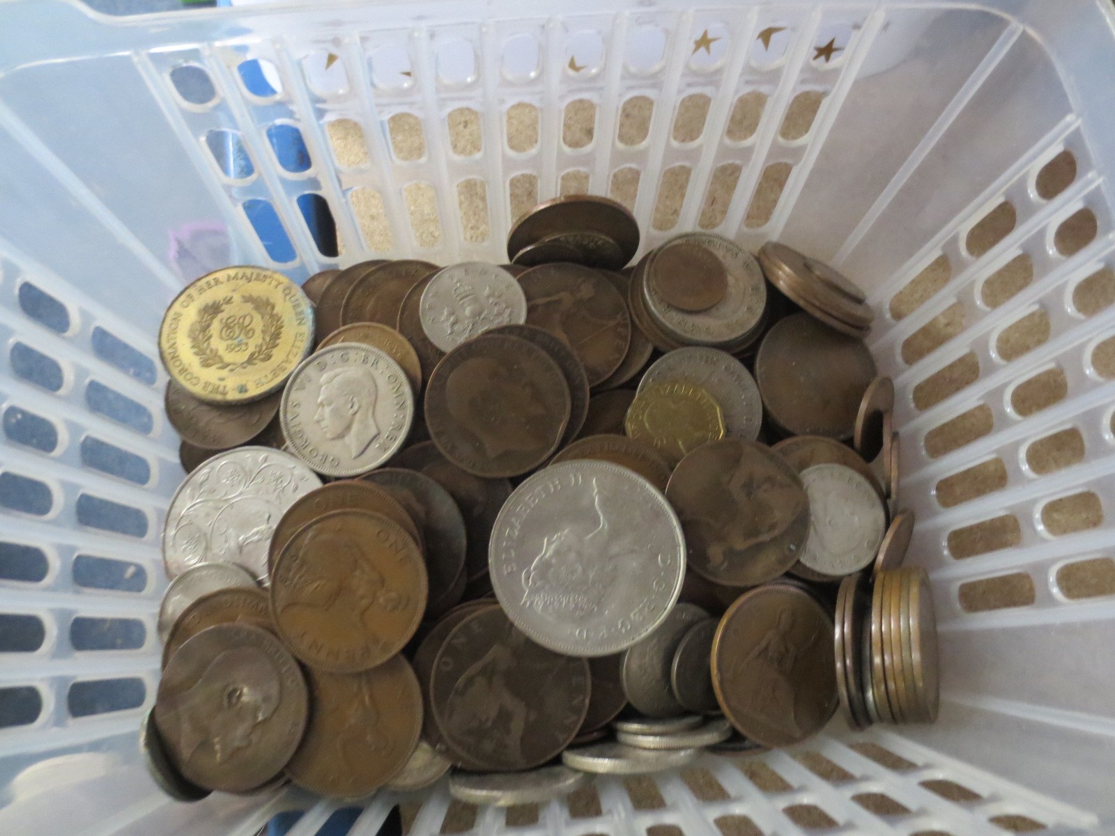 A tub of mixed coinage