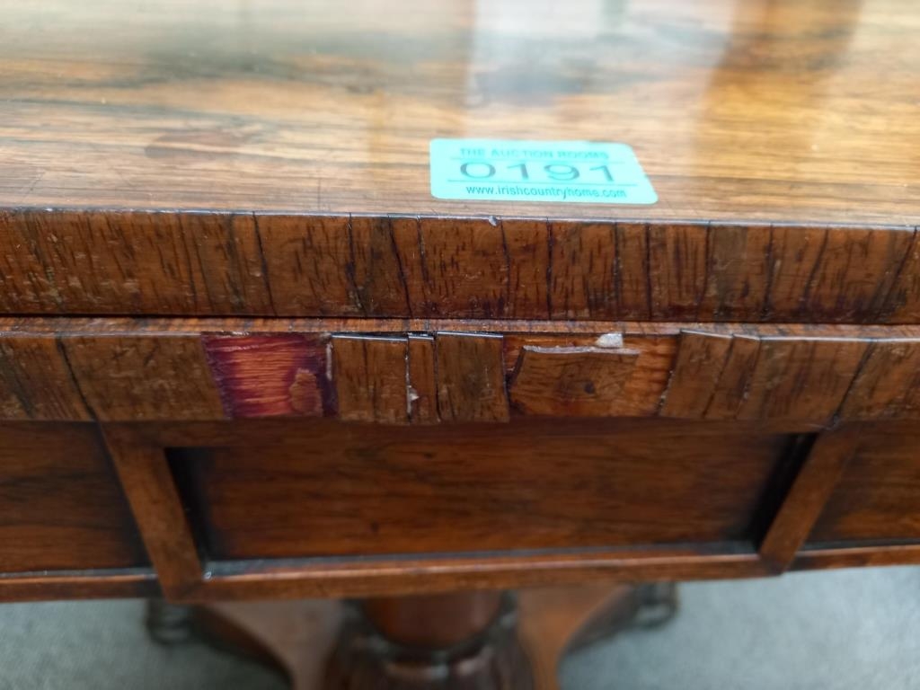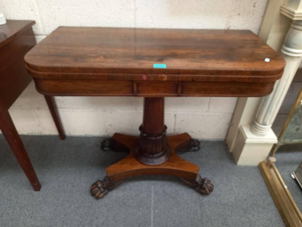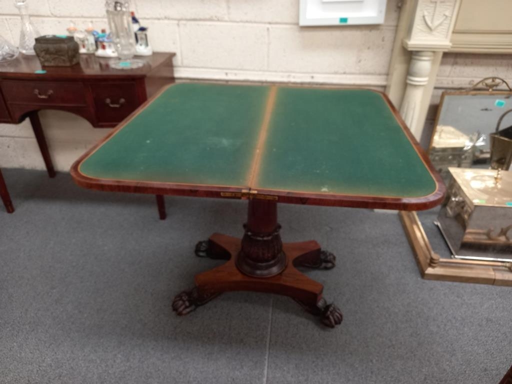 Victorian Rosewood Games Table on carved column with 4 paw feet