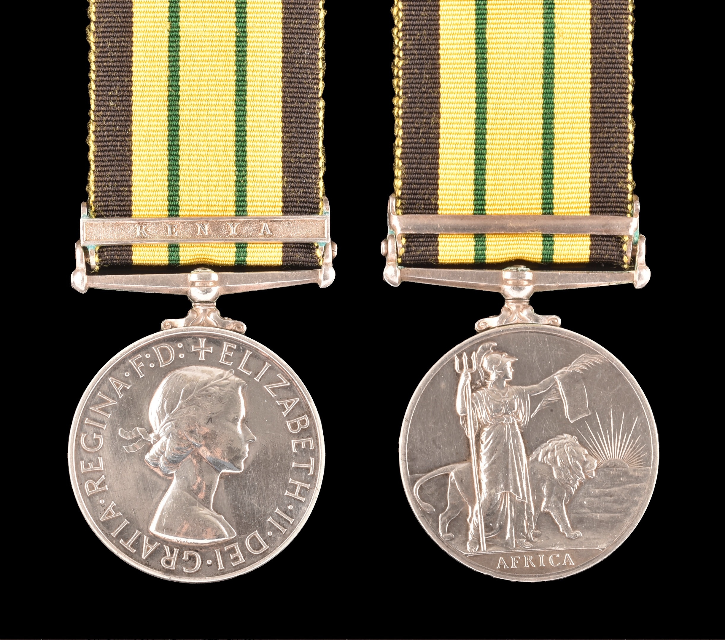 An Africa General Service Medal 1902-1956, with Kenya clasp awarded to: T/22083903 Corporal. A. R. Fath Royal Army Service Corps (T/22083903 Cpl. A. R. Fath R.A.S.C.).