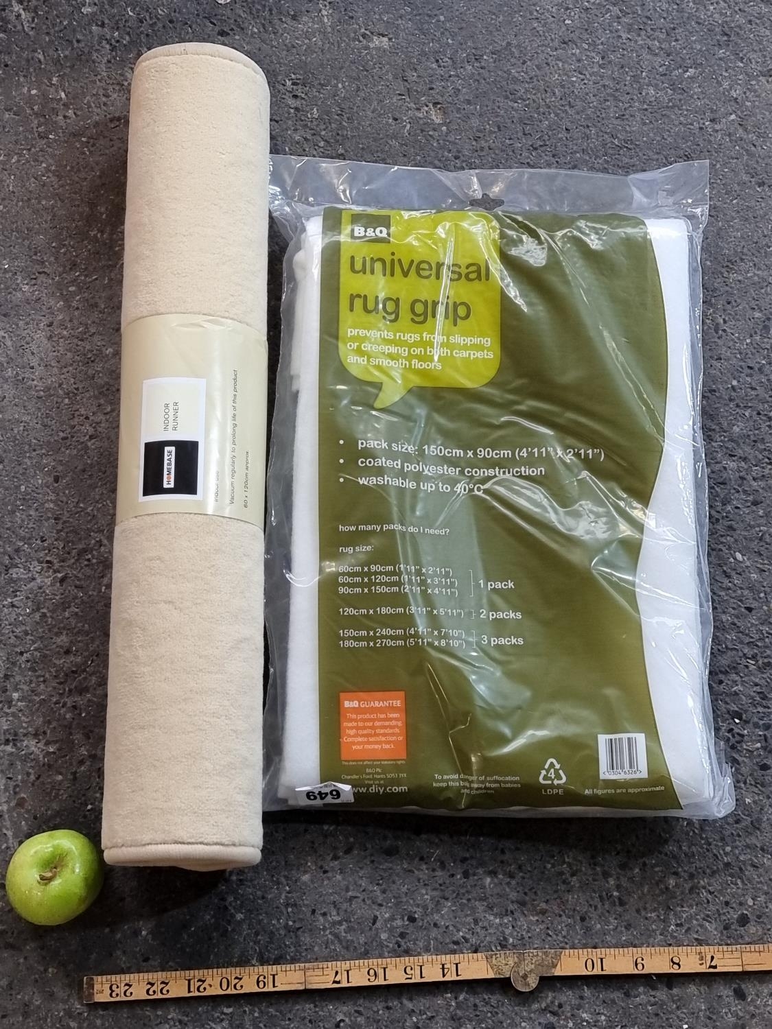 4 Cream/Sand Runners The Largest Rug Is 139cm x 77cm with a Universal Rug Grip, 150cm x 90cm. One rug is brand new in wrapping one pack of rug grips are brand new in packing and the other rugs are rolled.
